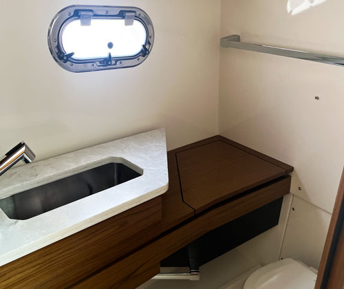 The Tiara Yachts 34 LS is designed with practicality in mind, making ownership as enjoyable as it is effortless. The Quick Release Fender Hanger streamlines the docking process, saving you time and hassle at the marina. The synthetic teak decking is not only beautiful but also easy to clean and maintain, ensuring your yacht always looks its best. The integrated generator and water heater provide the comforts of home, allowing you to extend your adventures without sacrificing convenience. The head macerator system offers efficient waste management, making longer trips more comfortable and worry-free. With ample storage throughout the yacht, you can bring along all your essentials for a day of fun or a weekend getaway.
