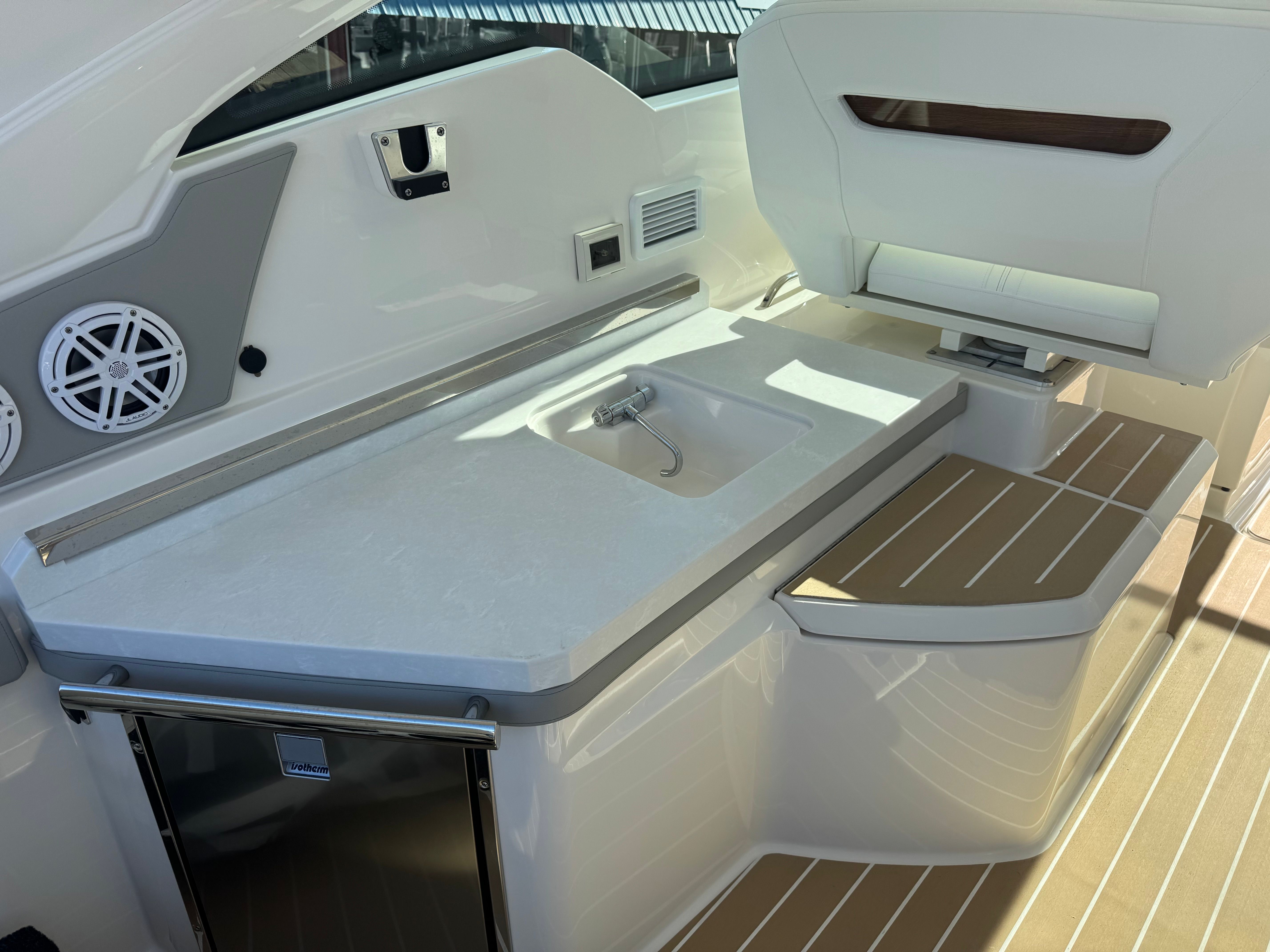 Owning the Tiara Yachts 34 LX means embracing a lifestyle of luxury, relaxation, and adventure. The spacious layout is designed for socializing, whether you are hosting a sunset cocktail party or enjoying a quiet morning on the water. The yacht’s advanced stabilization and climate control systems ensure that every outing is comfortable, no matter the conditions. The entertainment options, including the cockpit TV and ample lounging areas, make this yacht ideal for both lively gatherings and peaceful escapes.The synthetic teak decking not only adds a touch of elegance but also offers durability and easy maintenance, so you can spend more time enjoying your yacht and less time on upkeep. The thoughtful design of the cockpit and swim platform creates seamless transitions between spaces, enhancing the overall flow and usability of the yacht.