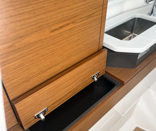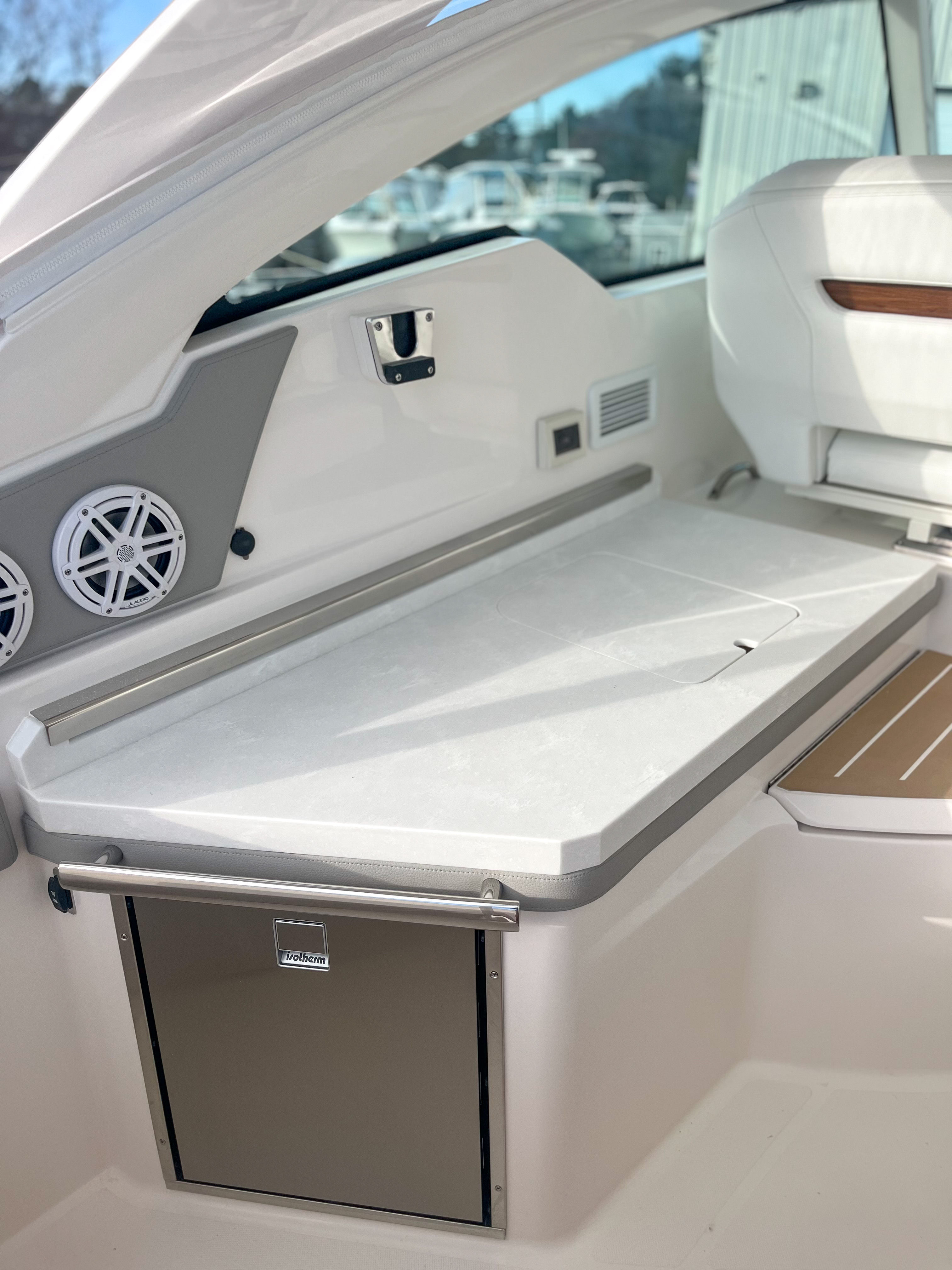 Practicality meets luxury in the Tiara Yachts 34 LX. The thoughtful design includes ample storage for gear, supplies, and personal items, making it easy to keep the yacht organized and clutter-free. Docking is simplified by the responsive handling and advanced navigation systems, ensuring smooth arrivals and departures at any marina.Fuel efficiency is a hallmark of the Mercury® Verado® engines, allowing you to enjoy extended trips without frequent refueling stops. The climate-controlled helm and companion areas make long journeys comfortable, while the versatile cockpit enclosure adapts to changing conditions, providing shelter when needed.The head macerator system adds a layer of convenience, streamlining onboard maintenance and enhancing the overall experience. Whether you are planning a weekend getaway or a day trip, the Tiara Yachts 34 LX is designed to make every aspect of ownership enjoyable and hassle-free.