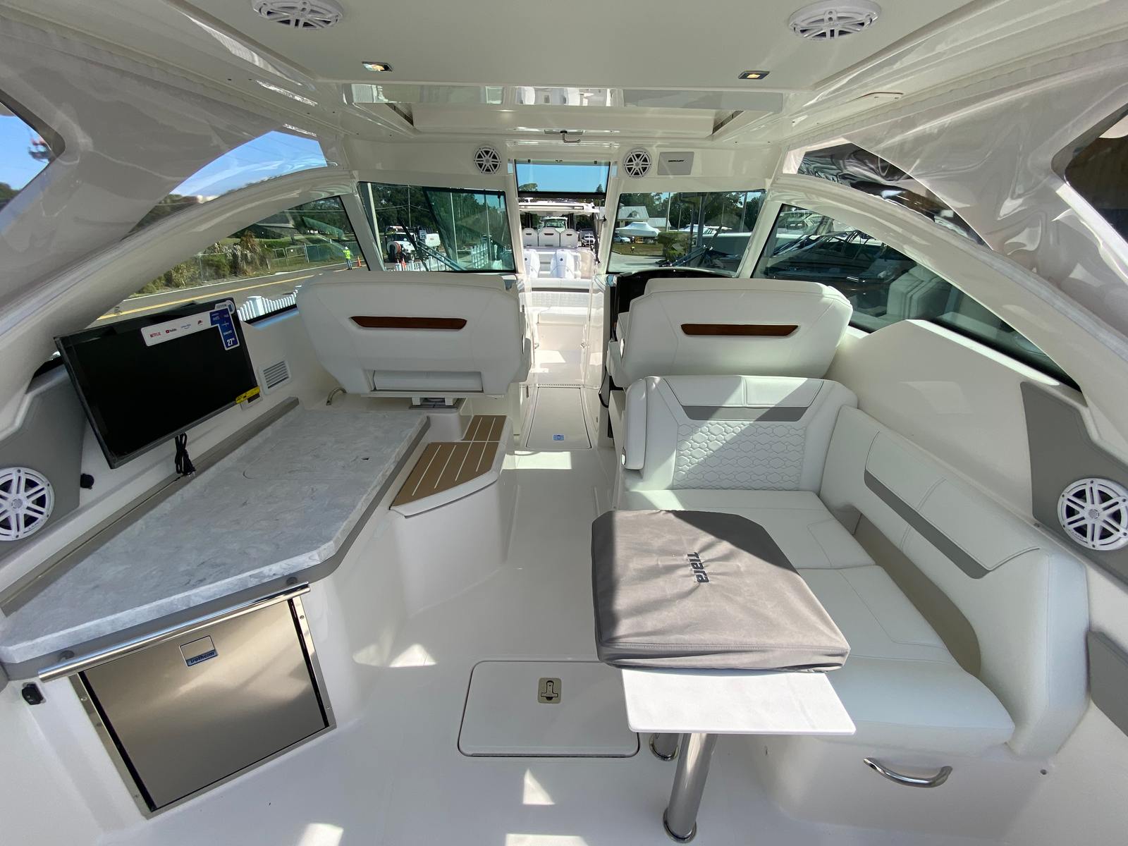 Practicality meets luxury in the Tiara Yachts 34 LX. The thoughtful layout provides ample storage for gear, water toys, and provisions, ensuring you are always prepared for spontaneous adventures. The yacht’s manageable size and advanced docking technology make it easy to handle in marinas and tight spaces, while the efficient engines offer impressive fuel economy for longer journeys.The inclusion of features like the generator and water heater means you can enjoy extended stays on the water without sacrificing comfort. The macerator waste system adds convenience for overnight trips, and the protective curtains allow you to adapt to changing weather conditions with ease. Every aspect of the 34 LX is designed to make ownership enjoyable, hassle-free, and rewarding.