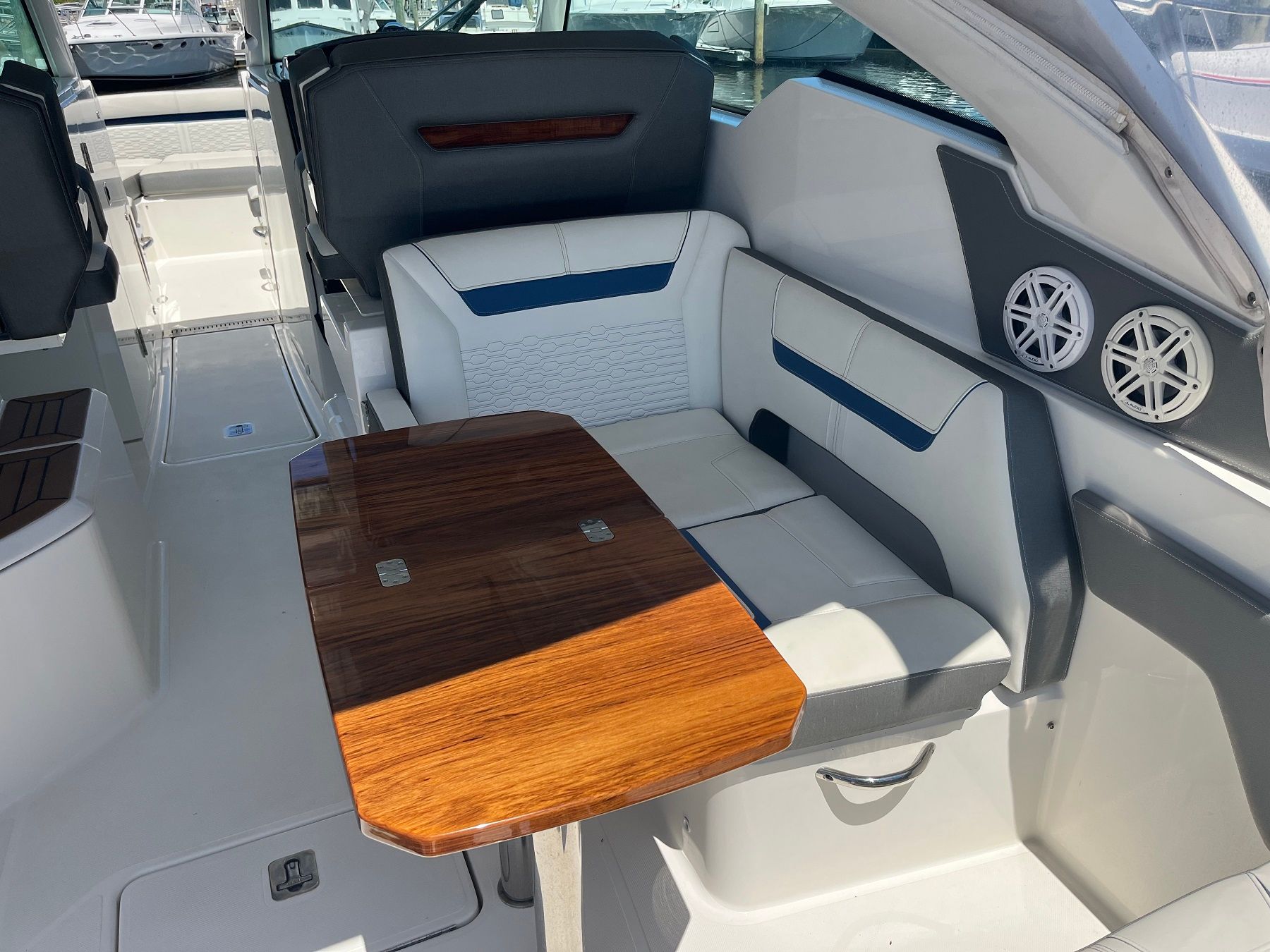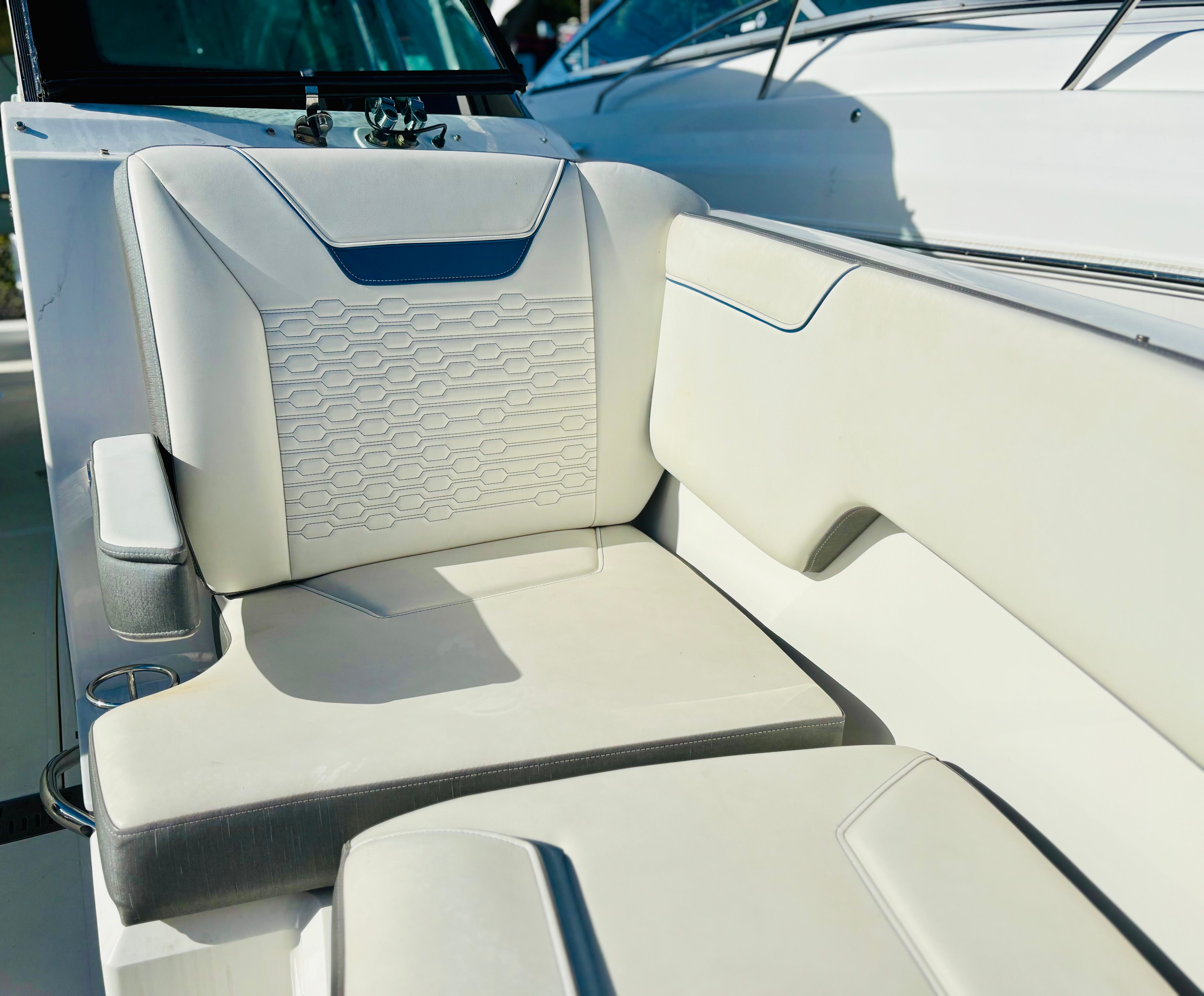 The 2021 Tiara Yachts 34 LX stands out as a premier choice in the world of luxury yacht boats. Measuring 34 feet in length, this used yacht offers ample space for entertaining and relaxing, making it an ideal vessel for both seasoned boaters and newcomers alike. With its sleek lines, modern design, and attention to detail, the 34 LX captures the essence of Tiara Yachts’ commitment to quality and innovation. This yacht is in excellent condition, reflecting its careful maintenance and limited use, with only 192 engine hours logged.