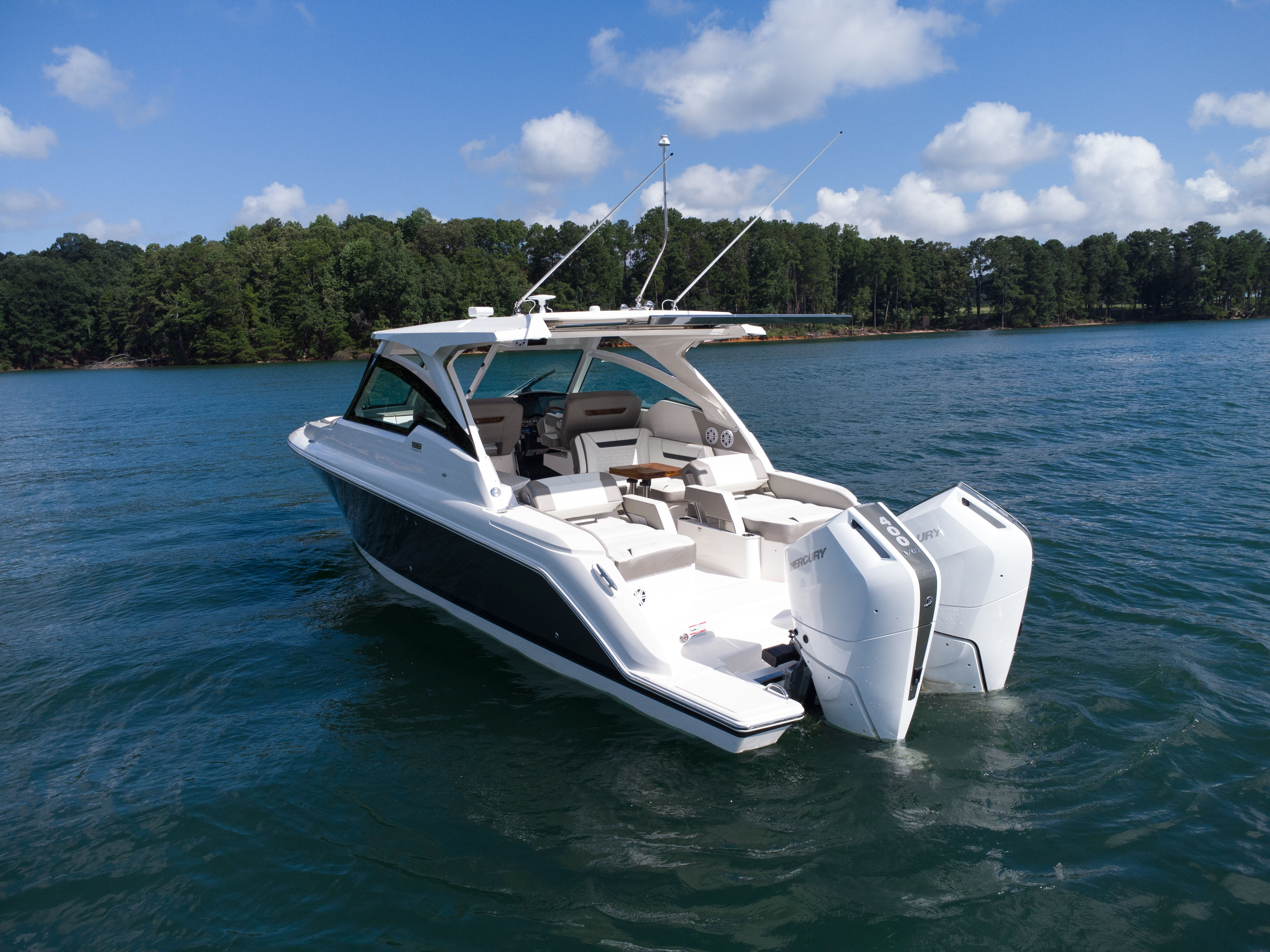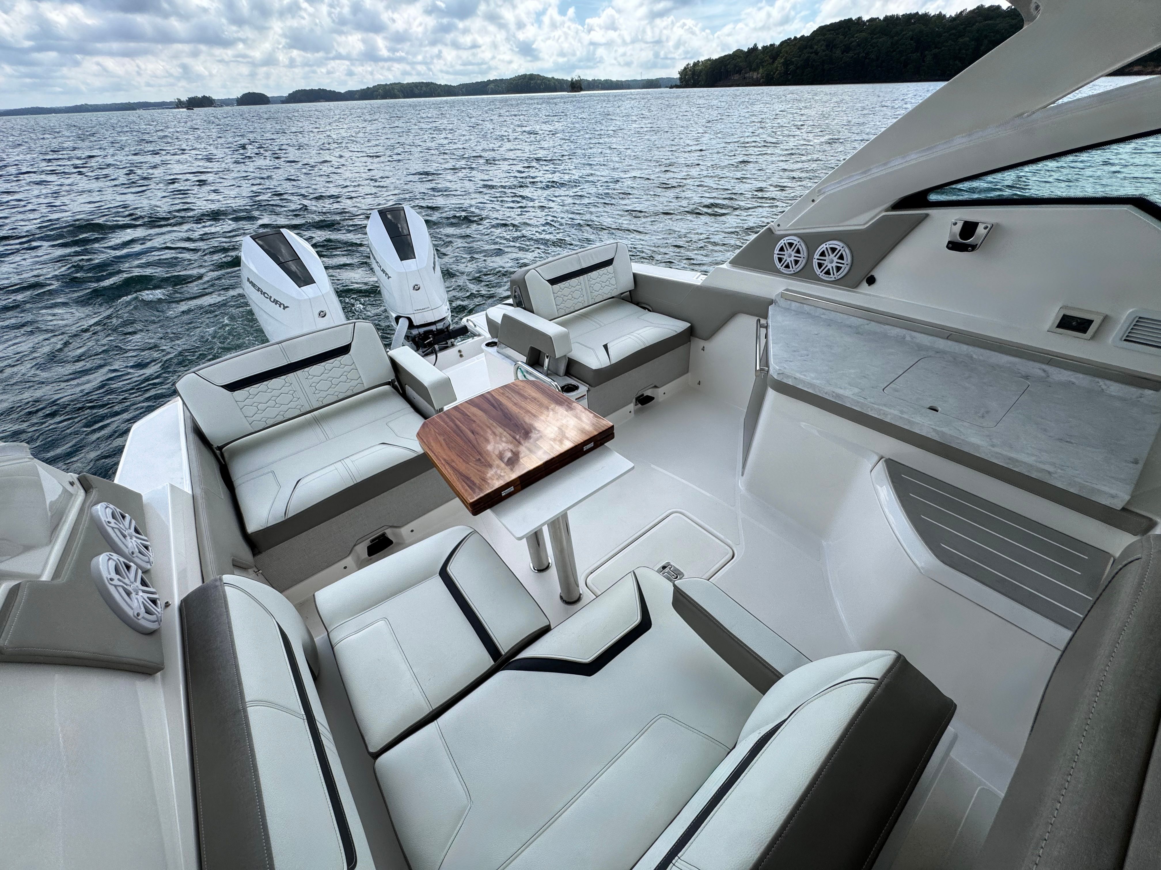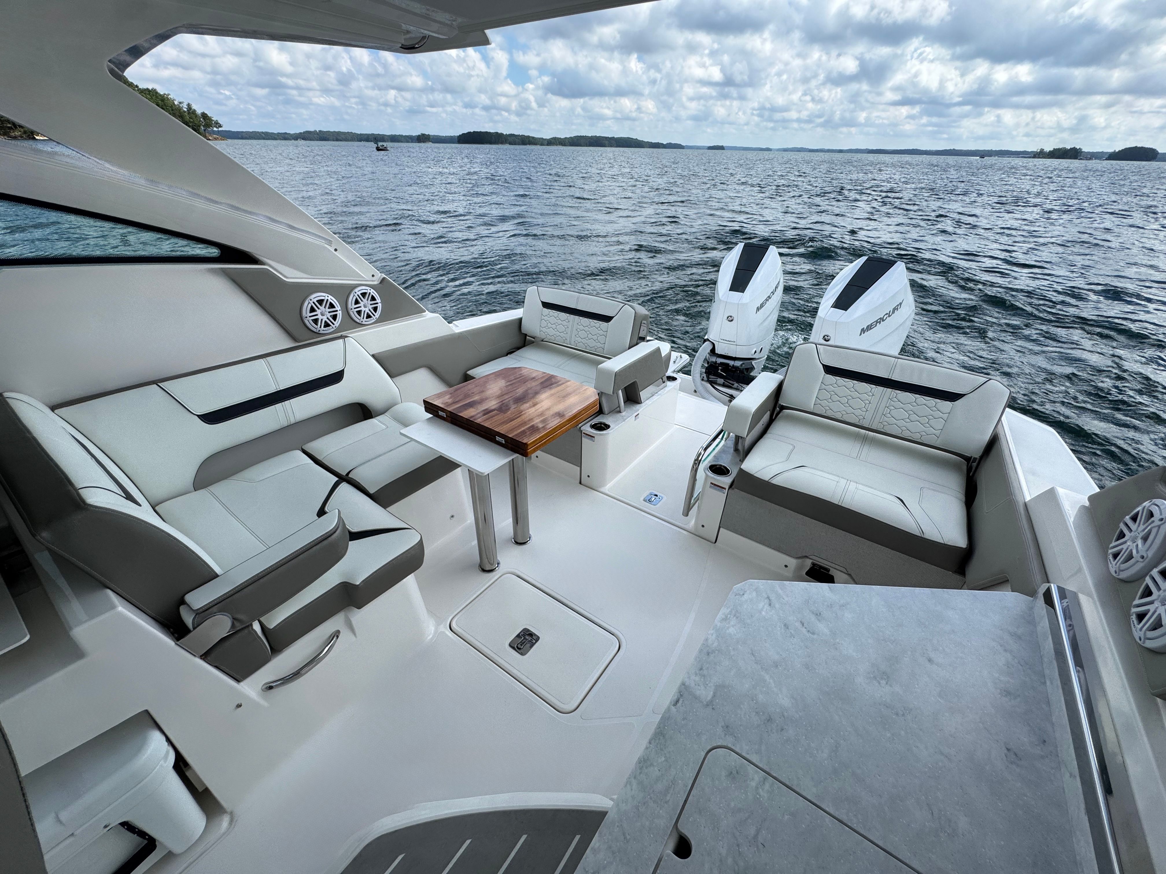 Twin Mercury V10 400HP JPO Engines power this vessel with a combined 800 horsepower, delivering strong acceleration, agile handling, and efficient cruising. Whether hugging the shoreline or heading offshore, the 34 LX responds effortlessly.
