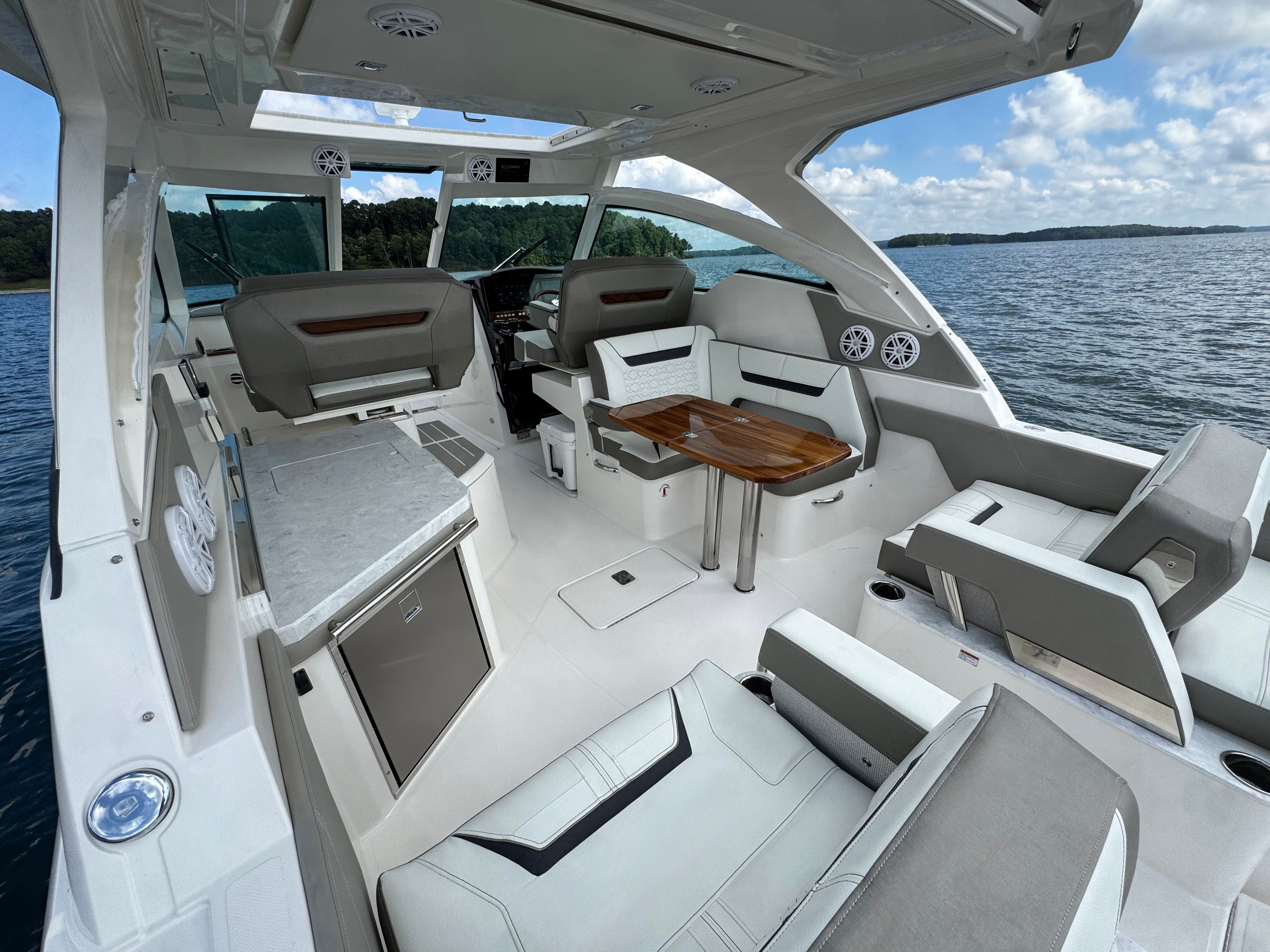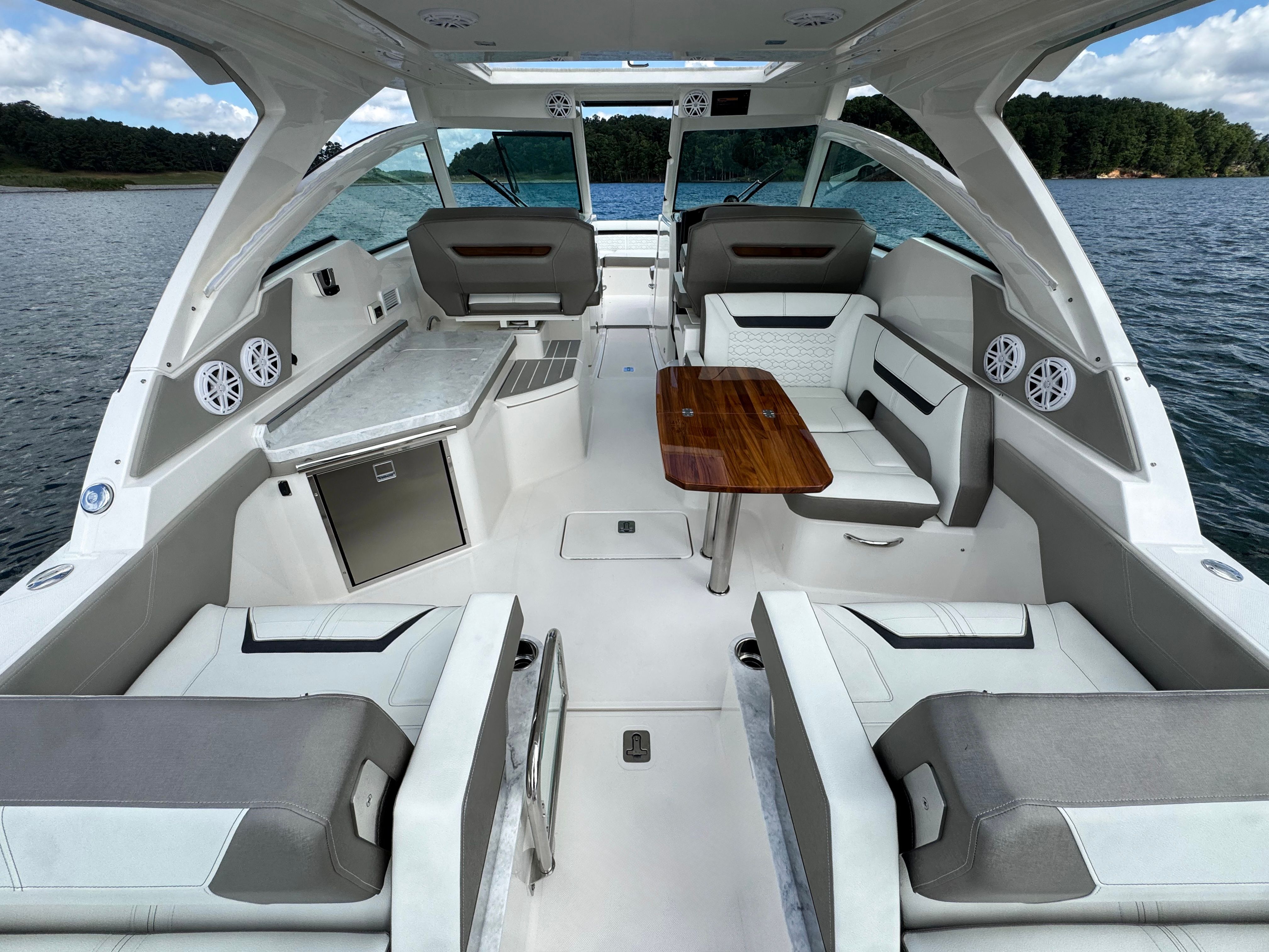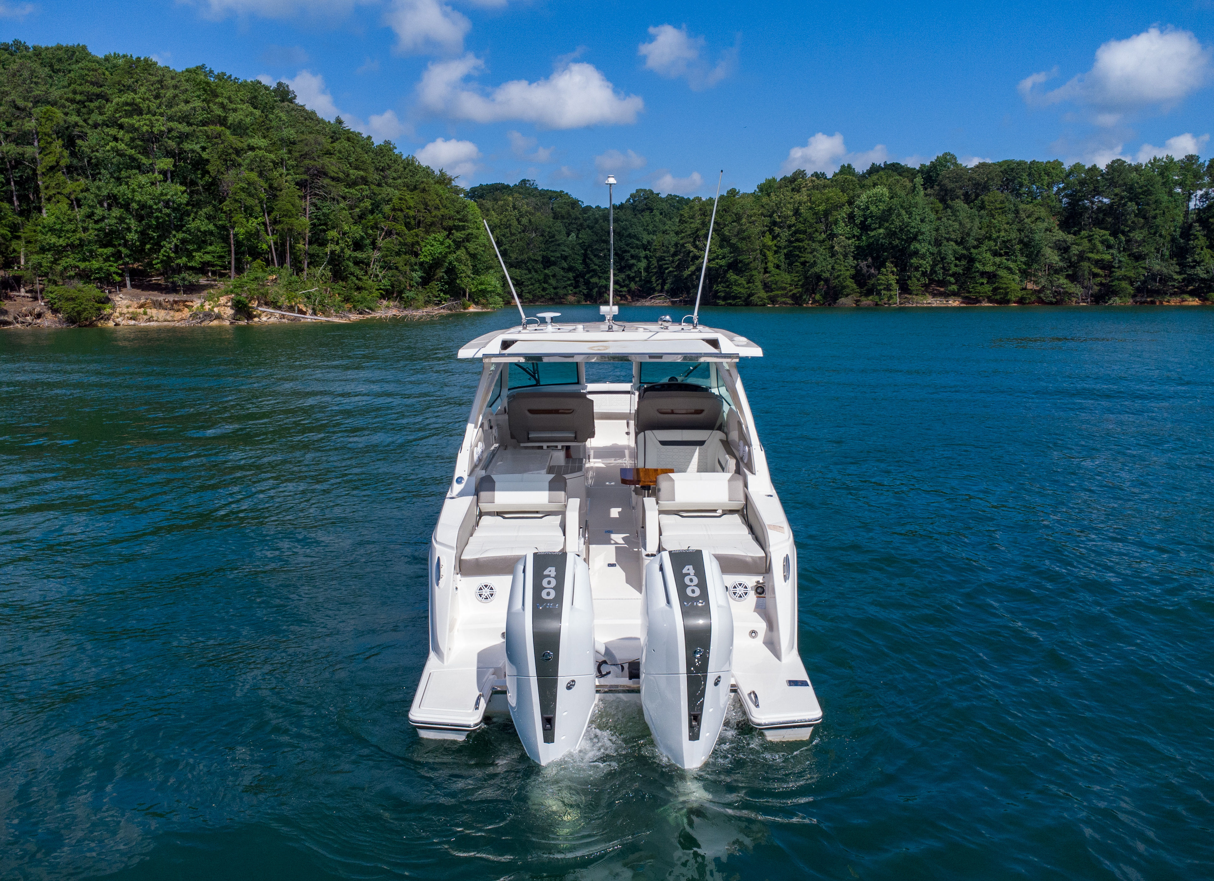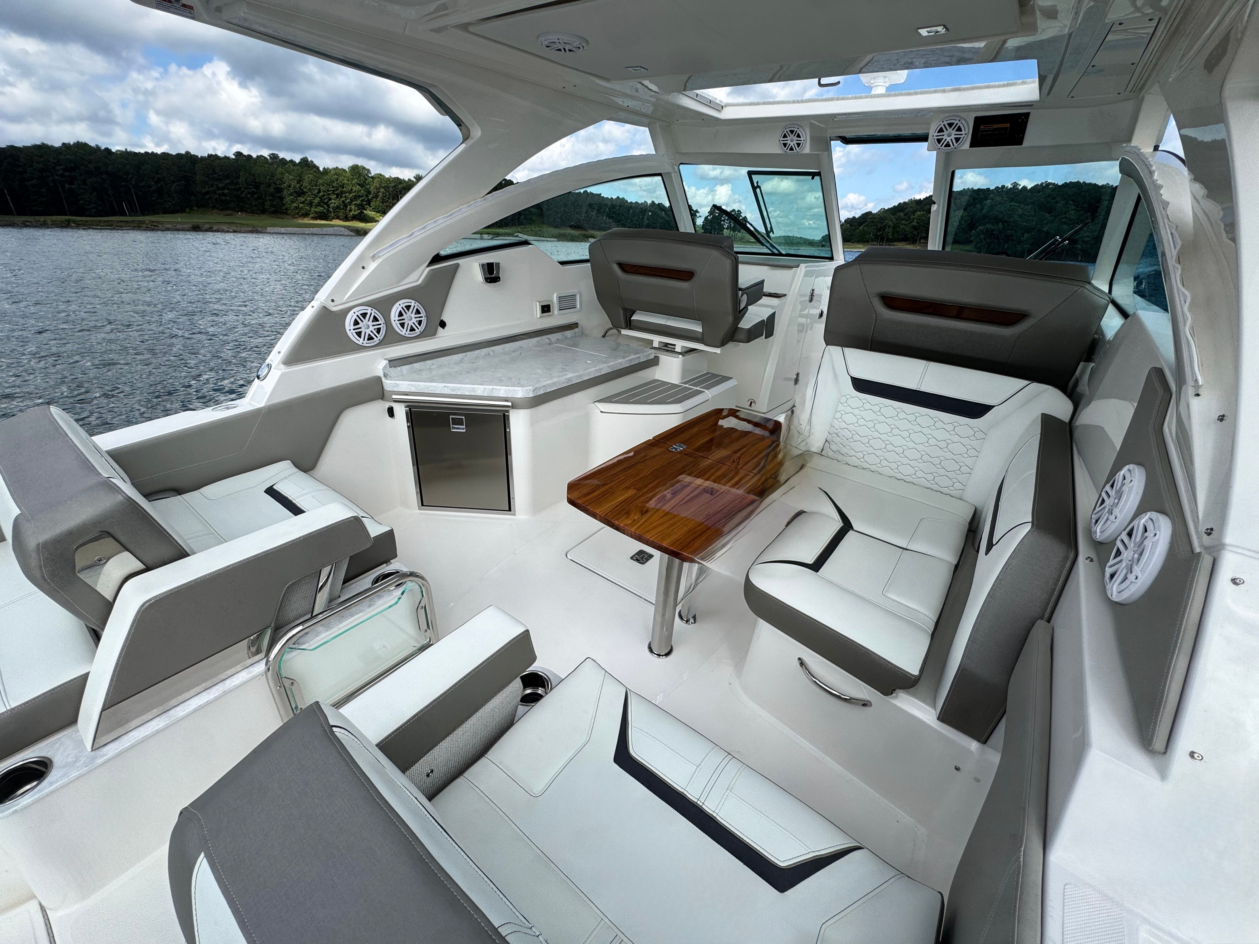 Twin Mercury V10 400HP JPO Engines power this vessel with a combined 800 horsepower, delivering strong acceleration, agile handling, and efficient cruising. Whether hugging the shoreline or heading offshore, the 34 LX responds effortlessly.