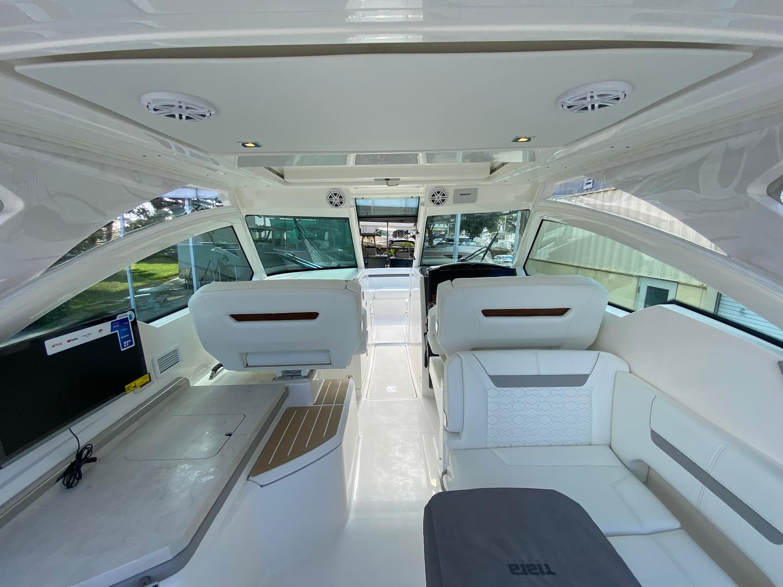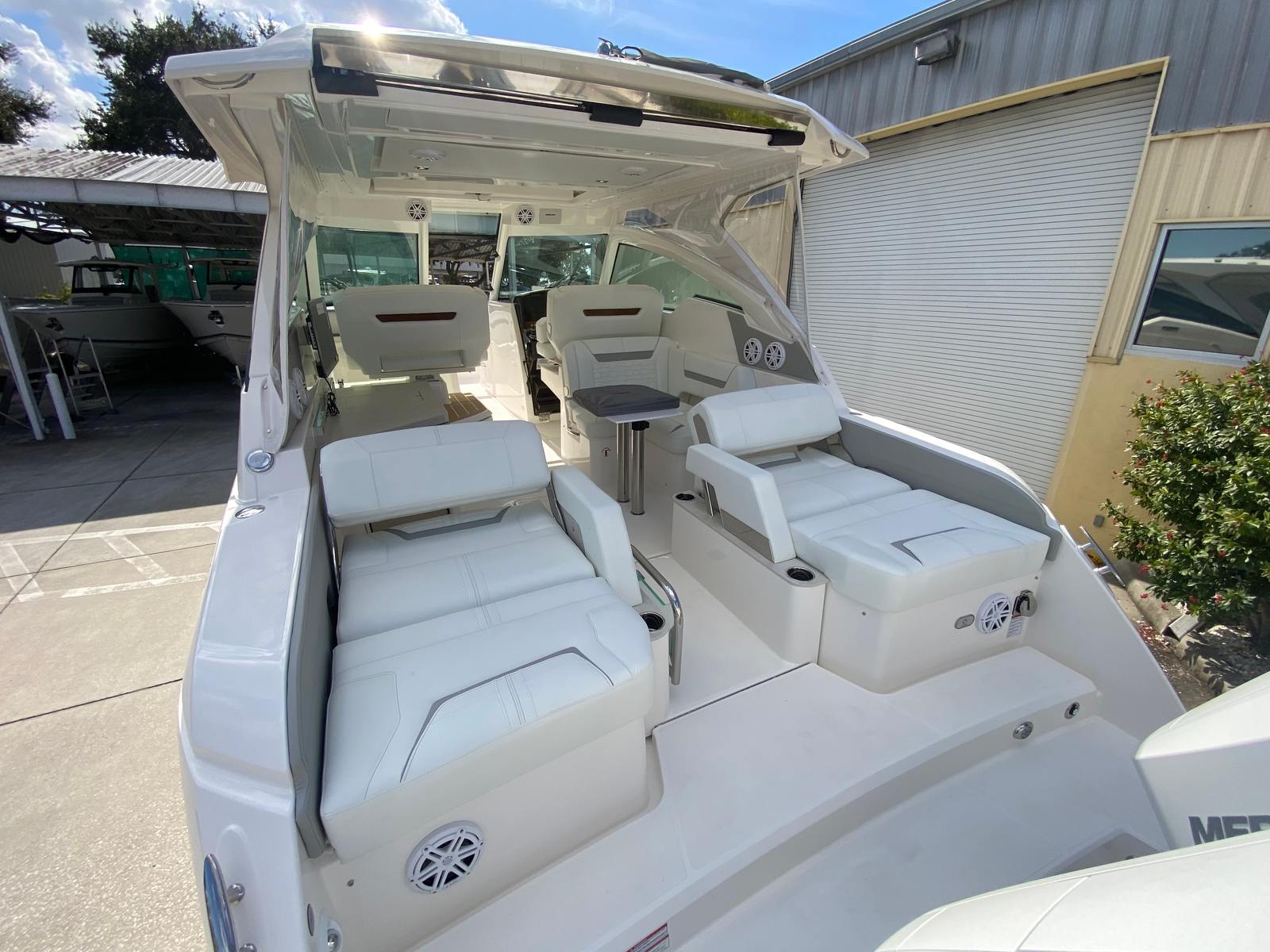 This yacht truly shines in a variety of scenarios. Imagine setting out for a family outing, where everyone can relax in comfort and enjoy the onboard entertainment. The spacious deck is perfect for hosting friends, with plenty of room for socializing and dining. For those seeking adventure, the powerful engines and advanced navigation systems make it easy to explore new destinations or embark on fishing trips. The Mediterranean Style Sunshade and drop curtains provide flexibility for both sunny days and cooler evenings, ensuring you’re always comfortable. Whether you’re planning a luxury getaway or a casual day on the water, the Tiara Yachts 34 LX adapts to your needs and exceeds expectations.