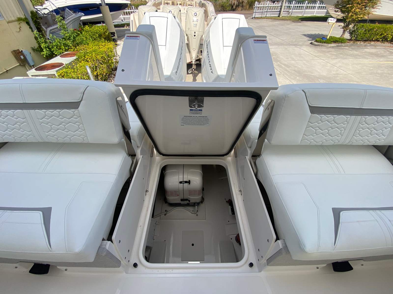 Power and precision are at the heart of the Tiara Yachts 34 LX. Equipped with twin Mercury V10 425 HP engines, this yacht boasts a combined 850 horsepower, delivering exhilarating speed and smooth handling. The advanced JPO (Joystick Piloting for Outboards) system provides effortless maneuverability, making docking and navigating tight spaces a breeze. Whether you’re cruising along the coastline or heading out for a day of adventure, the 34 LX offers a responsive and thrilling ride. The generator ensures reliable power for all your onboard systems, while the Panda 5KW/6 Gal Water Heater adds convenience for extended trips.