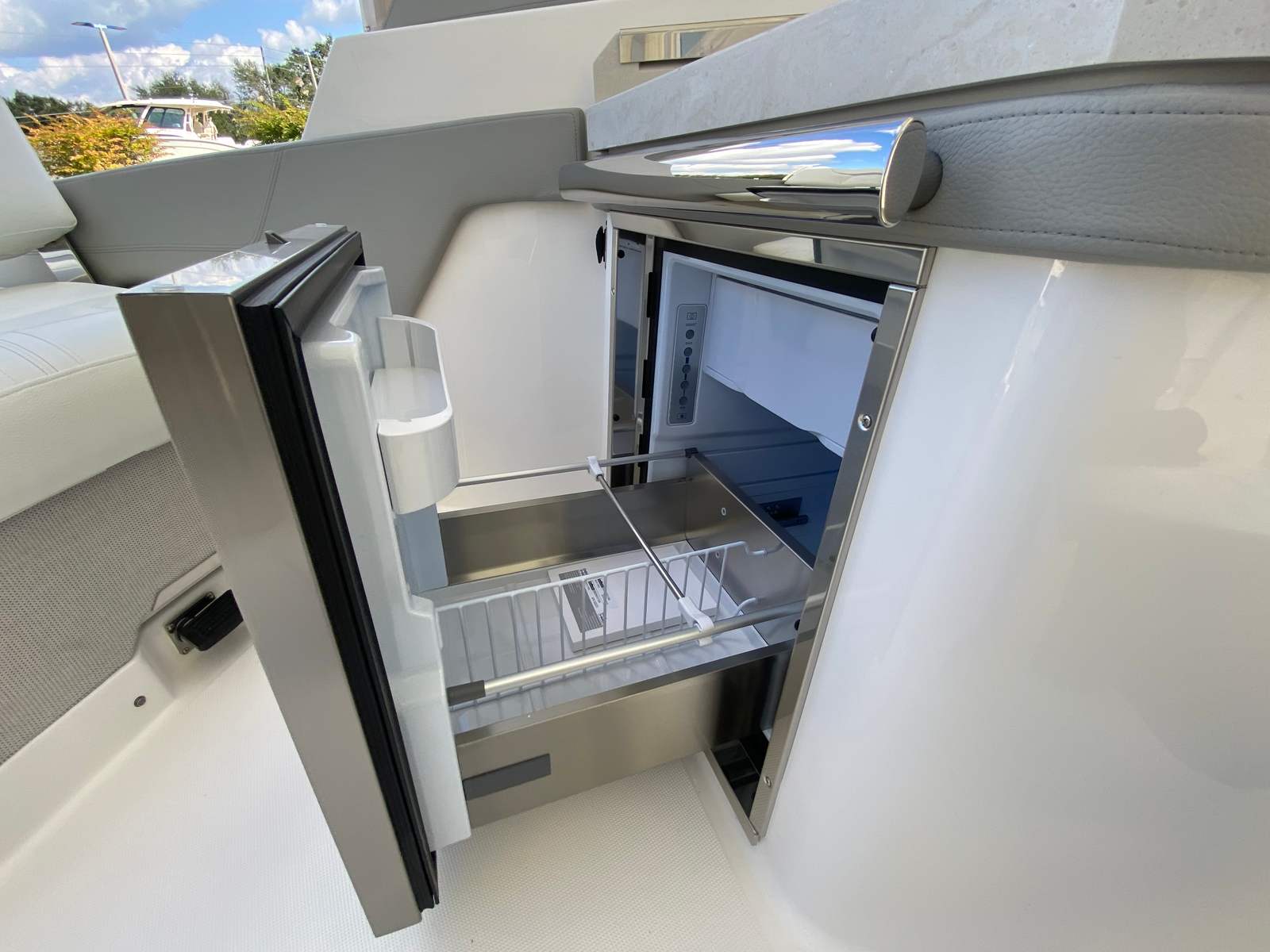 The Tiara Yachts 34 LX is designed with practicality in mind, making ownership both easy and rewarding. The efficient waste system and water heater support longer journeys, while the generator provides reliable power for all your needs. The yacht’s manageable length and advanced piloting system make docking and storage straightforward, even for those new to yachting. The durable Syn Teak Deck is easy to clean and maintain, ensuring your boat looks its best with minimal effort. The additional Garmin display enhances navigation, giving you confidence whether you’re exploring new waters or returning to your favorite spots.