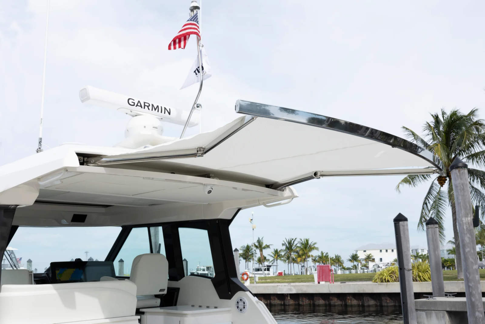 The Tiara Yachts 39 LE is loaded with premium features that elevate your time on the water. The head macerator system provides convenience and efficiency, while the Dometic Voyager® 18,000 BTU cockpit air conditioning system with reverse cycle heat ensures year-round comfort, keeping you cool in the summer and warm during cooler months. The oil changer for the generator streamlines maintenance, allowing you to spend more time enjoying your yacht and less time on upkeep.For anchoring, the all-chain windlass with remote at the helm offers both reliability and ease of use, giving you complete control from the captain’s seat. Entertaining is a breeze with the aft-facing cockpit wet bar options, including a refrigerator and a cockpit TV, perfect for hosting friends and family or relaxing after a day on the water. The synthetic teak decking on the aft cockpit and swim platform adds a touch of elegance and durability, providing a non-slip surface that is both stylish and practical.