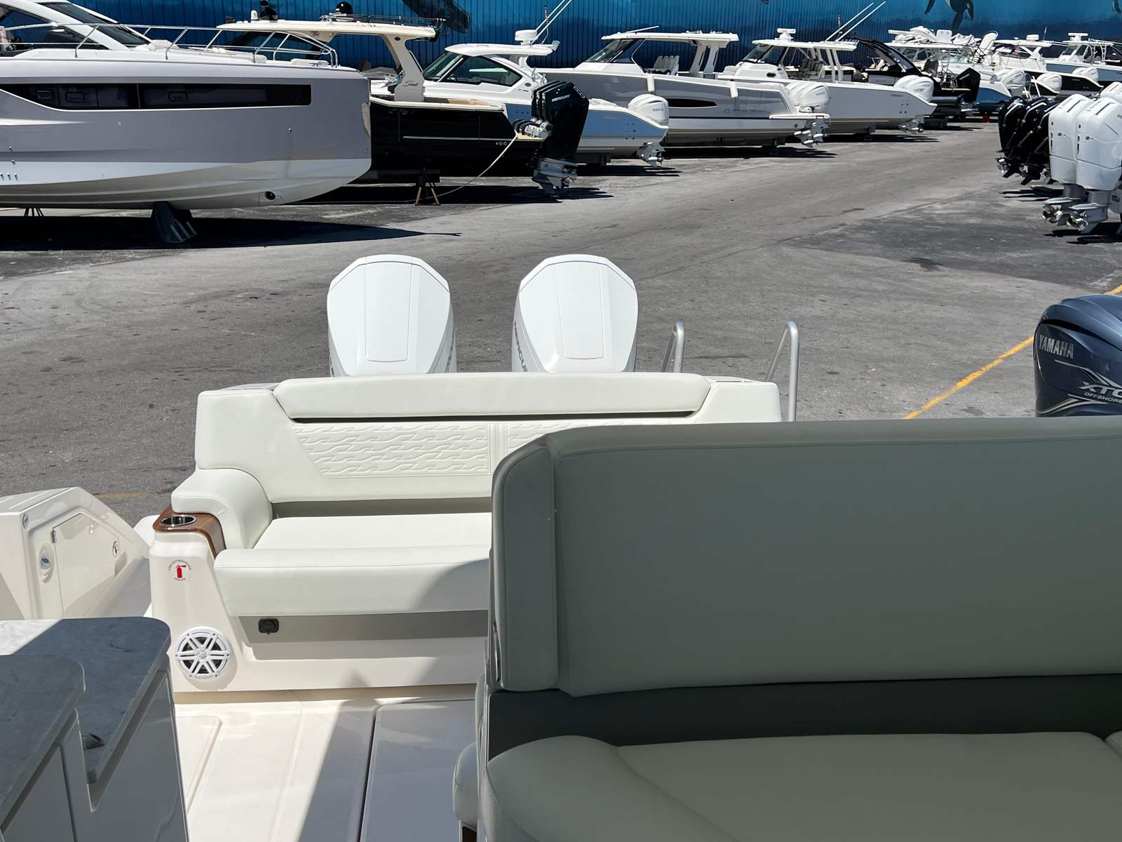 This yacht is loaded with premium features designed to elevate your boating lifestyle. The Silver Lake hull color and Crystal White bootline create a modern, elegant exterior that reflects the yacht’s high-end pedigree. Step aboard to discover the Lighthouse White signature exterior upholstery, which not only looks stunning but also offers durability and comfort. Inside, the Shoreline interior fabric and Lighthouse White/Shoreline upholstery provide a sophisticated and relaxing environment, perfect for entertaining or unwinding after a day on the water. The solid surface materials, both interior and exterior, are finished in LG Aurora Andria, adding a touch of luxury and easy maintenance to every surface.For those who value comfort in all conditions, the Cool Helm AC system ensures the captain and guests stay cool and refreshed, even on the hottest days. The bow thruster, integrated with Mercury JPO, allows for precise control and effortless docking, while the Seakeeper SK4.5 GYRO stabilizer keeps the yacht steady, reducing fatigue and enhancing enjoyment for everyone on board. Every detail of the Tiara Yachts 39 LE is thoughtfully designed to maximize comfort, convenience, and style.