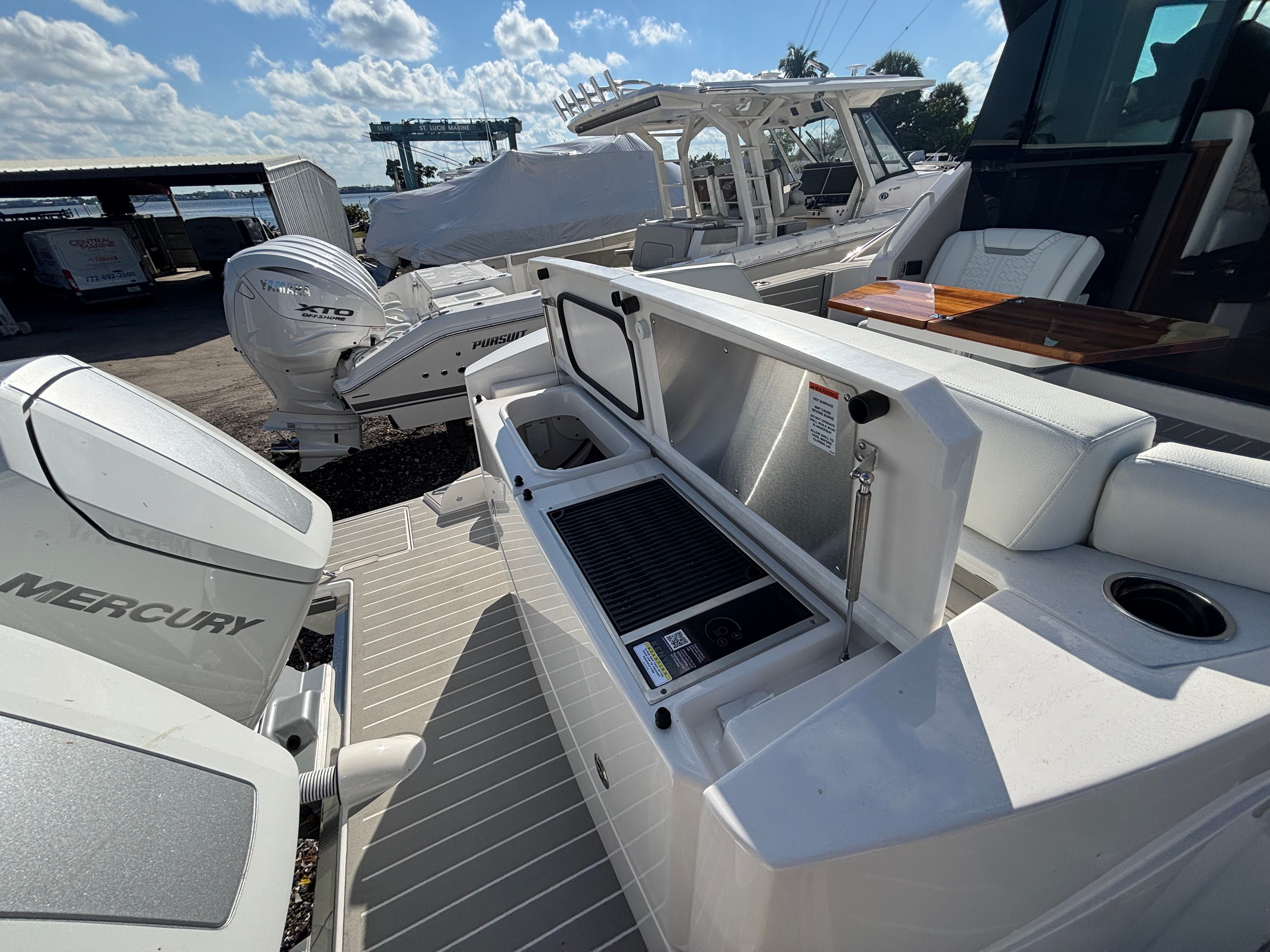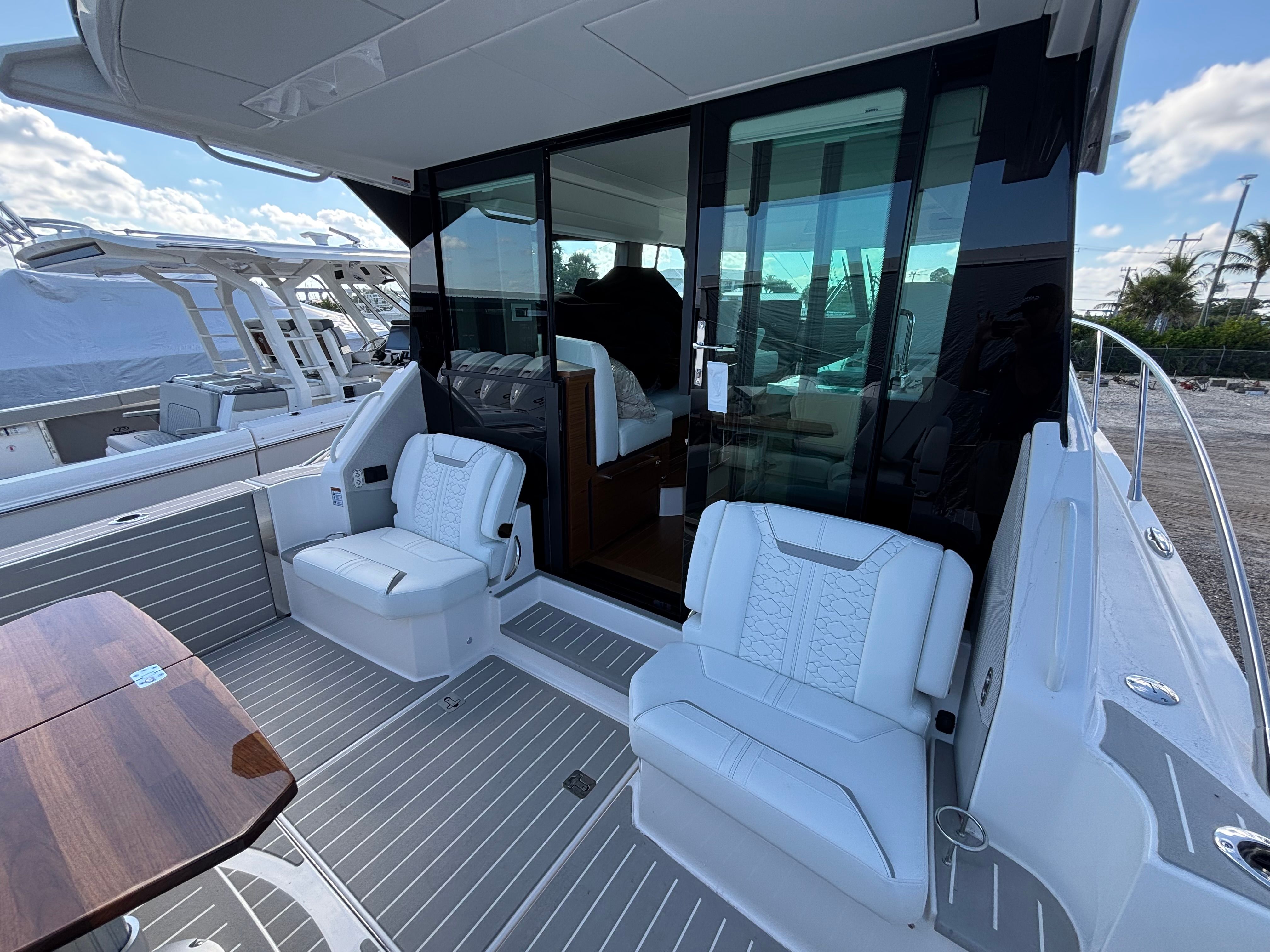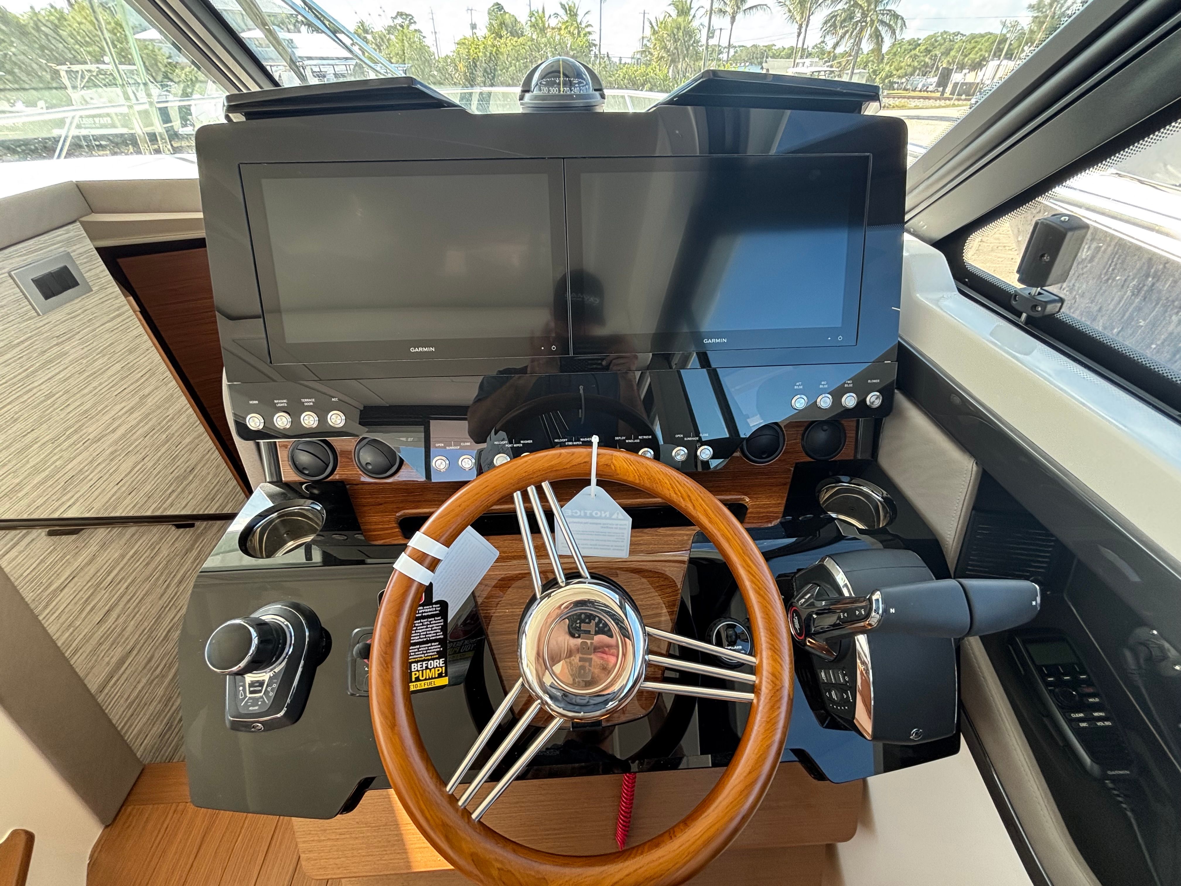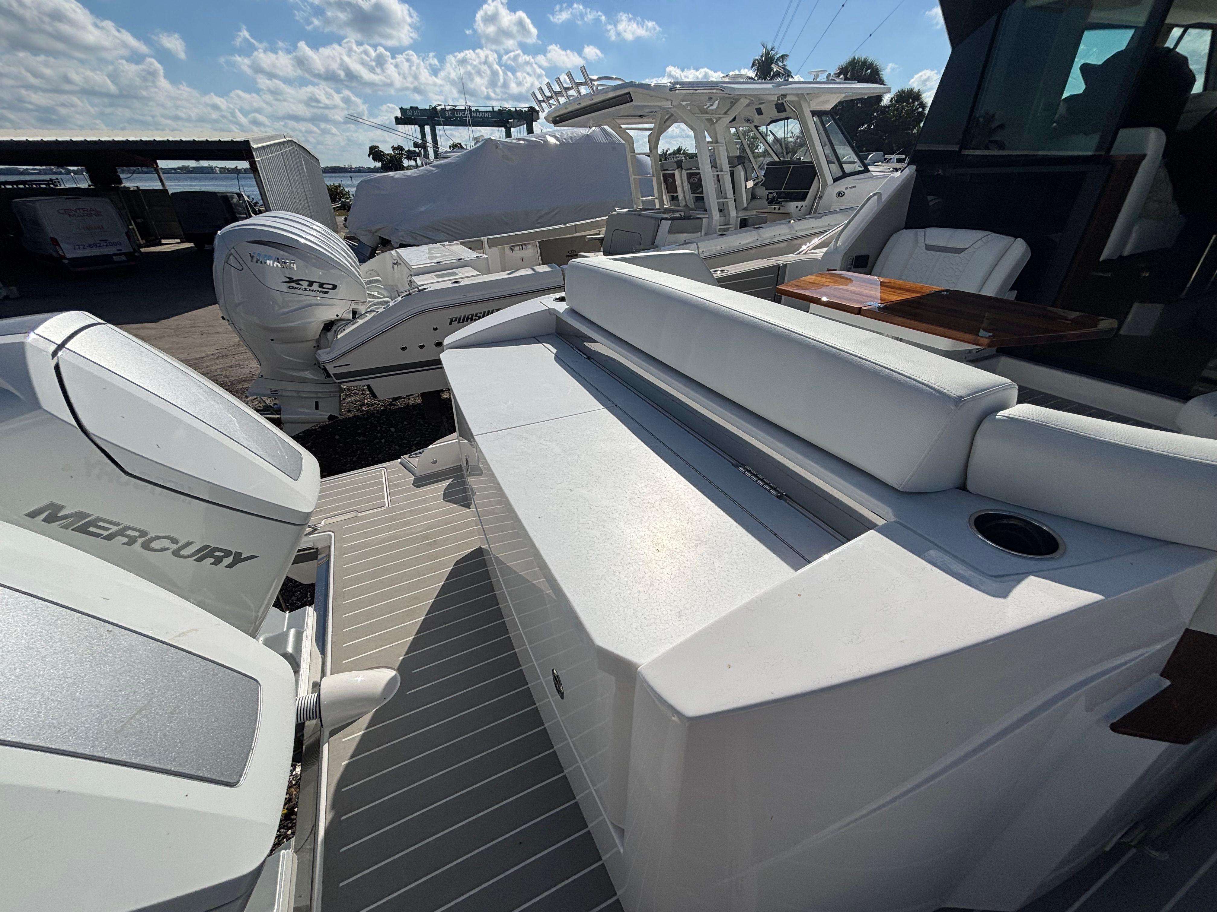 The 2026 Tiara Yachts 43 LE is loaded with premium features that enhance both functionality and luxury. The inclusion of an oil changer for the generator simplifies routine maintenance, allowing you to spend more time enjoying the water and less time on upkeep. The all-chain windlass ensures secure and reliable anchoring, while the Electrosea strainer provides advanced protection for your onboard systems, keeping your yacht running smoothly in a variety of conditions.For onboard comfort and convenience, the head macerator system offers efficient waste management, and the freezer with icemaker ensures you always have refreshments on hand. The lunge module creates a versatile space for relaxation or socializing, and gunwale rod holders cater to fishing enthusiasts looking to cast a line at a moment’s notice. The Syn Teak deck not only adds a touch of elegance but also provides a durable, low-maintenance surface that stands up to the elements. The Seakeeper SK6 Gyro stabilizer is a game-changer, dramatically reducing roll and ensuring a smooth, comfortable ride even in choppy waters. The standard package rounds out this yacht’s impressive offering, making it a standout choice for anyone seeking a Tiara Yachts boat for sale.