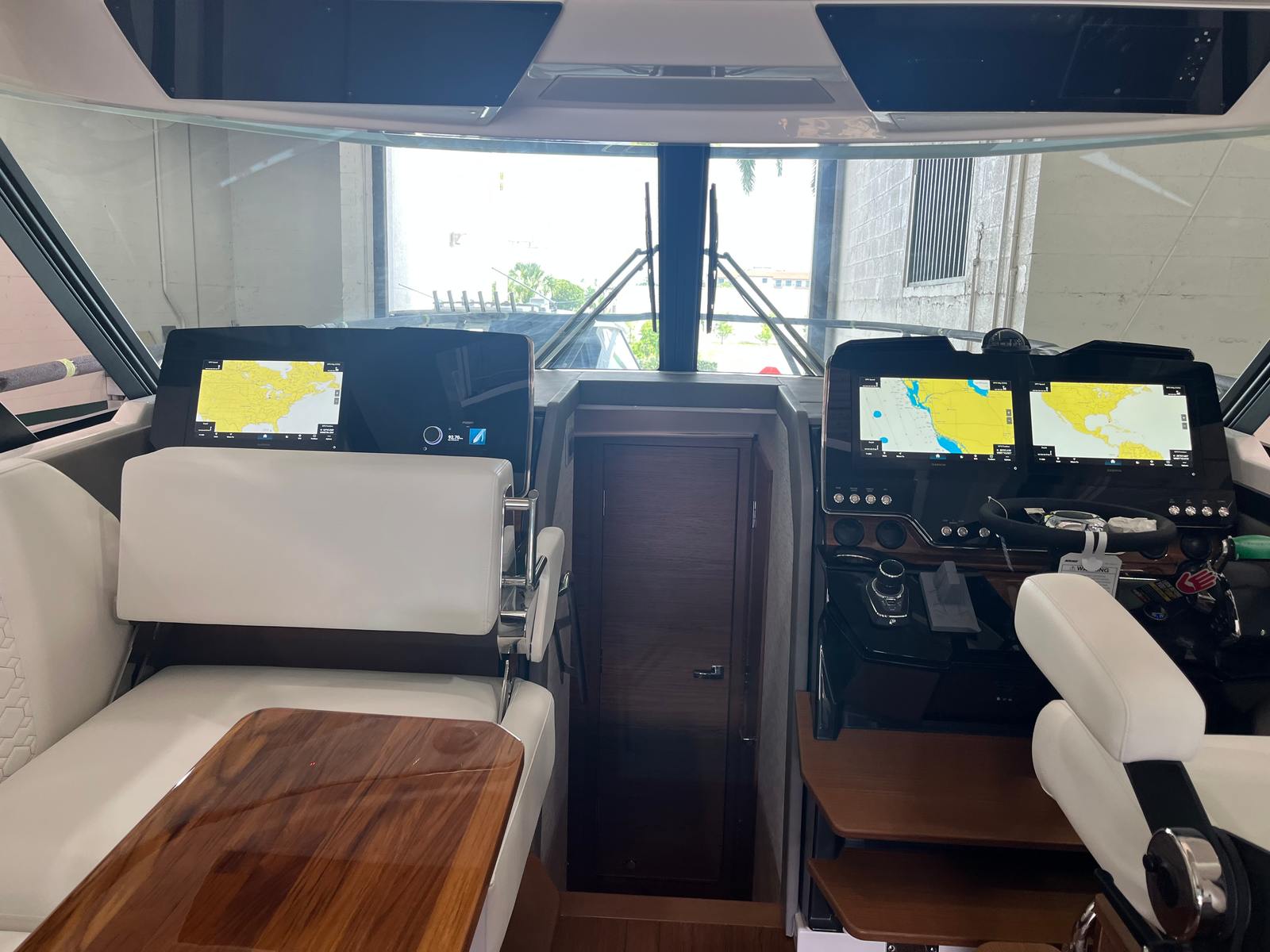 Step aboard the Tiara Yachts 43 LE and immerse yourself in a world of luxury and innovation. The interior upholstery in Lighthouse White creates a bright and inviting atmosphere, perfectly complemented by solid surface finishes in LG Aurora Andria throughout both the interior and exterior spaces. This yacht is equipped with an additional Garmin 16" display, enhancing navigation and situational awareness for the captain. The Garmin 48" Fantom open array radar provides superior detection capabilities, ensuring safe passage in all conditions.Stay connected and entertained with satellite radio and weather-ready features, keeping you informed and entertained no matter where your journey takes you. The electric fold-down antennas and navigation light add convenience and a streamlined look, while the Seakeeper SK6 gyro stabilizer ensures a smooth and comfortable ride, even in choppy waters. The oil changer for the generator simplifies maintenance, allowing you to spend more time enjoying your yacht and less time on upkeep.