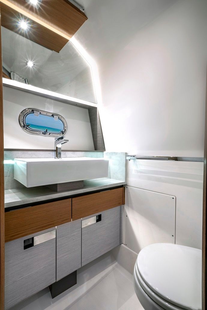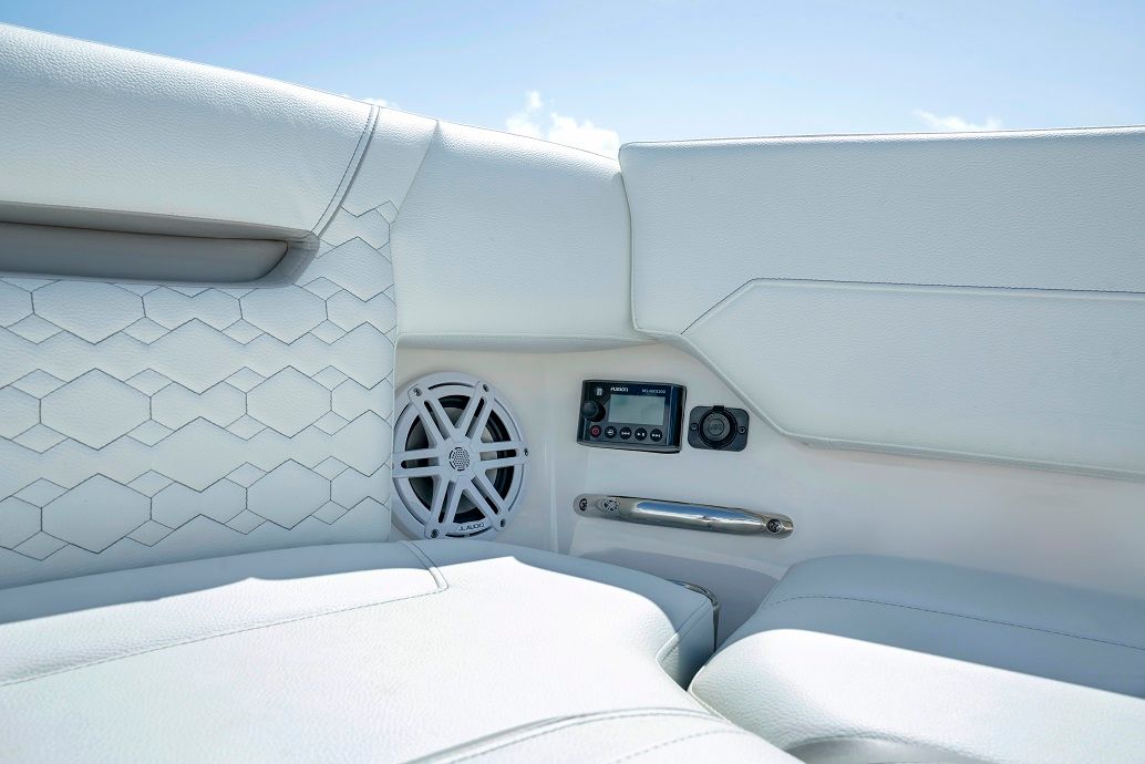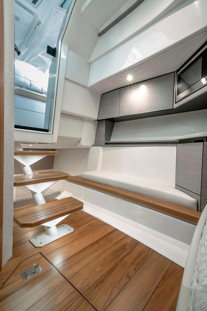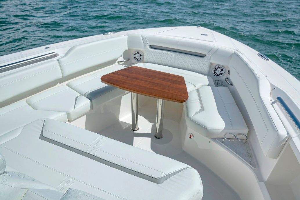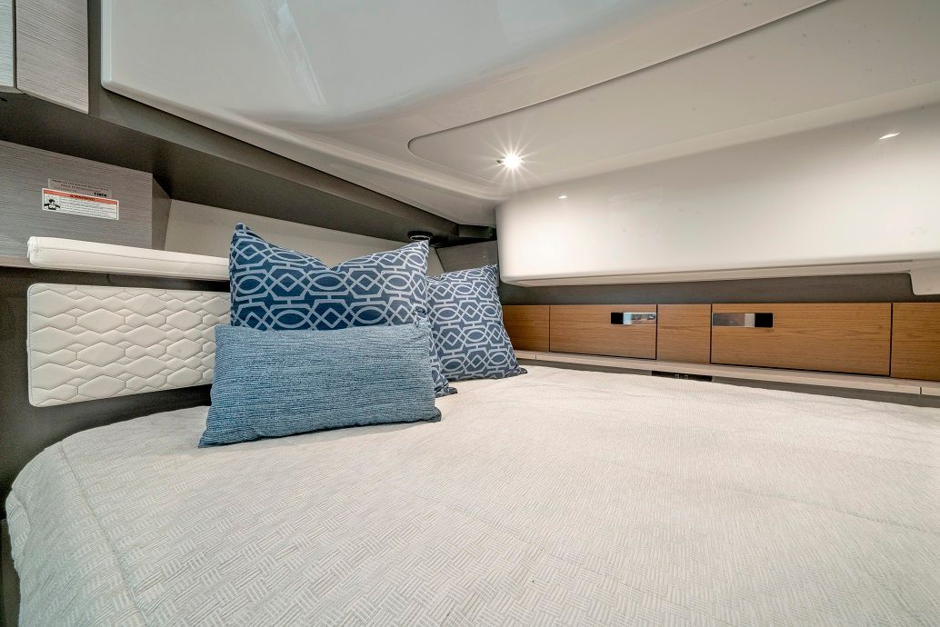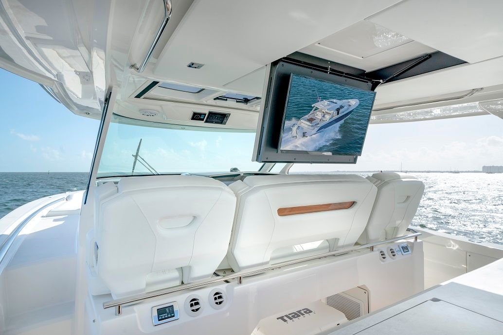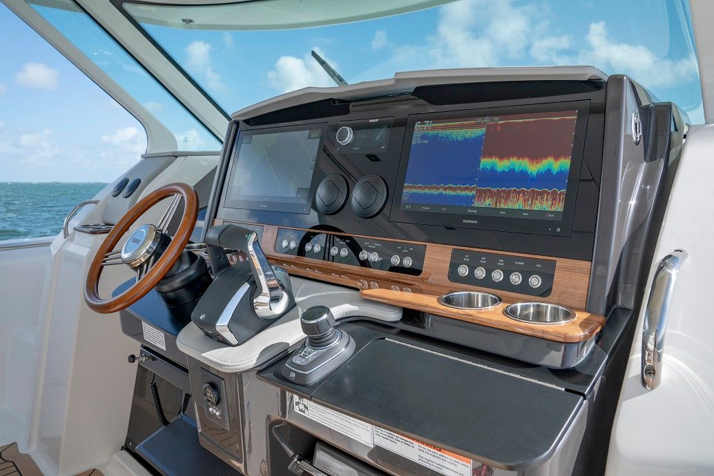 The Tiara Yachts 43 LS is equipped with a host of special features that set it apart from other yacht boats for sale. The Oil Changer for Generator simplifies maintenance, allowing for easy oil changes and keeping your generator running smoothly. The Electrosea Strainer provides advanced protection for your engine’s cooling system, reducing the risk of clogs and ensuring optimal performance. The Macerator adds convenience for waste management, making longer trips more comfortable.Enjoy the luxury of the Syn Teak Deck, which offers the look and feel of traditional teak with enhanced durability and low maintenance. The Platinum Gray finish on both the deck and swim/step area adds a modern touch, while the Lounge Module creates a versatile space for relaxation and socializing. Gunwale Rod Holders are perfect for fishing enthusiasts, providing secure storage for rods and easy access during your outings. The Fwd Manual Mediterranean Style Sunshade offers shade and comfort, allowing you to enjoy sunny days without overheating.