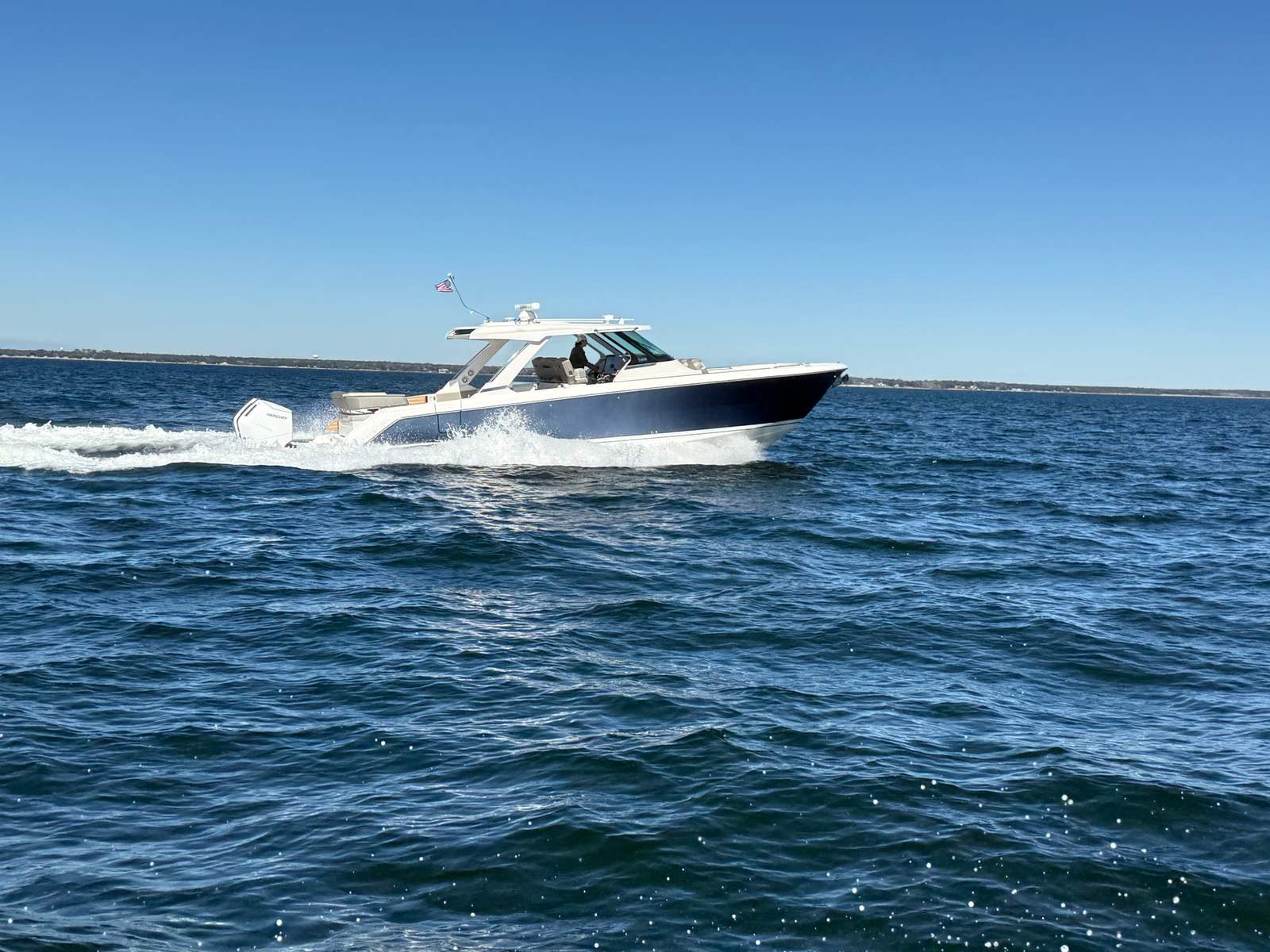 indoor/outdoor entertaining spaces—making it equally well suited for cruising, day boating, and hosting guests.