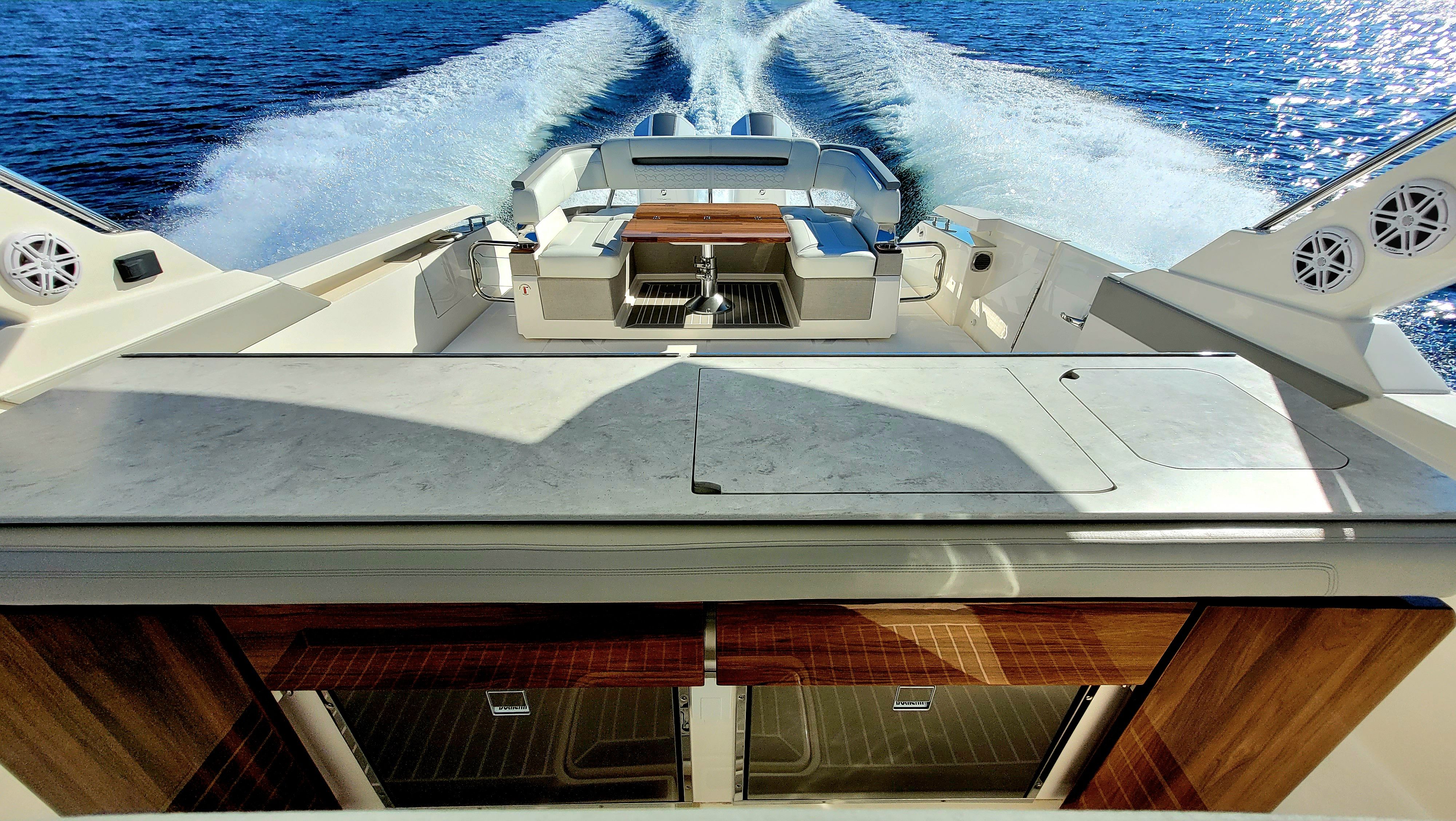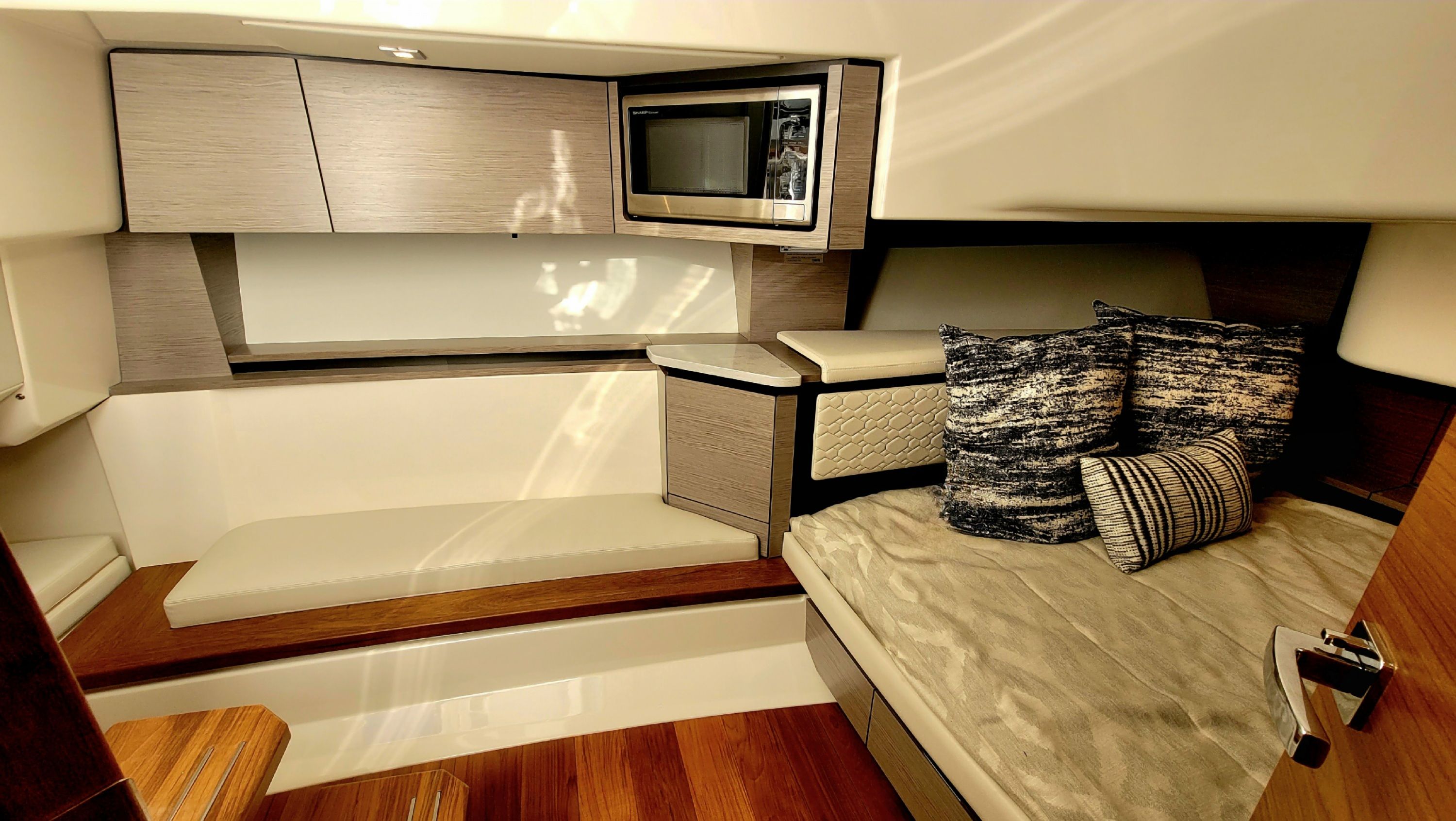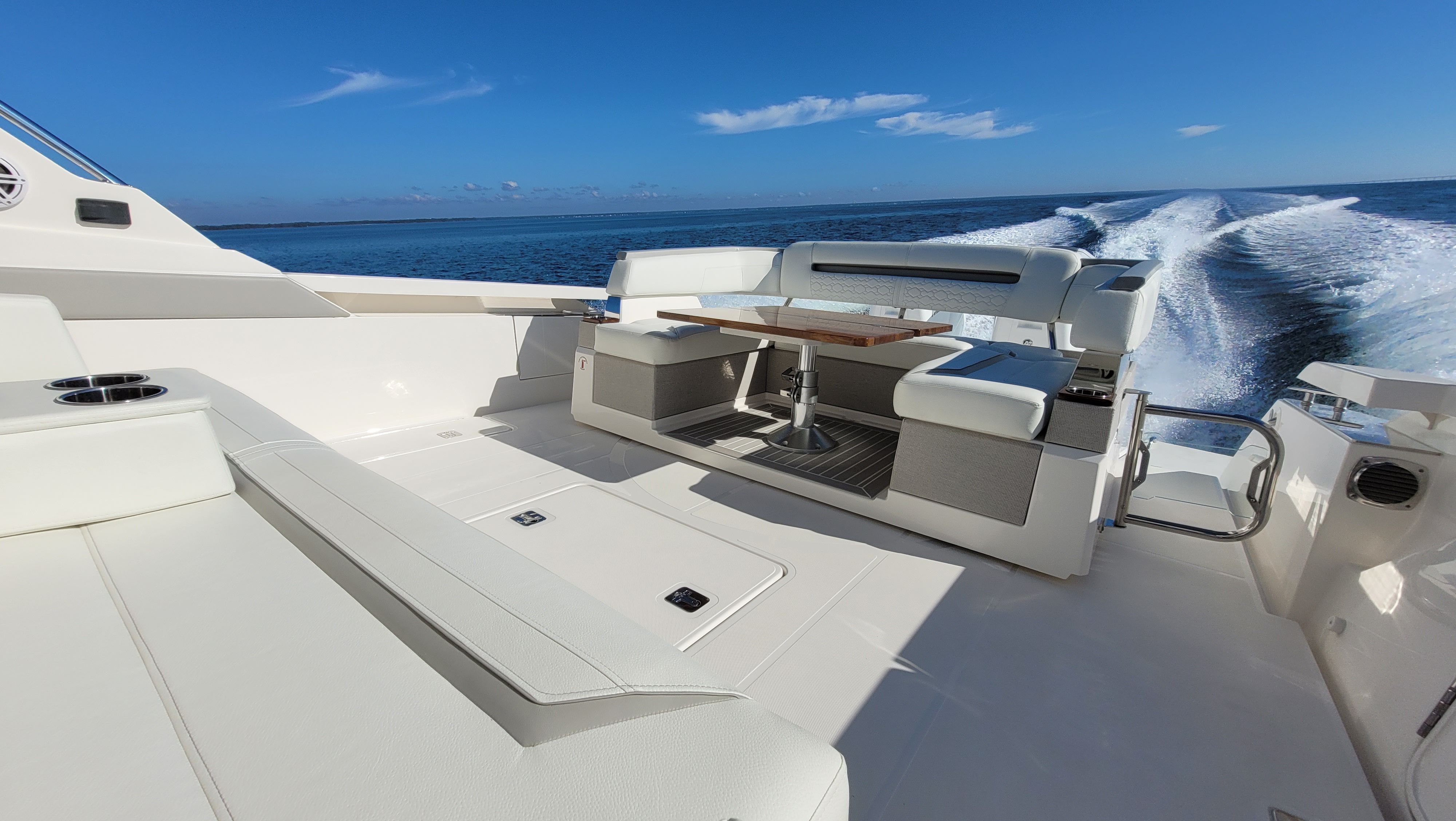 The space and layout is amazing, the comfortable forward bow seating with optional foiward Mediterranean