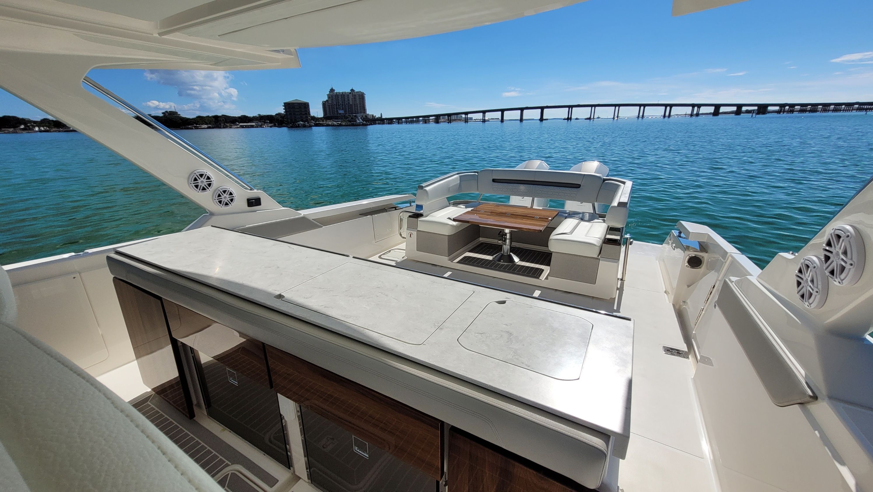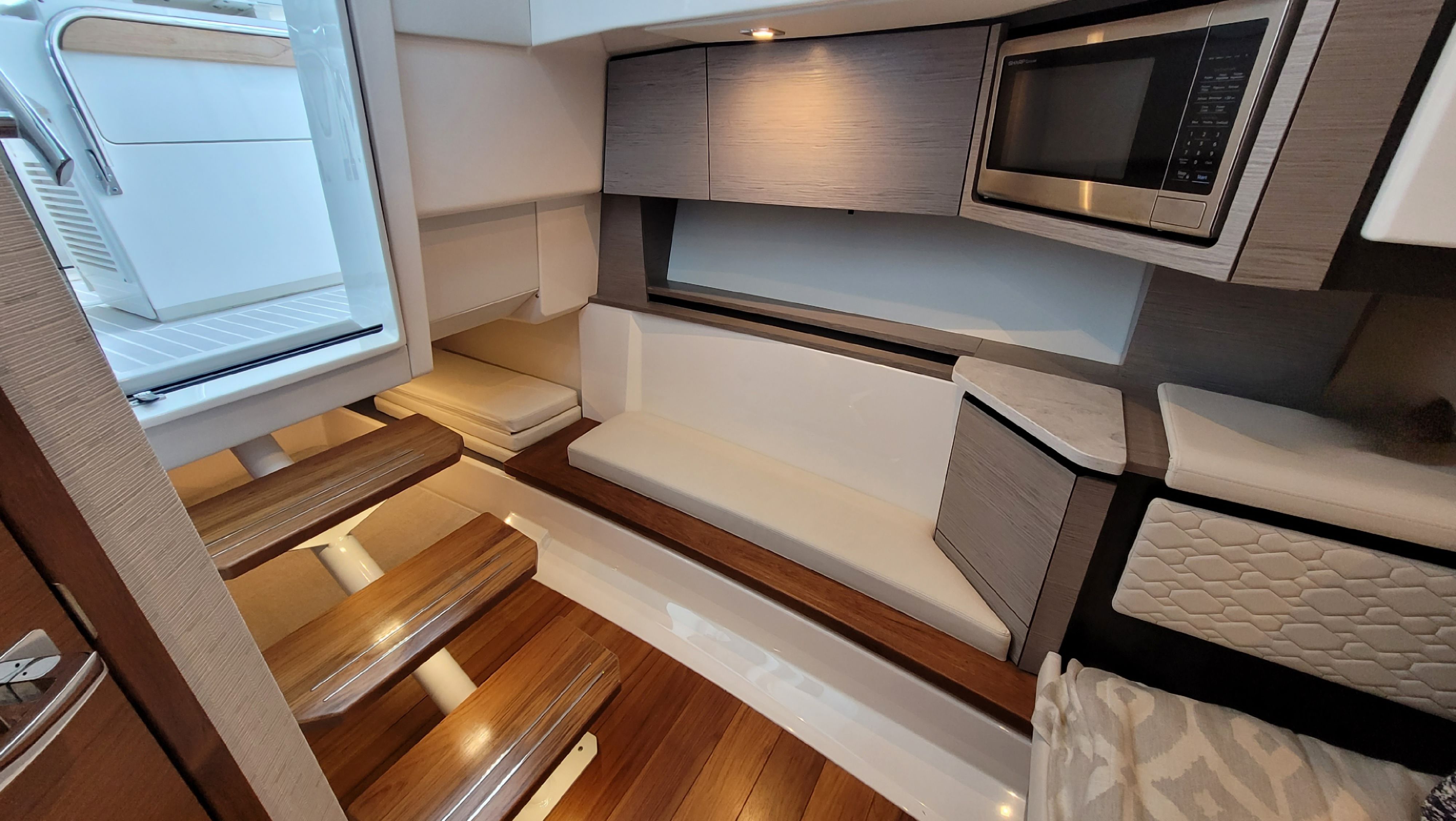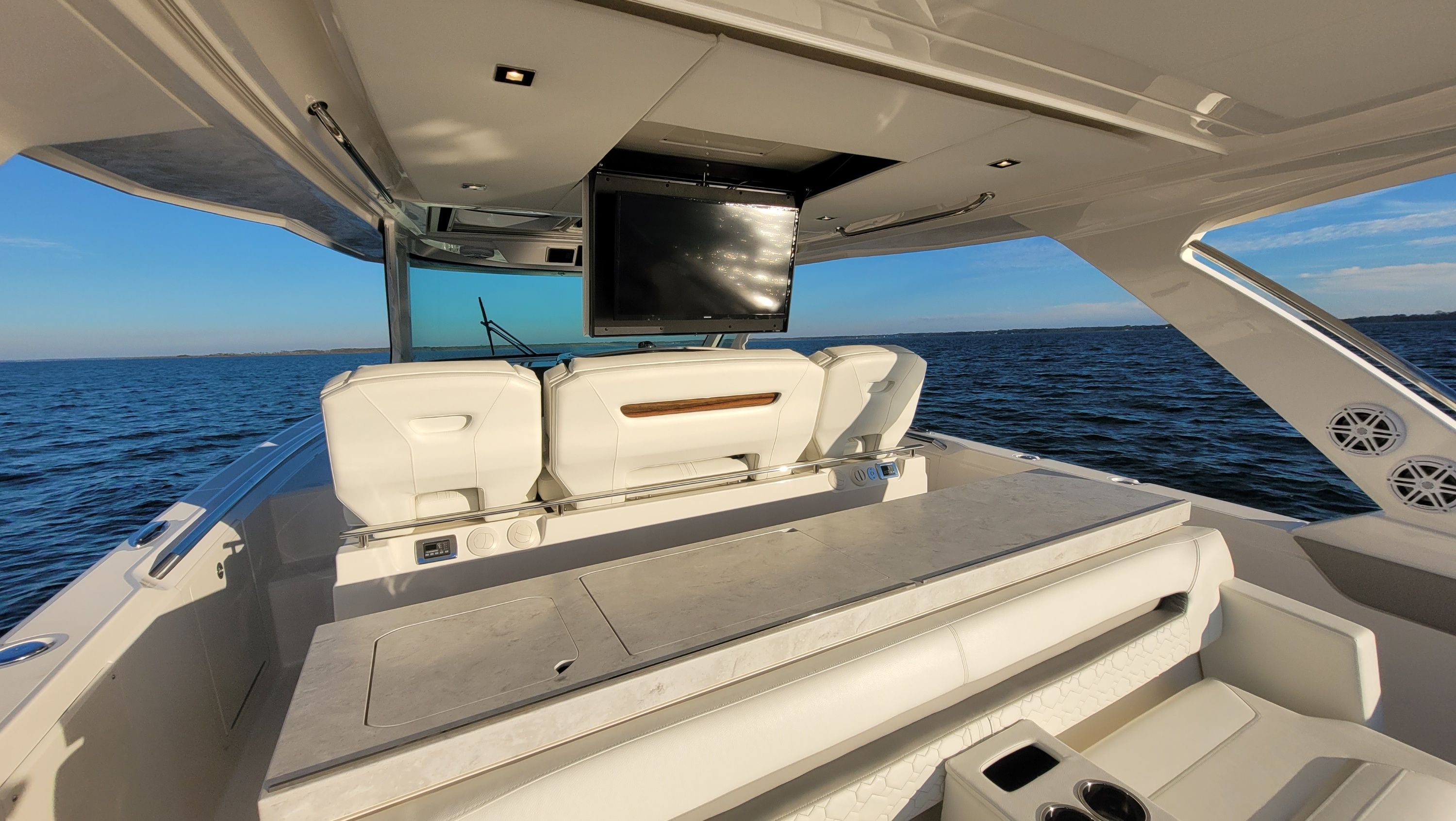 The space and layout is amazing, the comfortable forward bow seating with optional foiward Mediterranean
