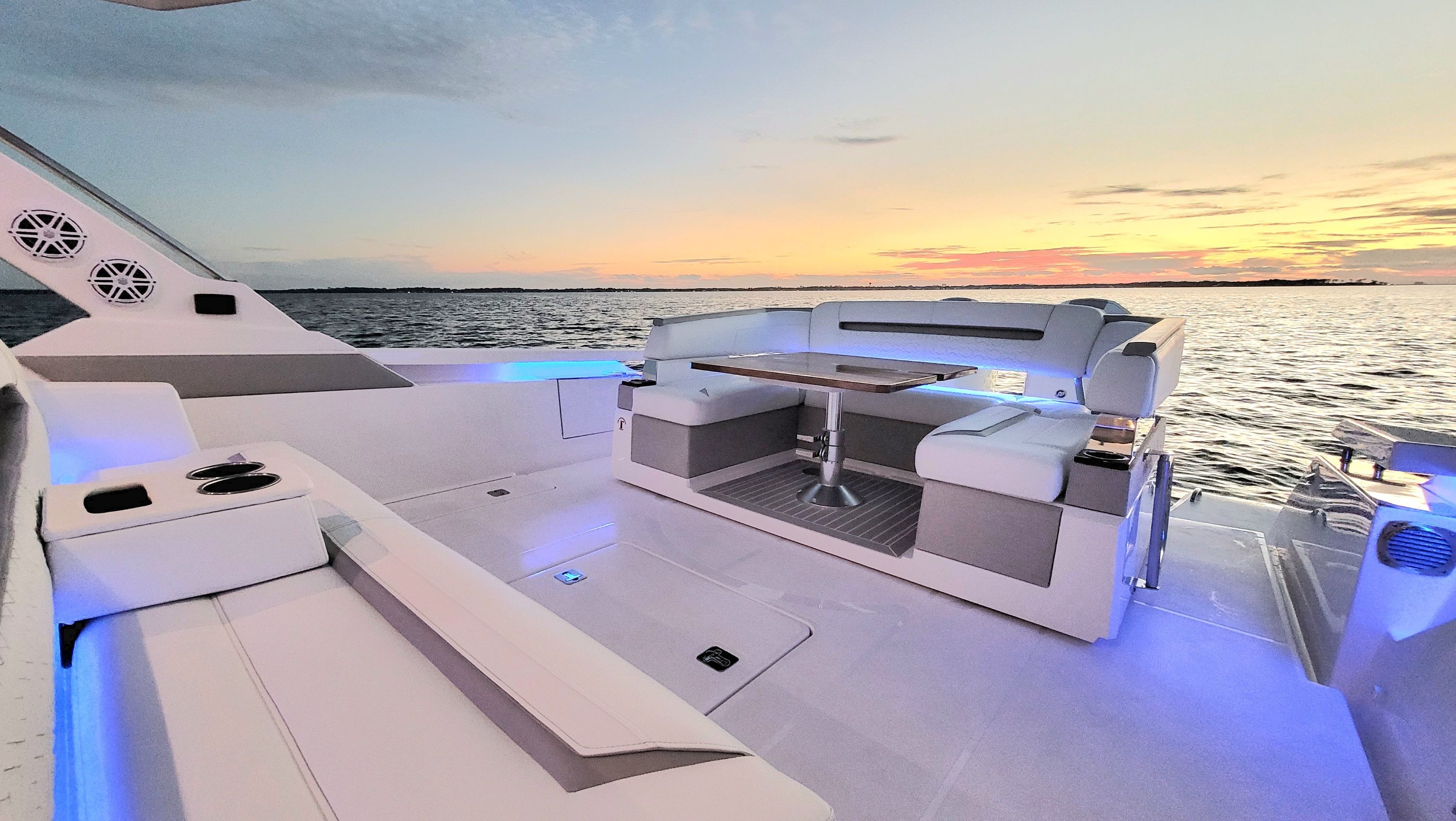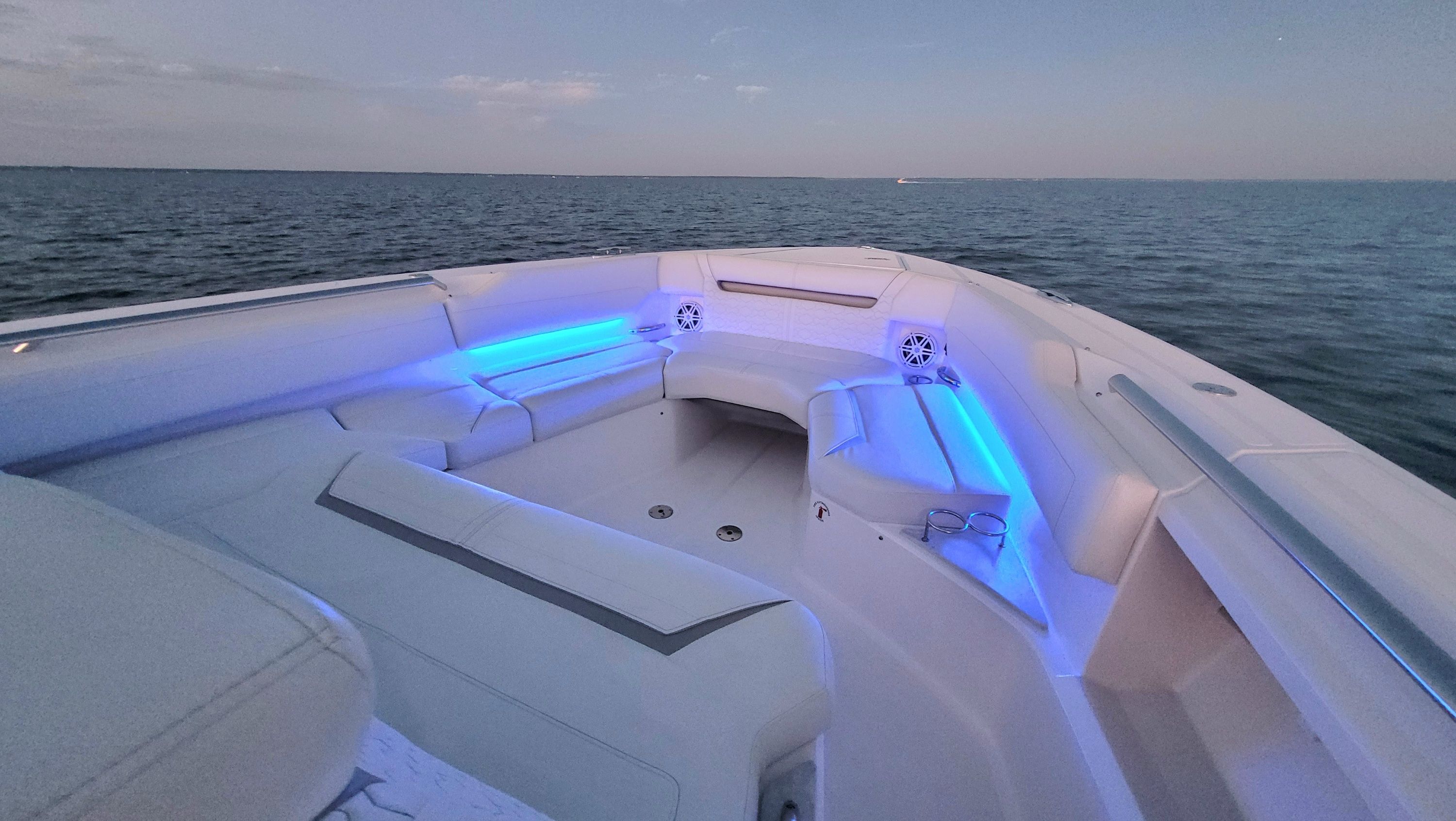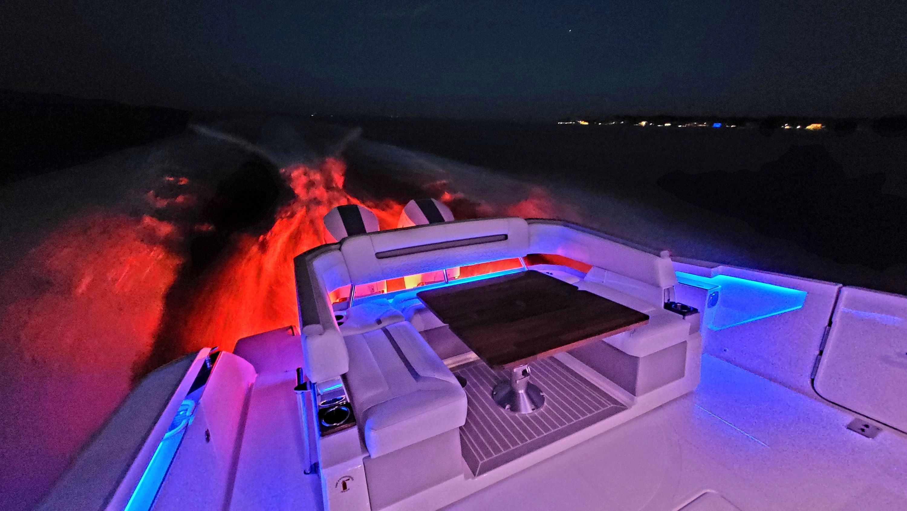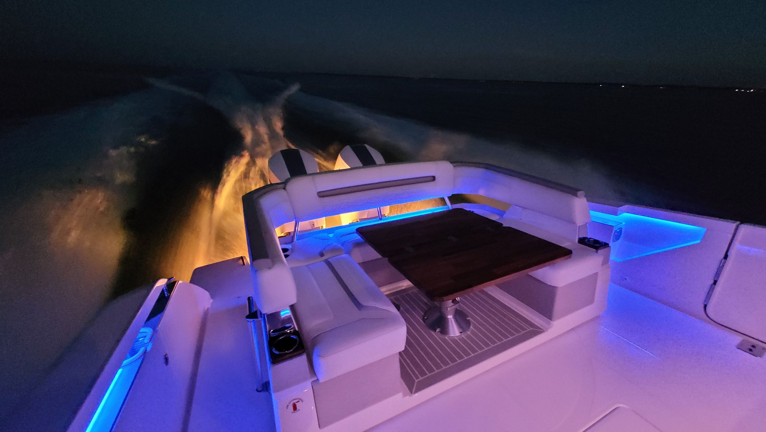 refrigeration and storage is amazing and in the evening the Shadowcaster accent lighting transforms this Yacht into