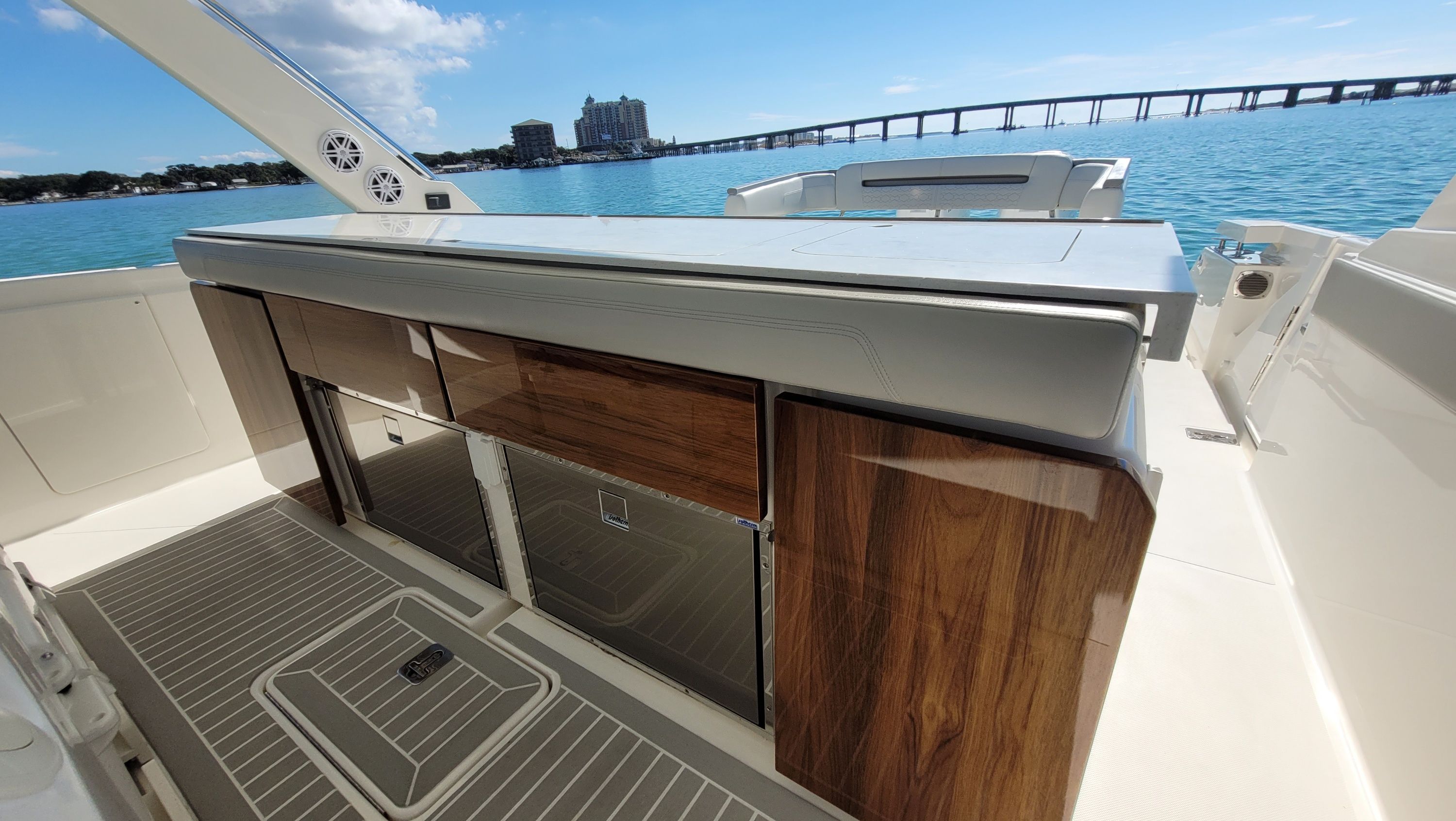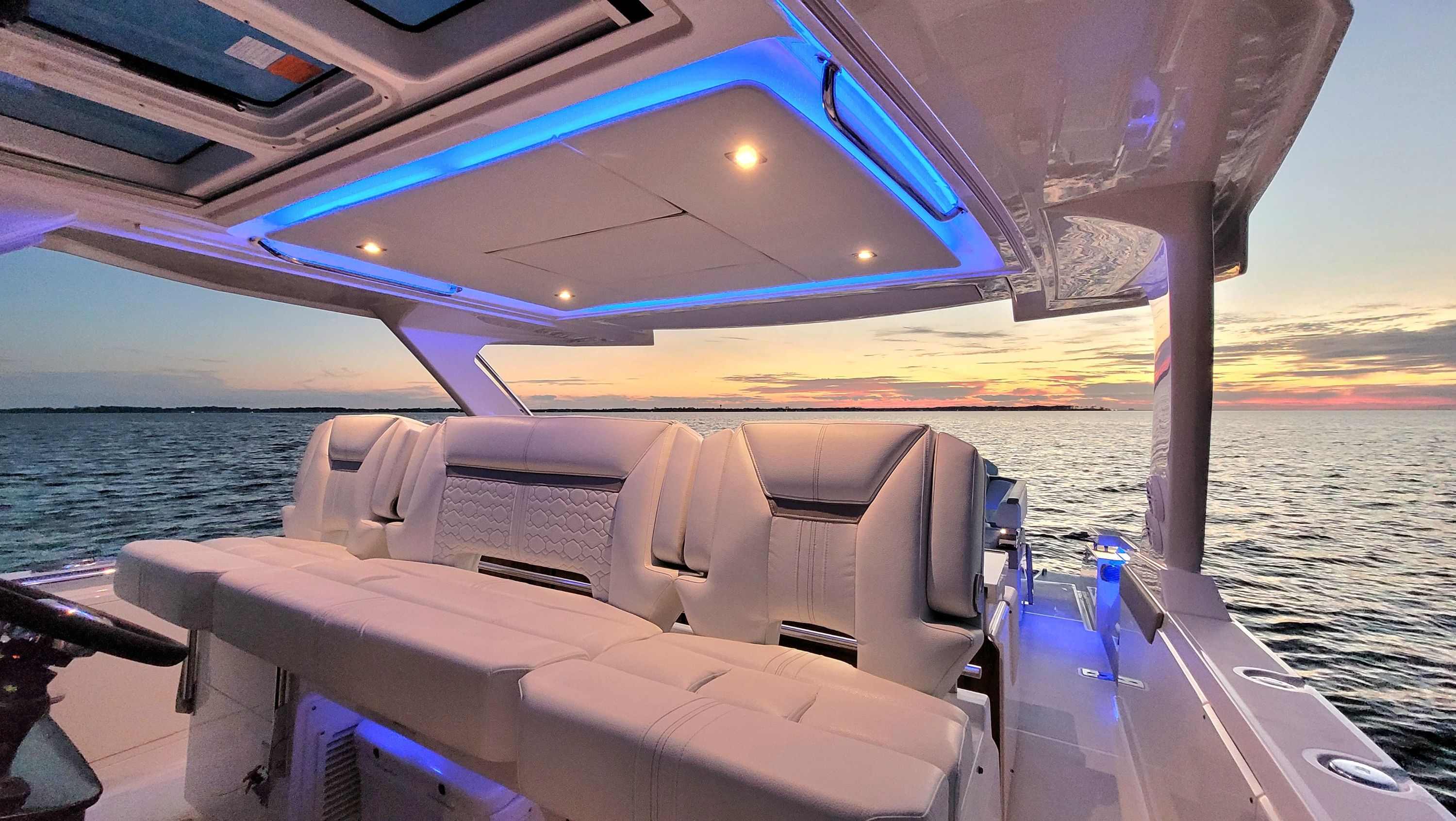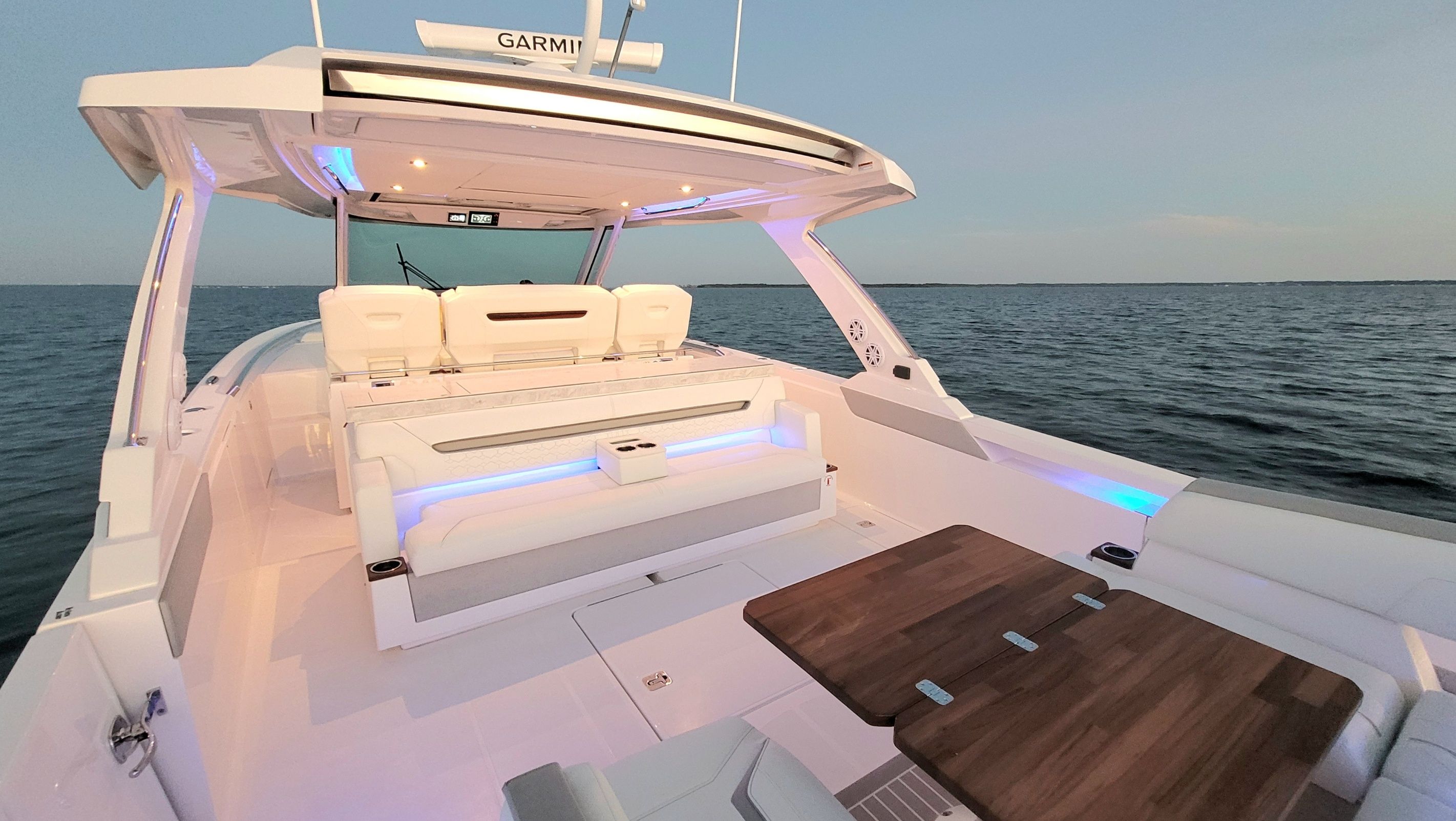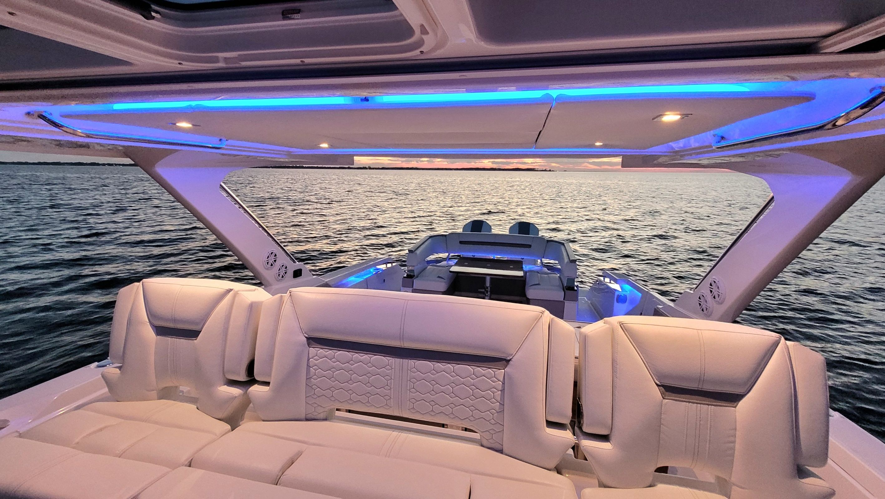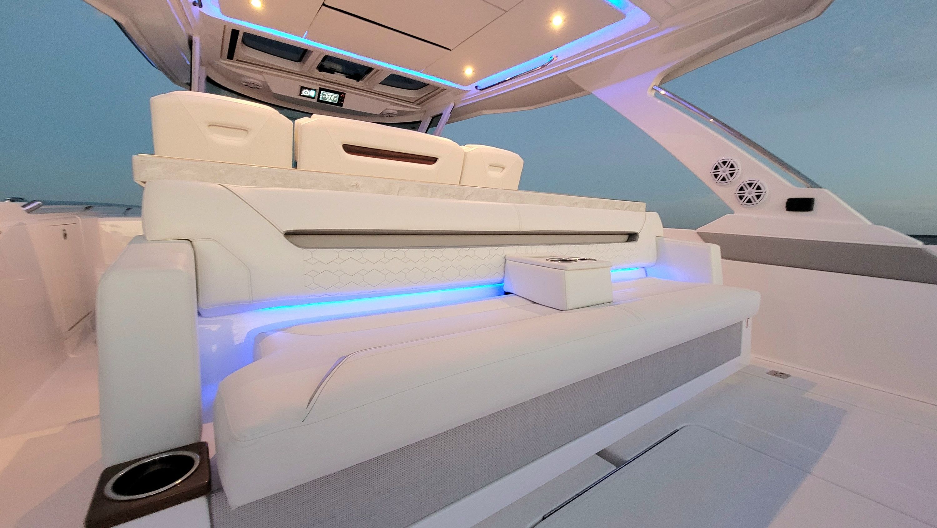 refrigeration and storage is amazing and in the evening the Shadowcaster accent lighting transforms this Yacht into