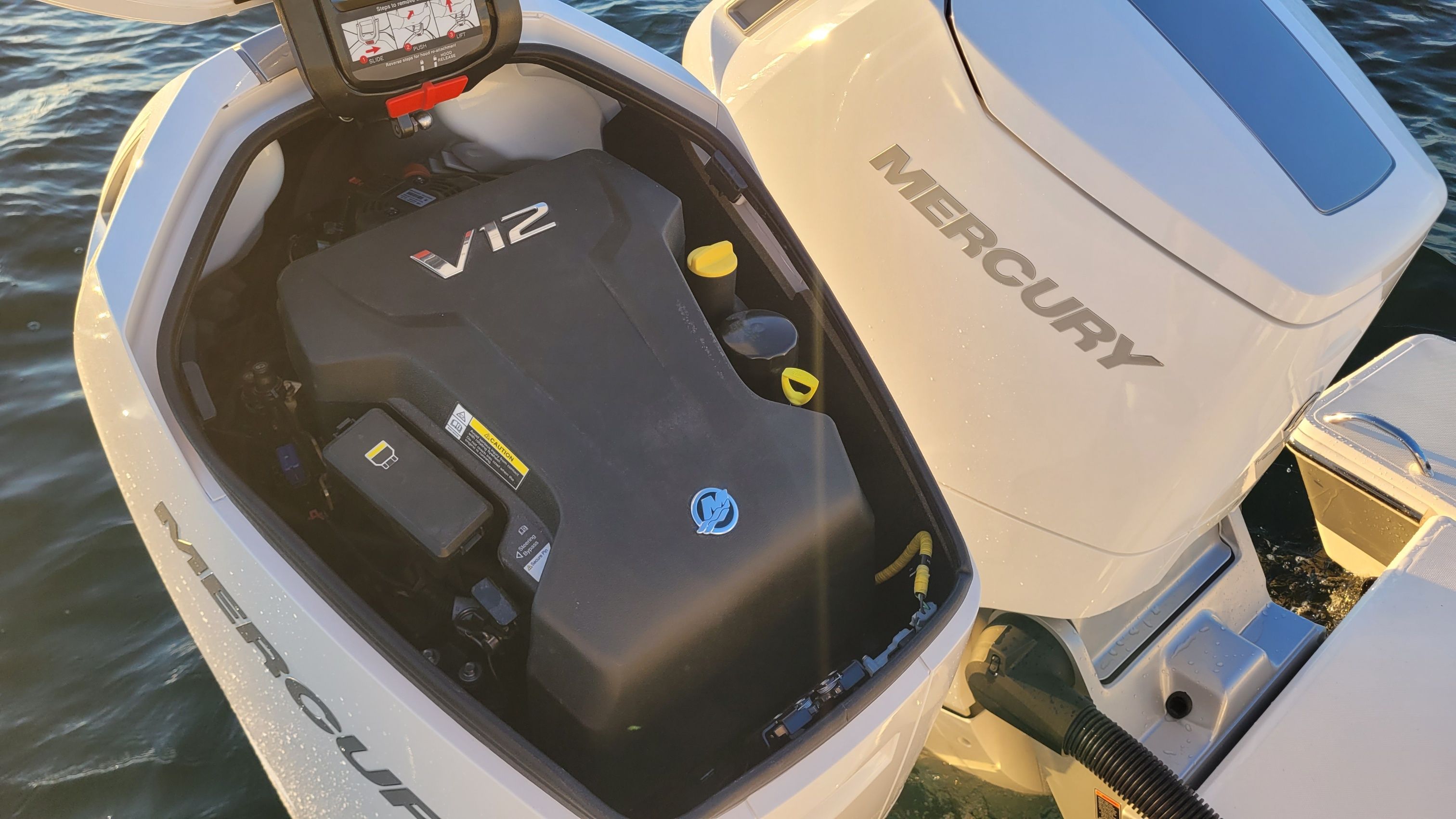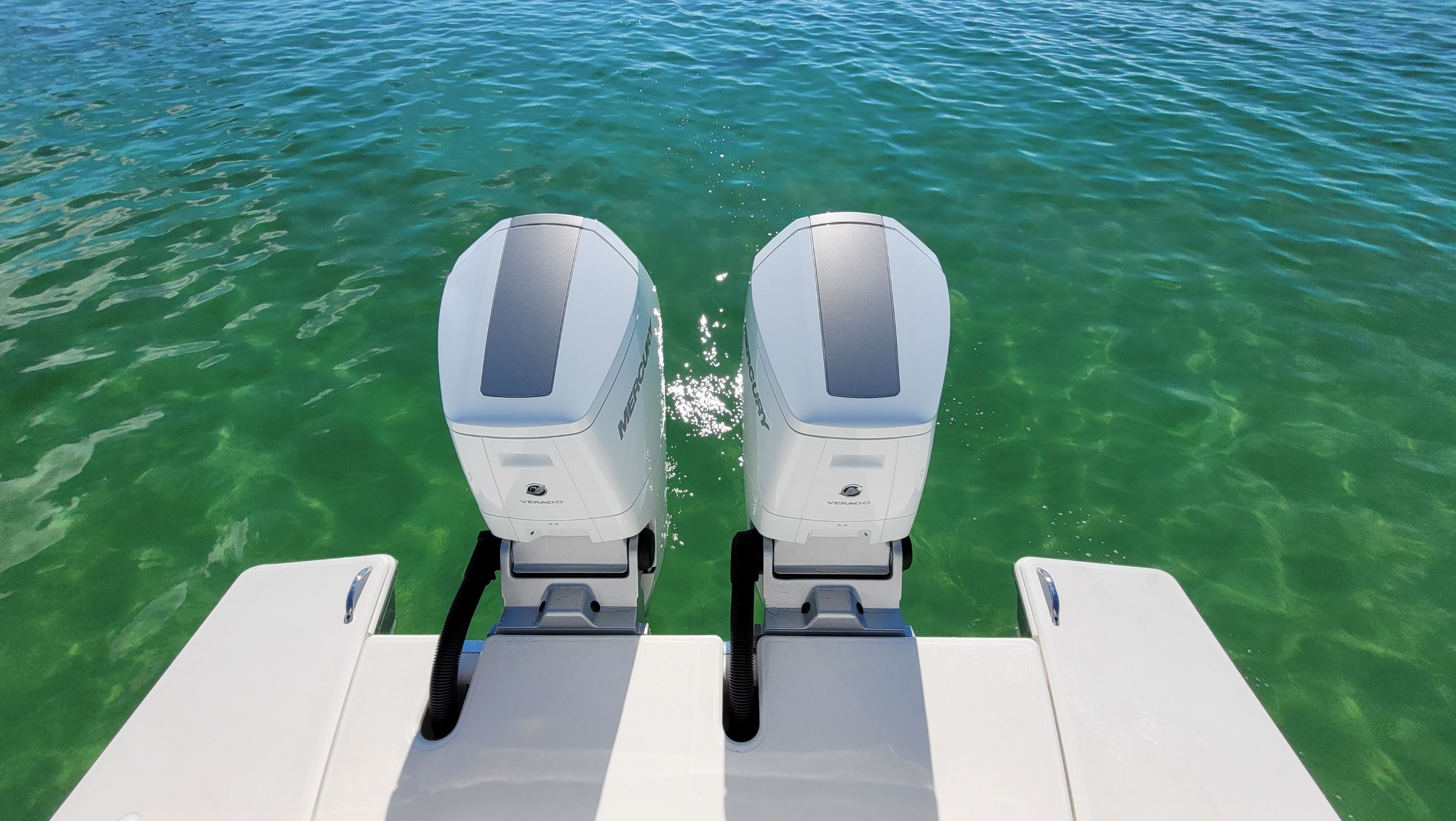 by the latest Mercury 600XL Verado VI2s that have been custom painted with the matching Silver Crystal accent.