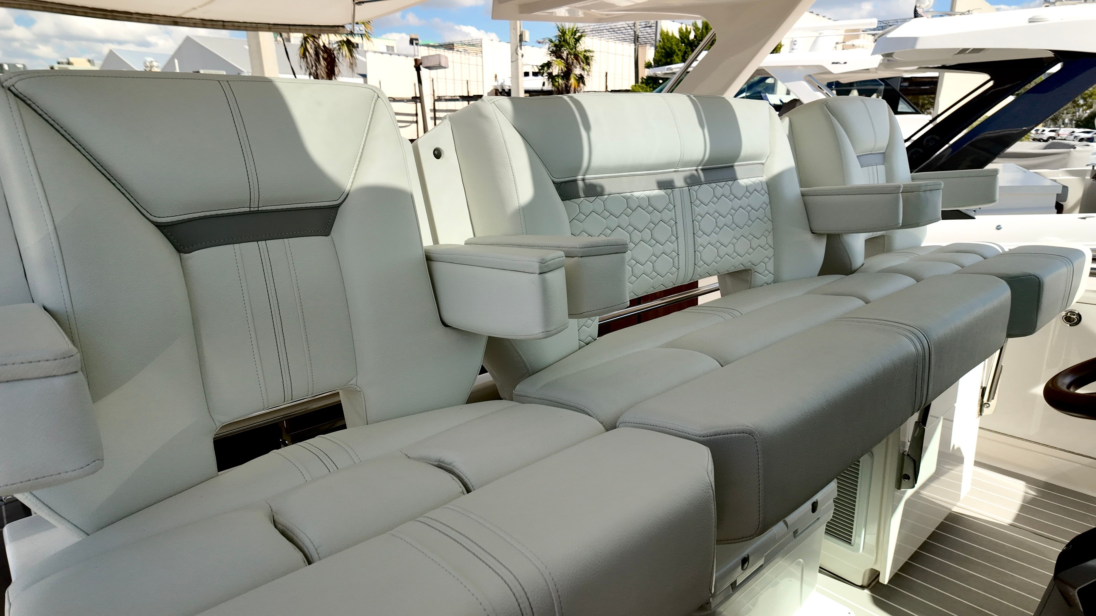 The versatility of the Tiara Yachts 43 LS shines in a variety of scenarios. For family outings, the spacious decks and comfortable seating provide the perfect setting for creating lasting memories on the water. The yacht’s fishing amenities make it a top choice for anglers seeking both performance and luxury, while the elegant design and premium features cater to those looking for a sophisticated platform for entertaining friends or hosting special occasions.Whether you are planning a weekend getaway, a sunset cruise, or a day of fishing, the Tiara Yachts 43 LS adapts to your needs with ease. Its robust construction and advanced stabilization system ensure a smooth ride, while the Mediterranean sunshade and premium upholstery create a resort-like atmosphere. The yacht’s connectivity features, including satellite radio and weather updates, keep you informed and entertained throughout your journey.