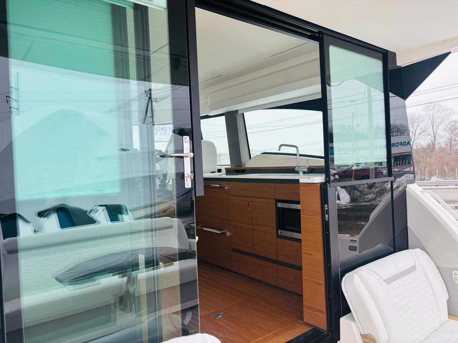 - Synthetic Teak Decking on Aft Cockpit and Swim Platform Natural with White Lines