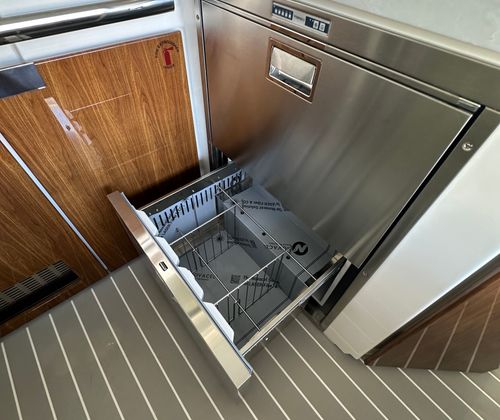 The Tiara Yachts 48 LS is equipped with a range of special features that enhance both functionality and enjoyment on the water. The triple Mercury V12 600HP JPO engines are complemented by a bow thruster integrated with the Mercury JPO system, offering precise handling in any situation. The Inverter Go Power 1500W 120VAC provides reliable onboard power, ensuring your electronic devices and appliances are always ready for use.For those who appreciate convenience, the yacht includes both raw water cockpit and anchor locker washdown systems, making it easy to keep your vessel clean after a day of adventure. The oil changer for the generator simplifies maintenance, while the Electrosea strainer helps protect your systems from marine growth, ensuring long-term reliability.Comfort and relaxation are at the forefront of the 48 LS design, with a luxurious lounger module that invites you to unwind and soak up the sun. Anglers will appreciate the rod holders in the gunnels, providing secure storage for fishing gear. The macerator waste system adds an extra layer of convenience, making waste management straightforward and hygienic.