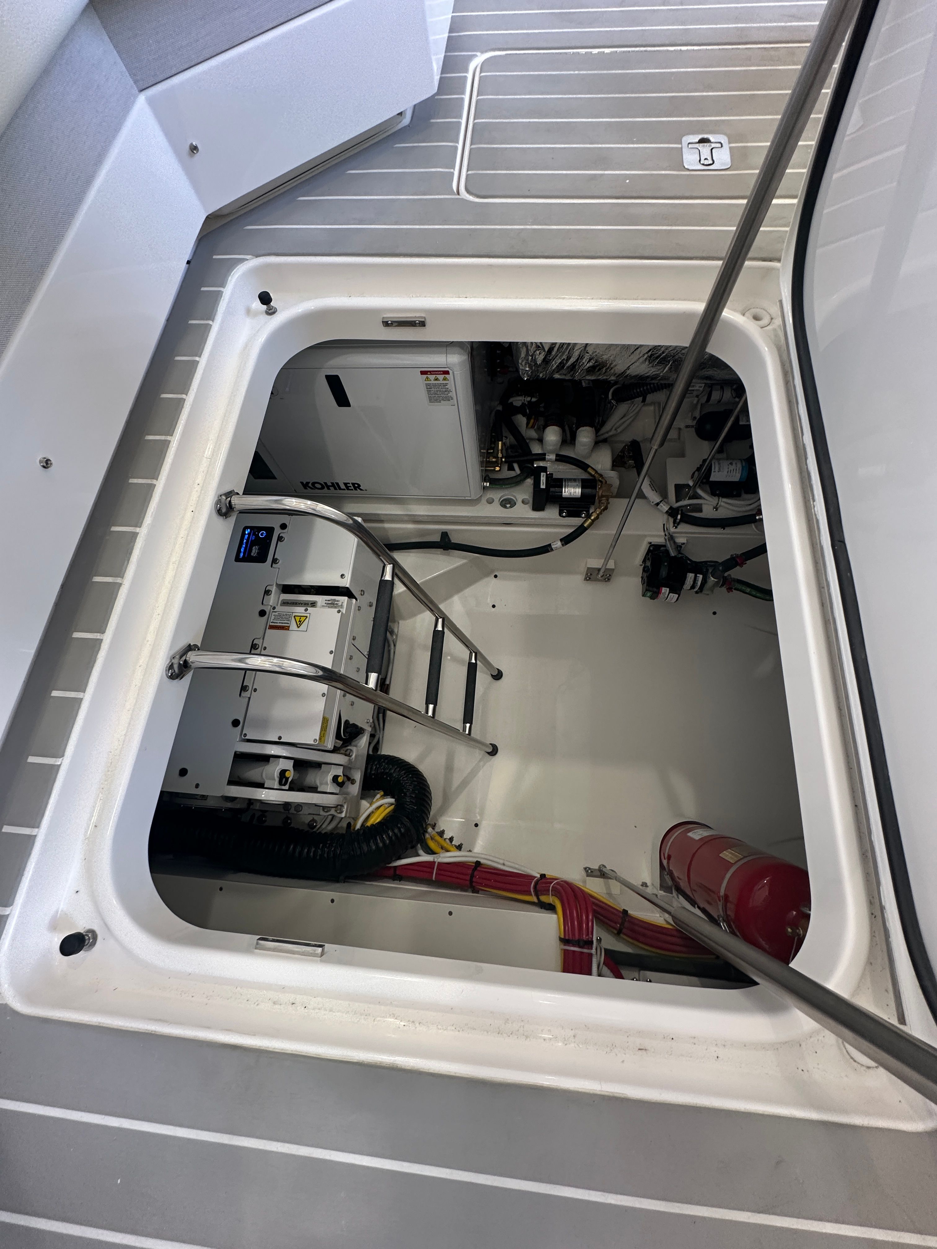 Practicality is seamlessly integrated into the design of the Tiara Yachts 48 LS. The inverter system provides dependable power for all your needs, from charging devices to running essential appliances. The raw water washdown systems in both the cockpit and anchor locker make post-trip cleanup a breeze, allowing you to spend more time enjoying the water and less time on maintenance.The oil changer for the generator and Electrosea strainer contribute to hassle-free ownership, reducing the time and effort required to keep your yacht in top condition. The inclusion of rod holders in the gunnels makes this yacht an excellent choice for fishing enthusiasts, while the macerator waste system ensures easy and sanitary waste disposal.Docking and maneuvering are simplified thanks to the integrated bow thruster and Mercury JPO system, giving you confidence in any marina or tight docking situation. The thoughtful layout and storage solutions throughout the yacht make it easy to stow gear, provisions, and personal items, keeping the deck uncluttered and ready for fun.