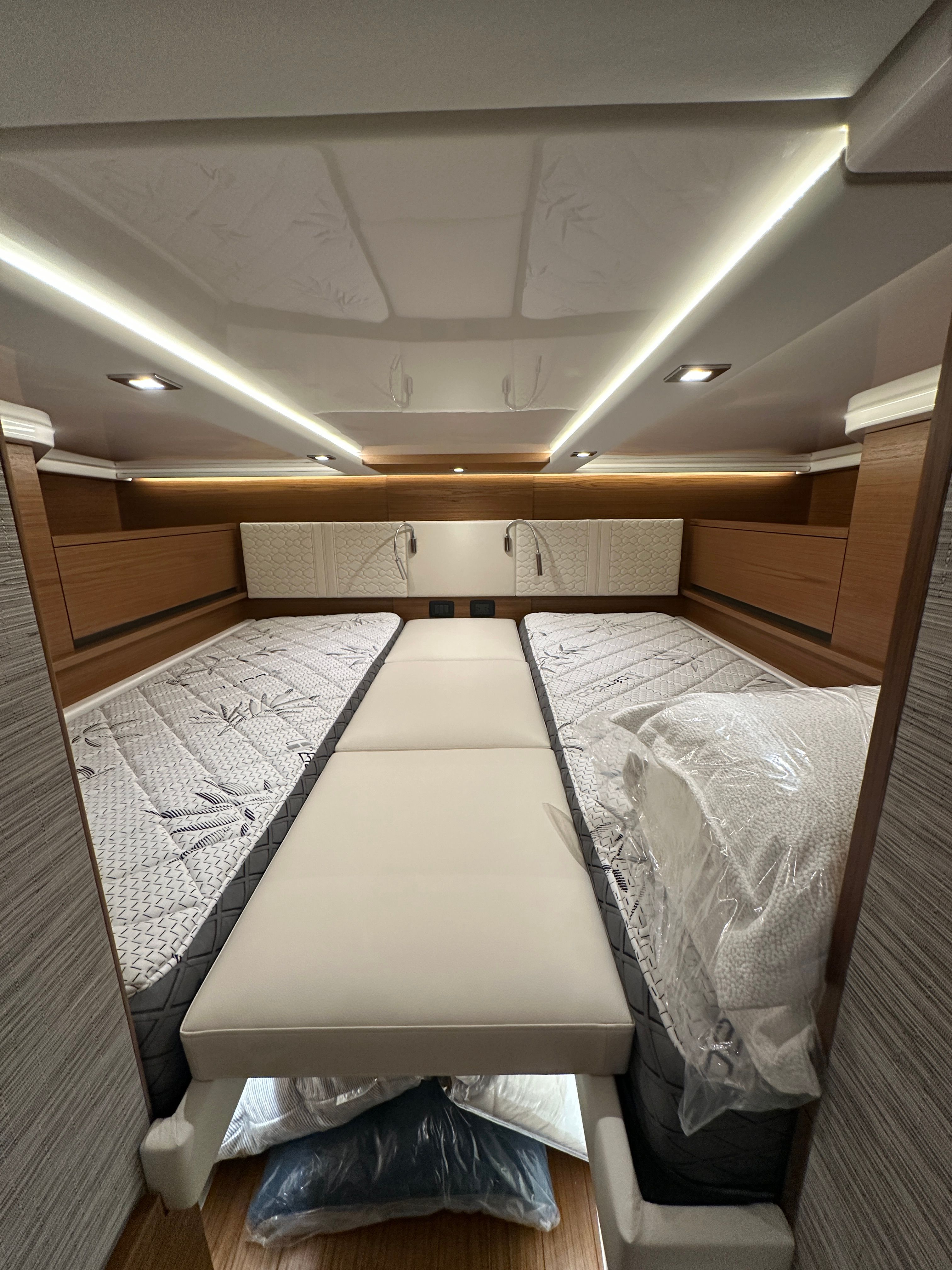 At the heart of the Tiara Yachts 48 LS are three powerful Mercury V12 600HP engines, delivering a combined 1800 horsepower. This impressive powertrain ensures exhilarating performance, whether you are cruising at high speeds or navigating tight marinas. The integration of the Mercury JPO (Joystick Piloting for Outboards) system, paired with a bow thruster, provides unmatched maneuverability and control, making docking and close-quarters handling effortless. The advanced engine setup not only offers thrilling acceleration but also ensures smooth and efficient operation, allowing you to enjoy longer journeys with confidence.