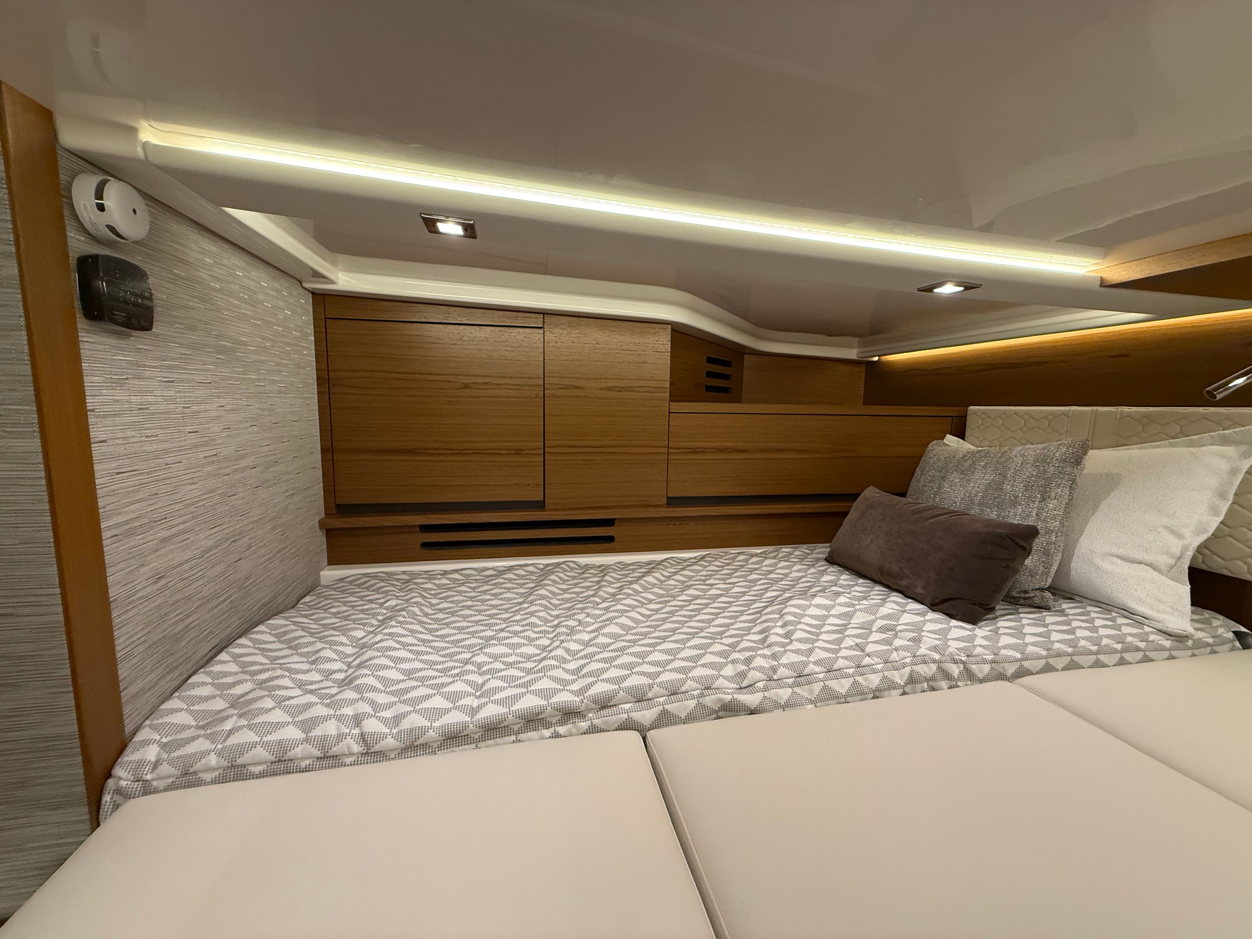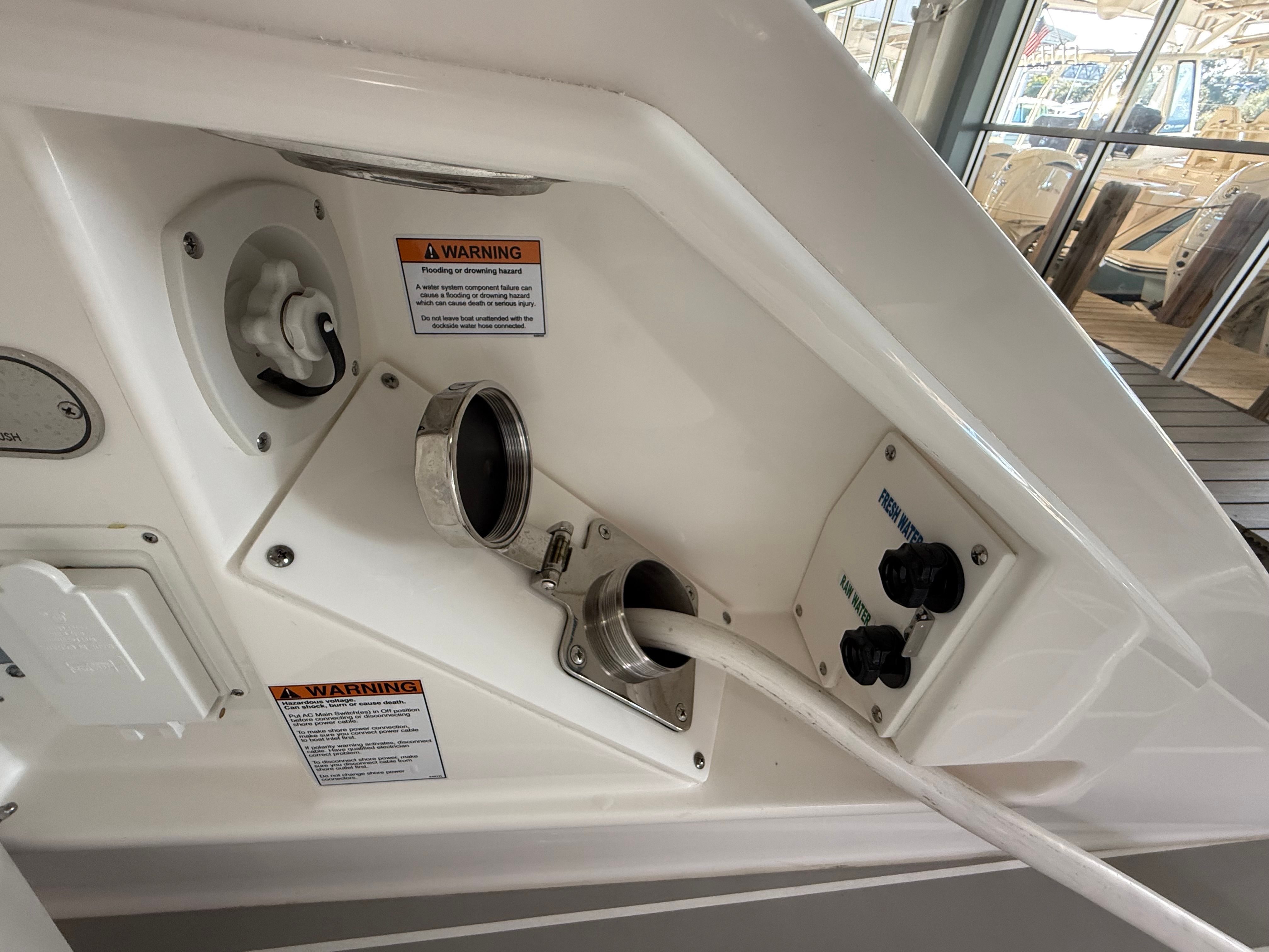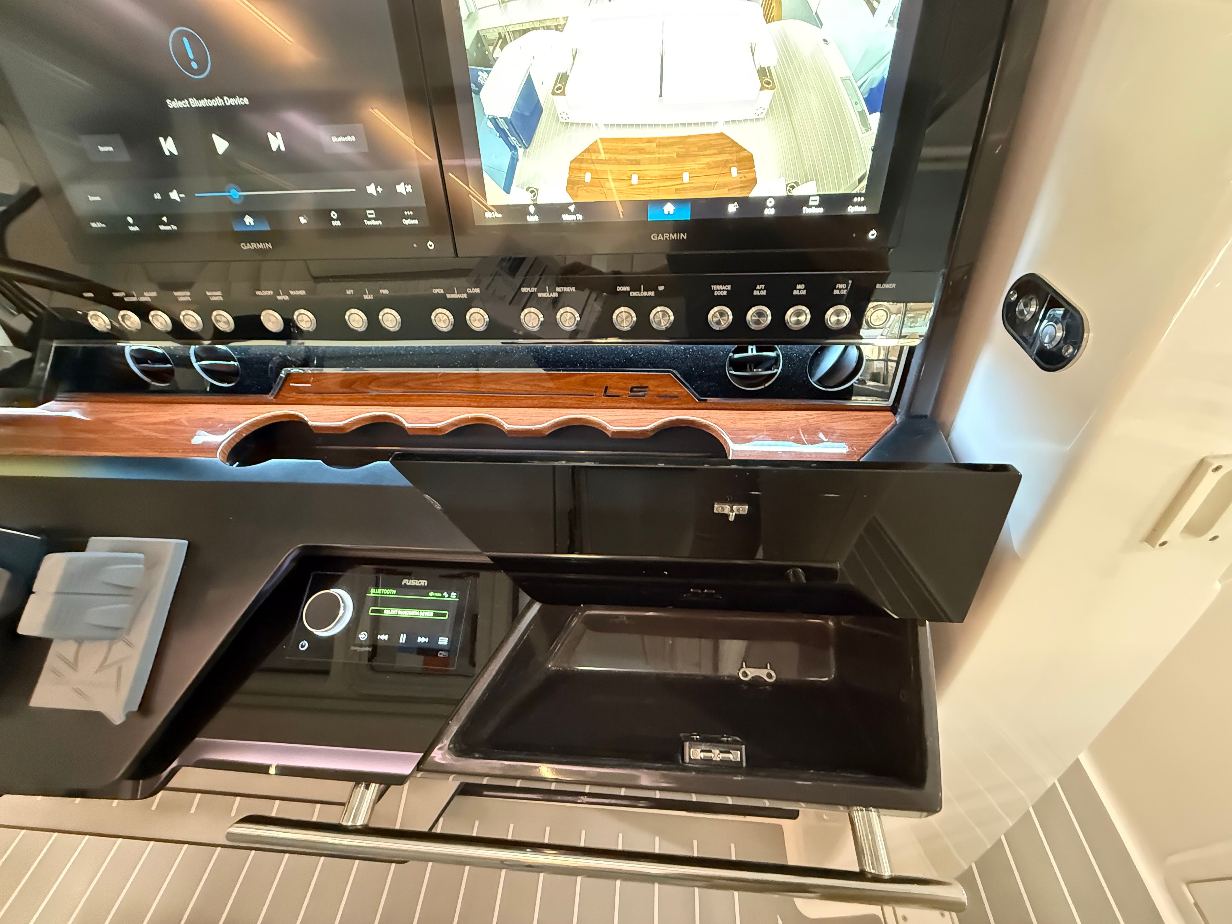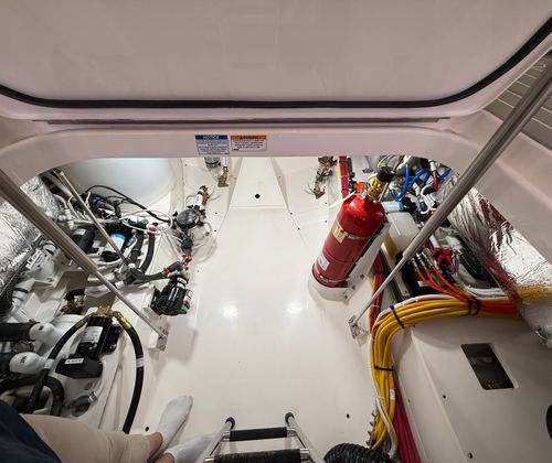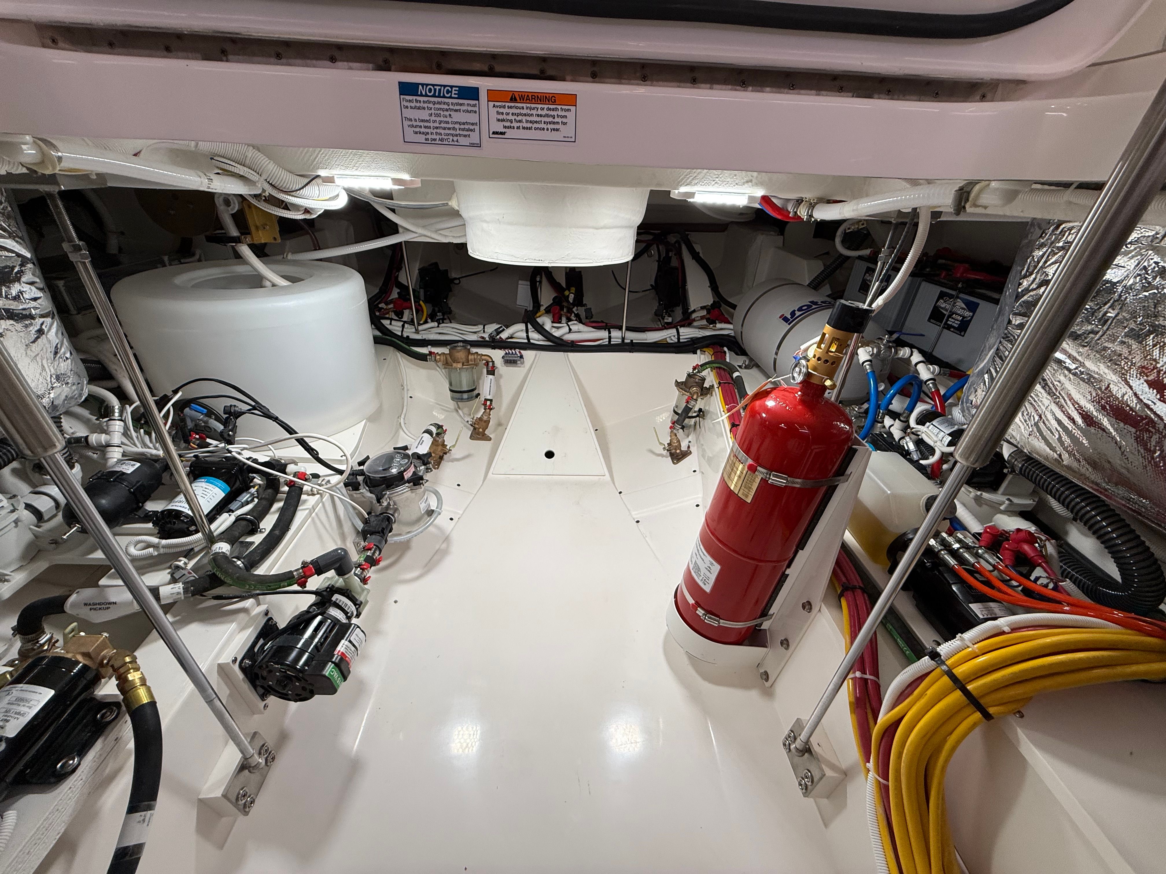The Tiara Yachts 48 LS is as practical as it is luxurious. The integrated washdown systems make it easy to keep the yacht clean after fishing, swimming, or a day at the beach. The oil changer for the generator streamlines routine maintenance, saving you time and effort. The Electrosea strainer protects your investment by reducing the risk of marine growth in your systems, while the macerator waste system ensures hassle-free waste management.Docking and maneuvering are simplified thanks to the bow thruster with Mercury JPO, making this yacht accessible even for those new to boating. The gunwale rod holders provide secure storage for fishing rods, keeping your gear organized and ready for action. With ample storage throughout the yacht, you can bring along everything you need for extended trips or spontaneous adventures.