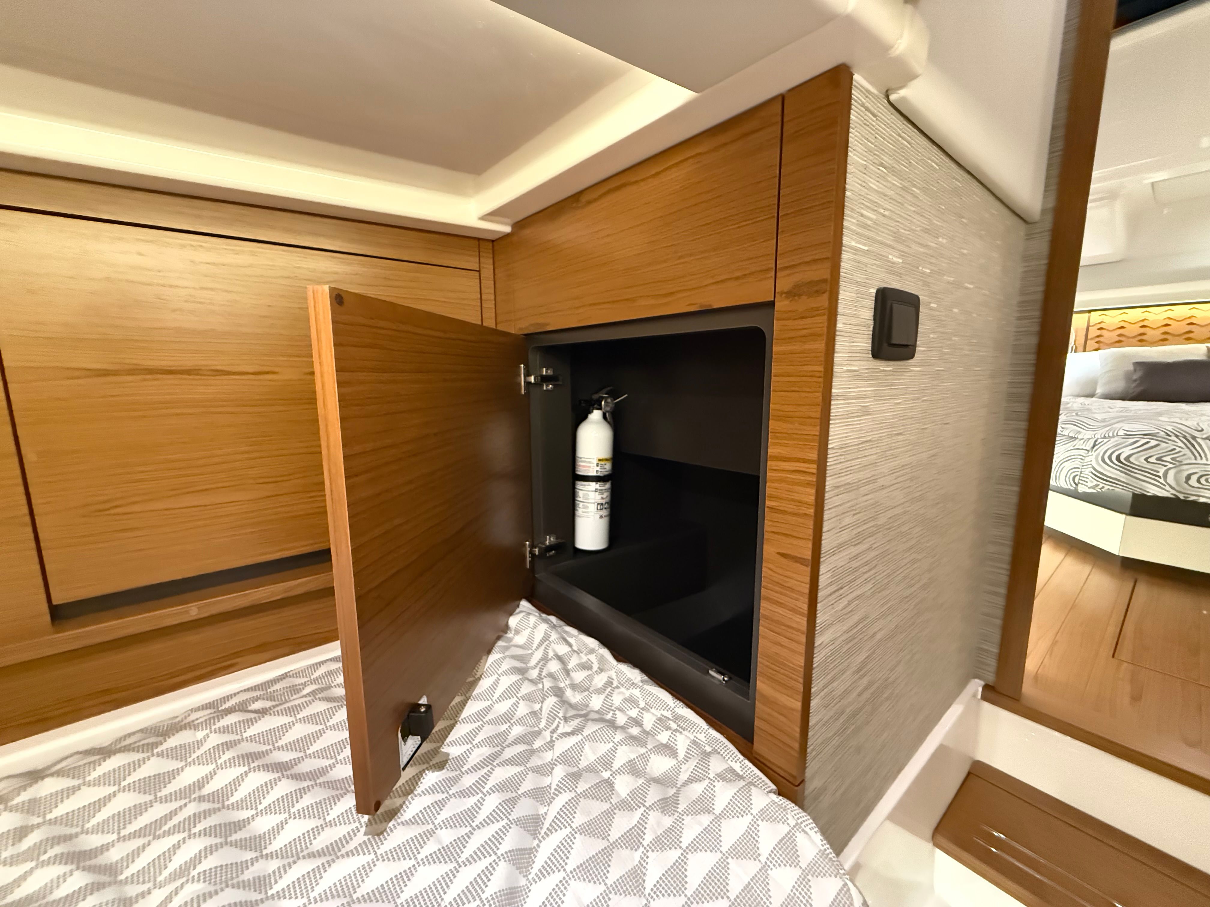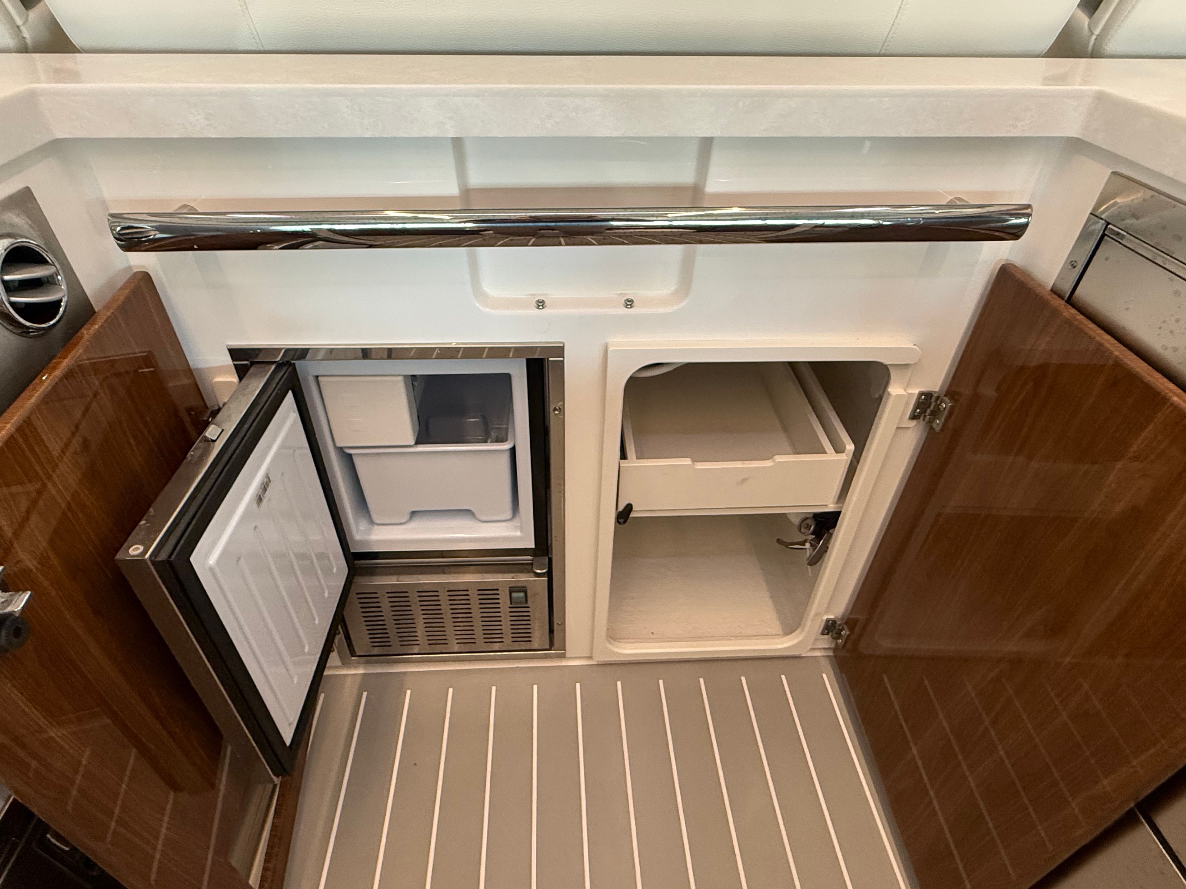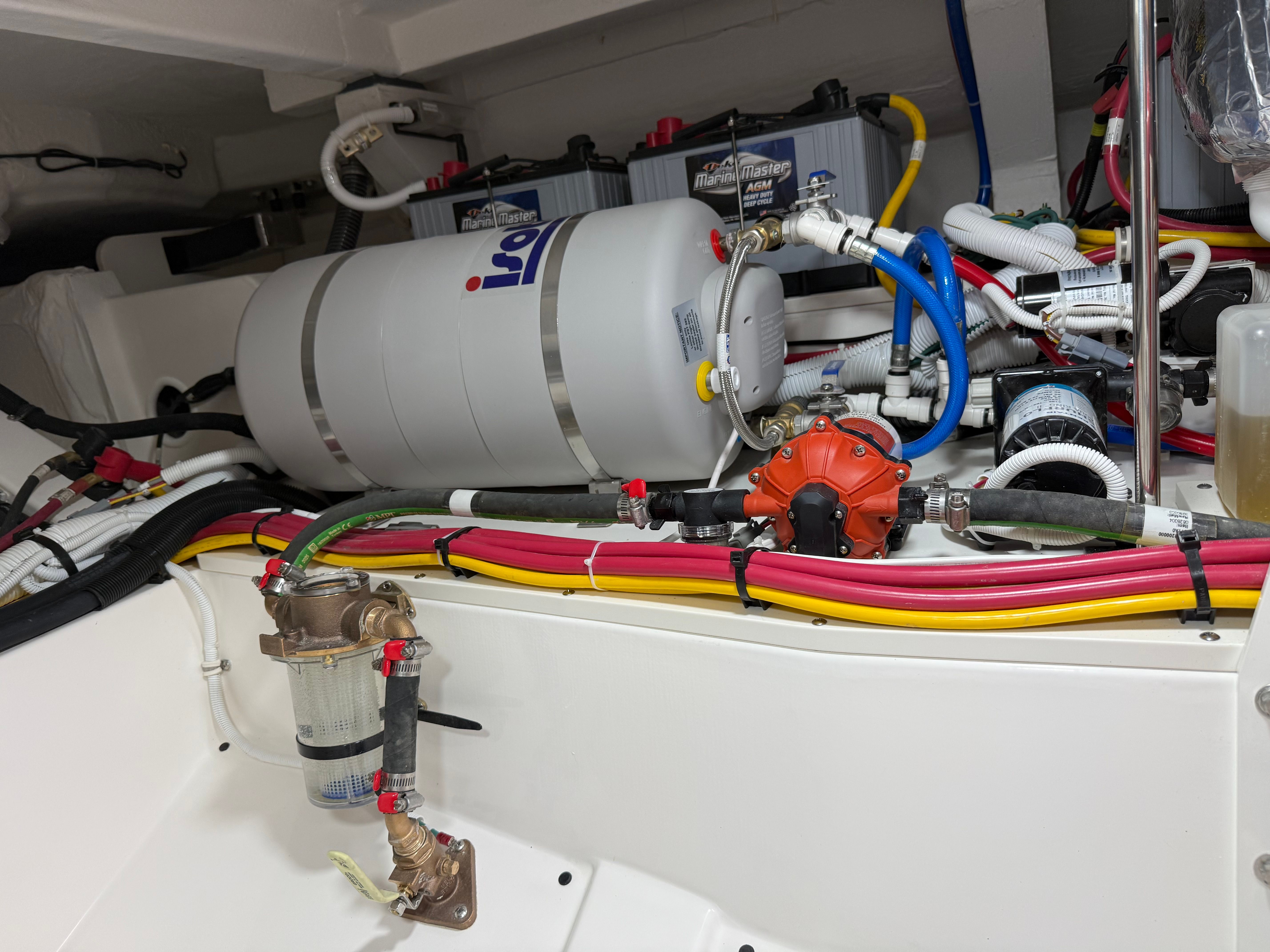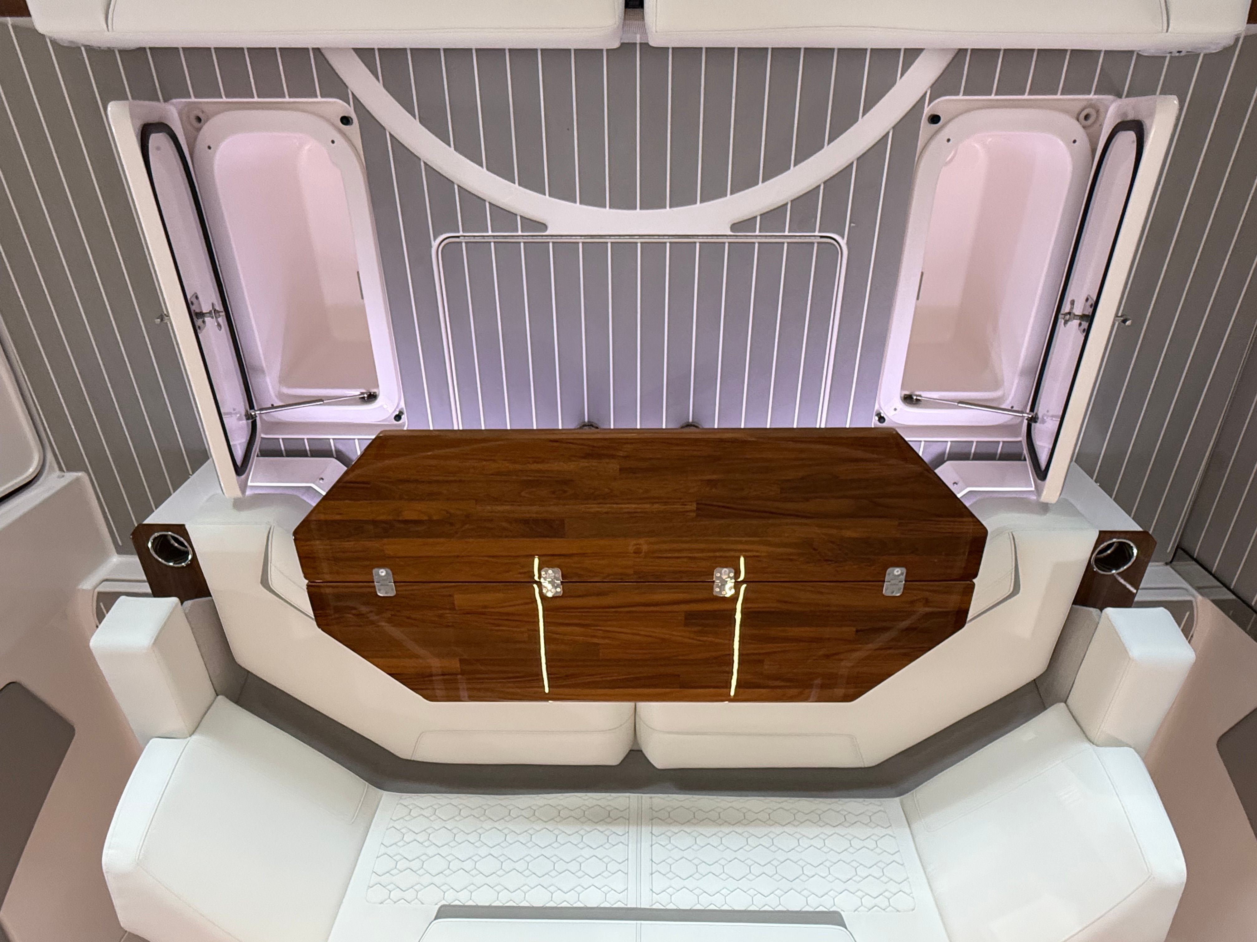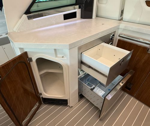 The Tiara Yachts 48 LS is as practical as it is luxurious. The integrated washdown systems make it easy to keep the yacht clean after fishing, swimming, or a day at the beach. The oil changer for the generator streamlines routine maintenance, saving you time and effort. The Electrosea strainer protects your investment by reducing the risk of marine growth in your systems, while the macerator waste system ensures hassle-free waste management.Docking and maneuvering are simplified thanks to the bow thruster with Mercury JPO, making this yacht accessible even for those new to boating. The gunwale rod holders provide secure storage for fishing rods, keeping your gear organized and ready for action. With ample storage throughout the yacht, you can bring along everything you need for extended trips or spontaneous adventures.