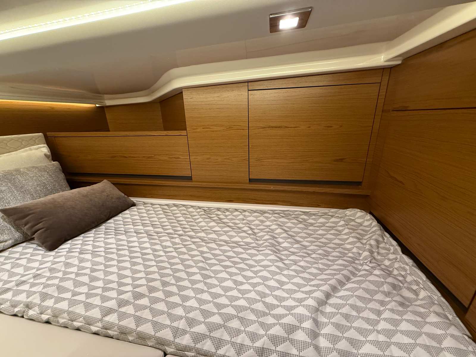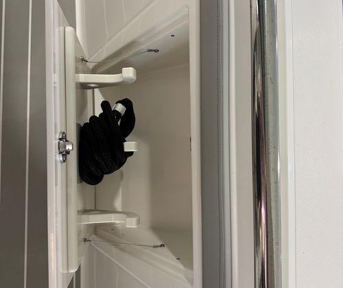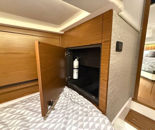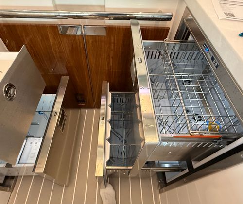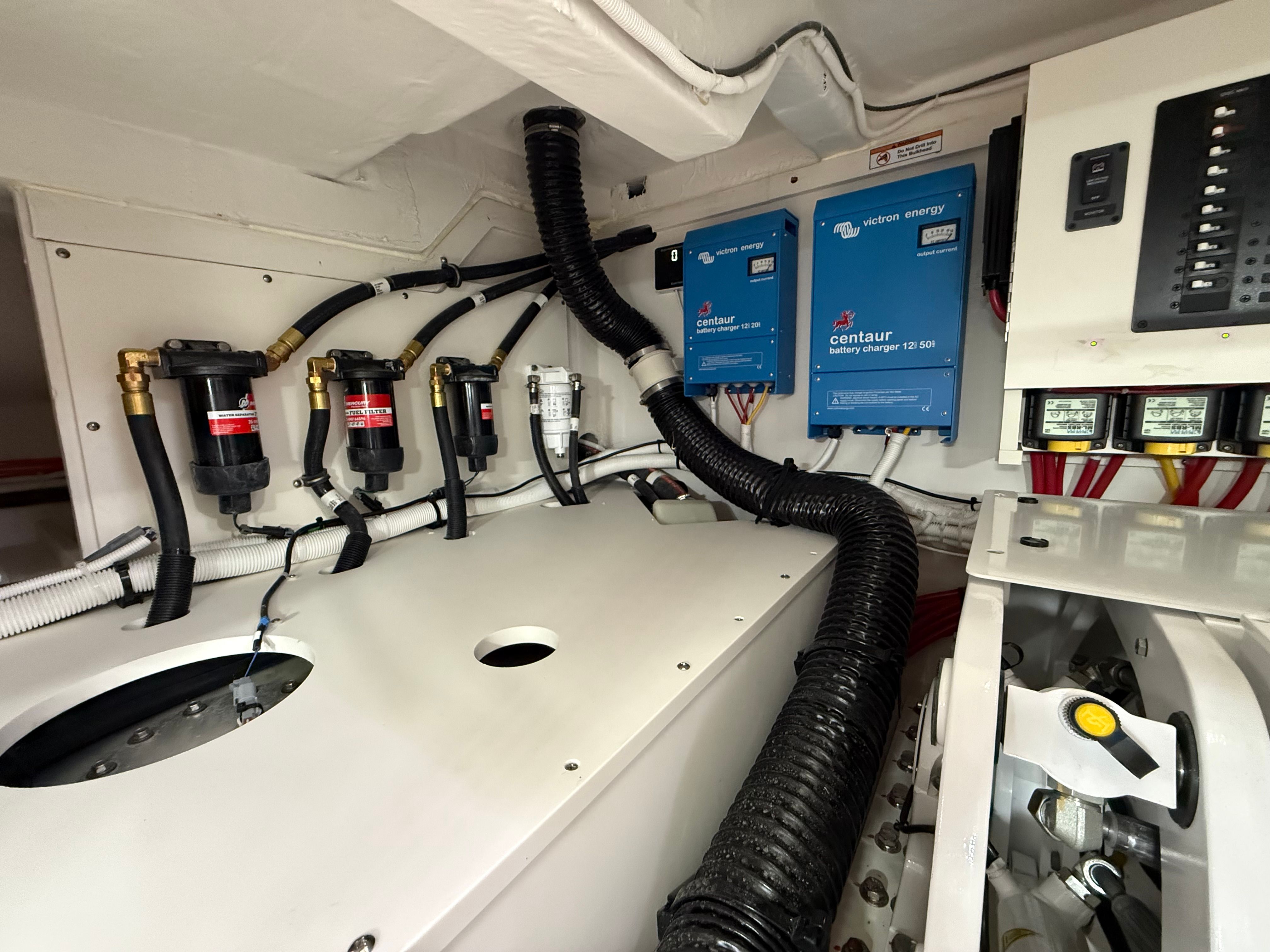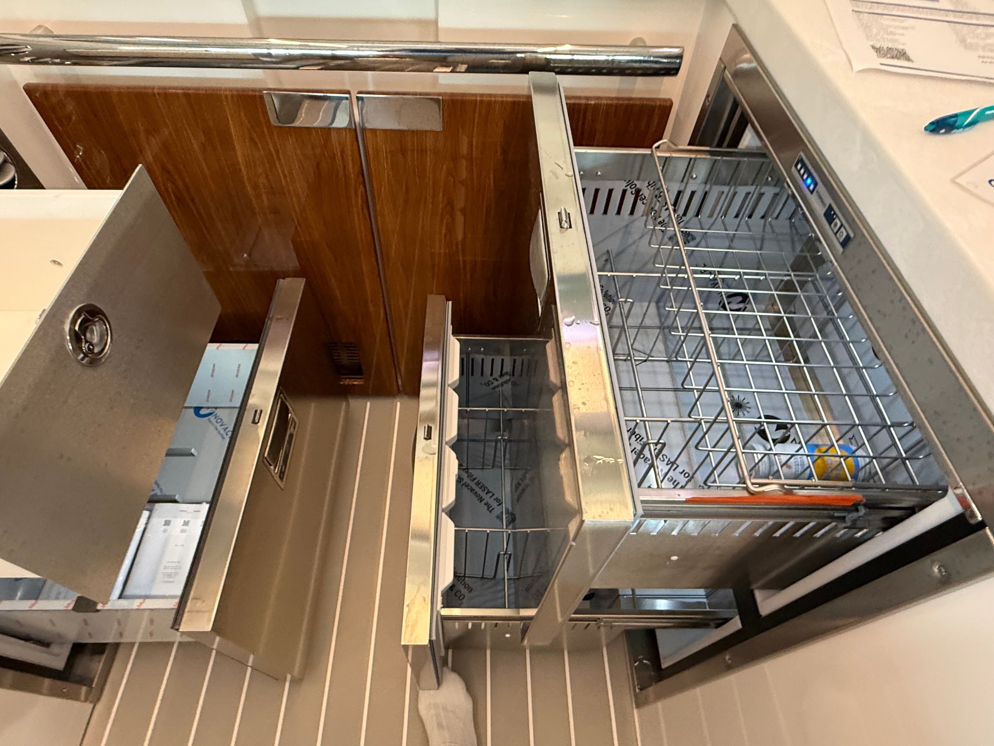The Tiara Yachts 48 LS is as practical as it is luxurious. The integrated washdown systems make it easy to keep the yacht clean after fishing, swimming, or a day at the beach. The oil changer for the generator streamlines routine maintenance, saving you time and effort. The Electrosea strainer protects your investment by reducing the risk of marine growth in your systems, while the macerator waste system ensures hassle-free waste management.Docking and maneuvering are simplified thanks to the bow thruster with Mercury JPO, making this yacht accessible even for those new to boating. The gunwale rod holders provide secure storage for fishing rods, keeping your gear organized and ready for action. With ample storage throughout the yacht, you can bring along everything you need for extended trips or spontaneous adventures.