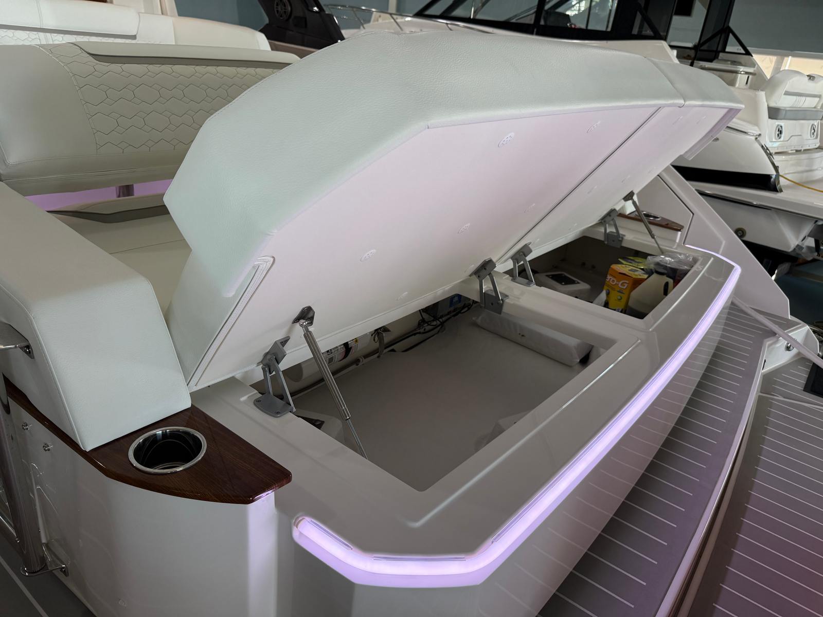 The 2026 Tiara Yachts 48 LS is loaded with premium features that enhance both functionality and comfort. The triple Mercury 600 V12 engines not only provide impressive power but also ensure efficient fuel consumption and quiet operation. The integrated bow thruster with Mercury JPO makes docking and close-quarters maneuvering a breeze, giving you complete control at your fingertips.For those who love to keep their yacht in pristine condition, the washdown systems in both the raw water cockpit and anchor locker make cleaning up after a day on the water quick and easy. The oil changer for the generator simplifies maintenance, while the Electrosea strainer helps protect your systems from marine growth, ensuring long-lasting reliability.The lounge module offers a luxurious space for relaxation, perfect for sunbathing, socializing, or simply enjoying the view. Gunwale rod holders provide convenient storage for fishing gear, making this yacht an excellent choice for anglers. The macerator waste system adds convenience and sanitation, while the Seakeeper SK6 gyro stabilizer ensures a smooth and comfortable ride, even in choppy conditions.