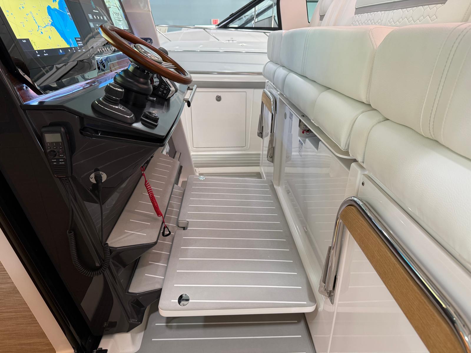 At the heart of the Tiara Yachts 48 LS are three powerful Mercury 600 V12 engines, delivering a combined 1800 horsepower. This impressive propulsion system ensures exhilarating speed, smooth acceleration, and reliable performance, making every journey on the water both thrilling and effortless. The integration of a bow thruster with Mercury JPO (Joystick Piloting for Outboards) provides unmatched maneuverability, allowing you to dock and navigate tight spaces with confidence and ease. Whether you are cruising along the coastline or venturing to new destinations, the 48 LS offers a dynamic and responsive ride that will satisfy even the most discerning boating enthusiasts.