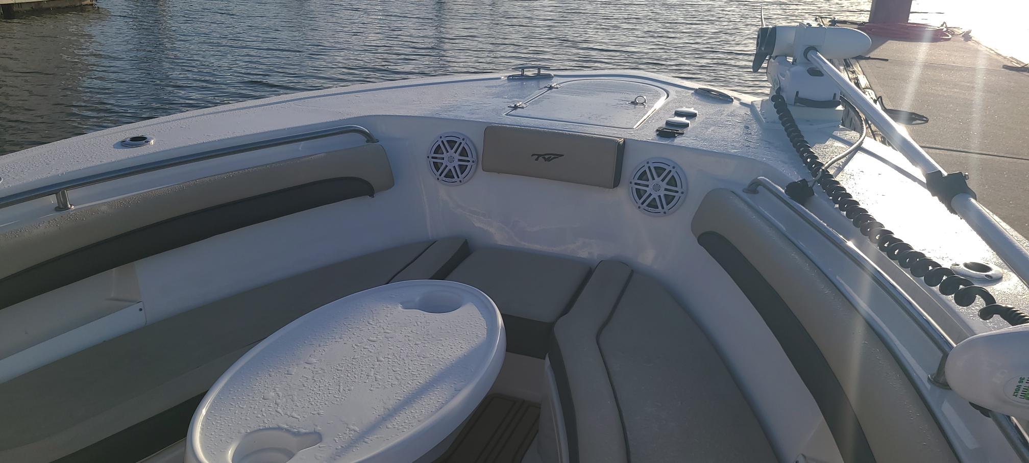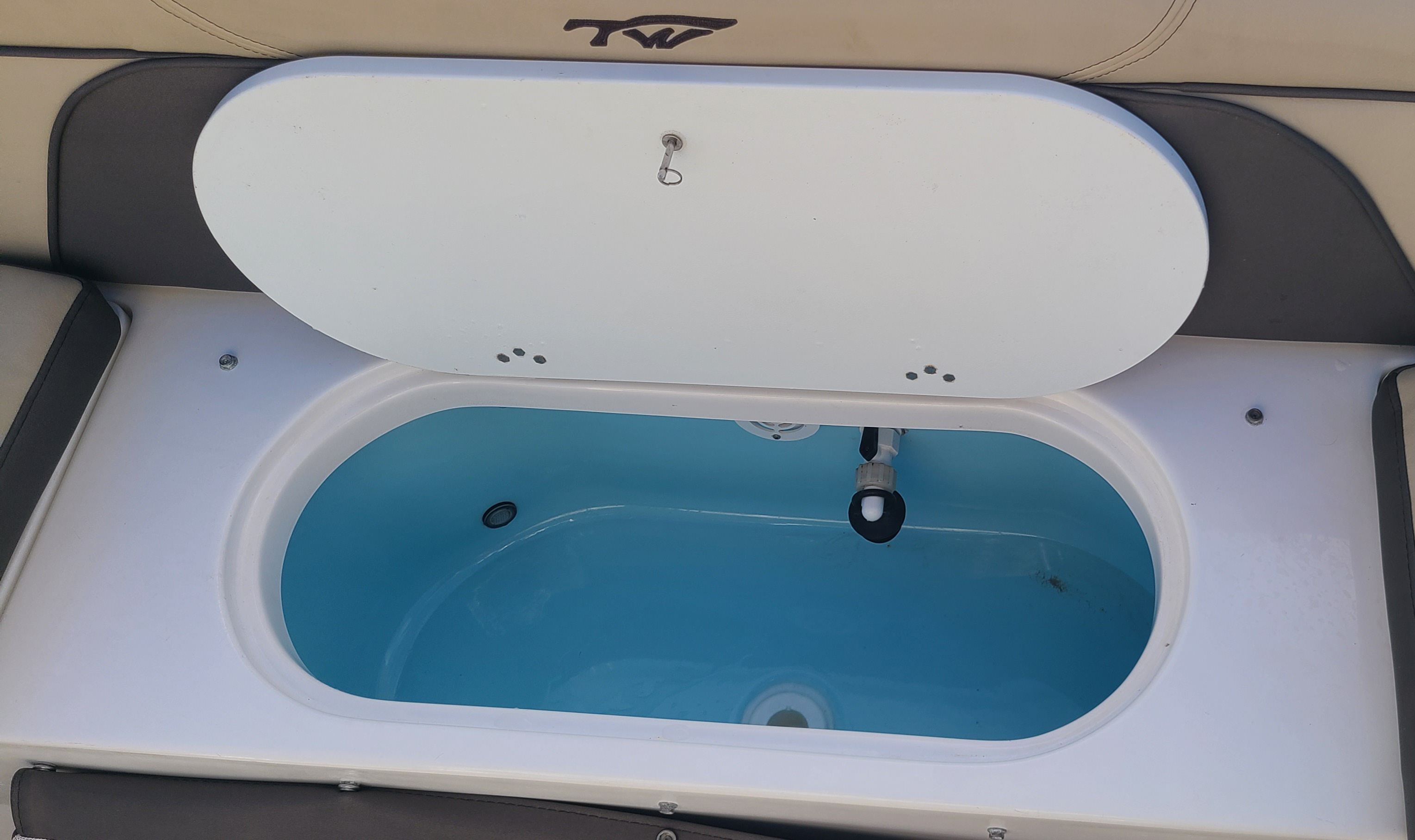 Storage: Comes with 33-gallon fiberglass boxes for port and starboard, a 19-gallon aerated live well, and a raw water wash down for easy cleaning.