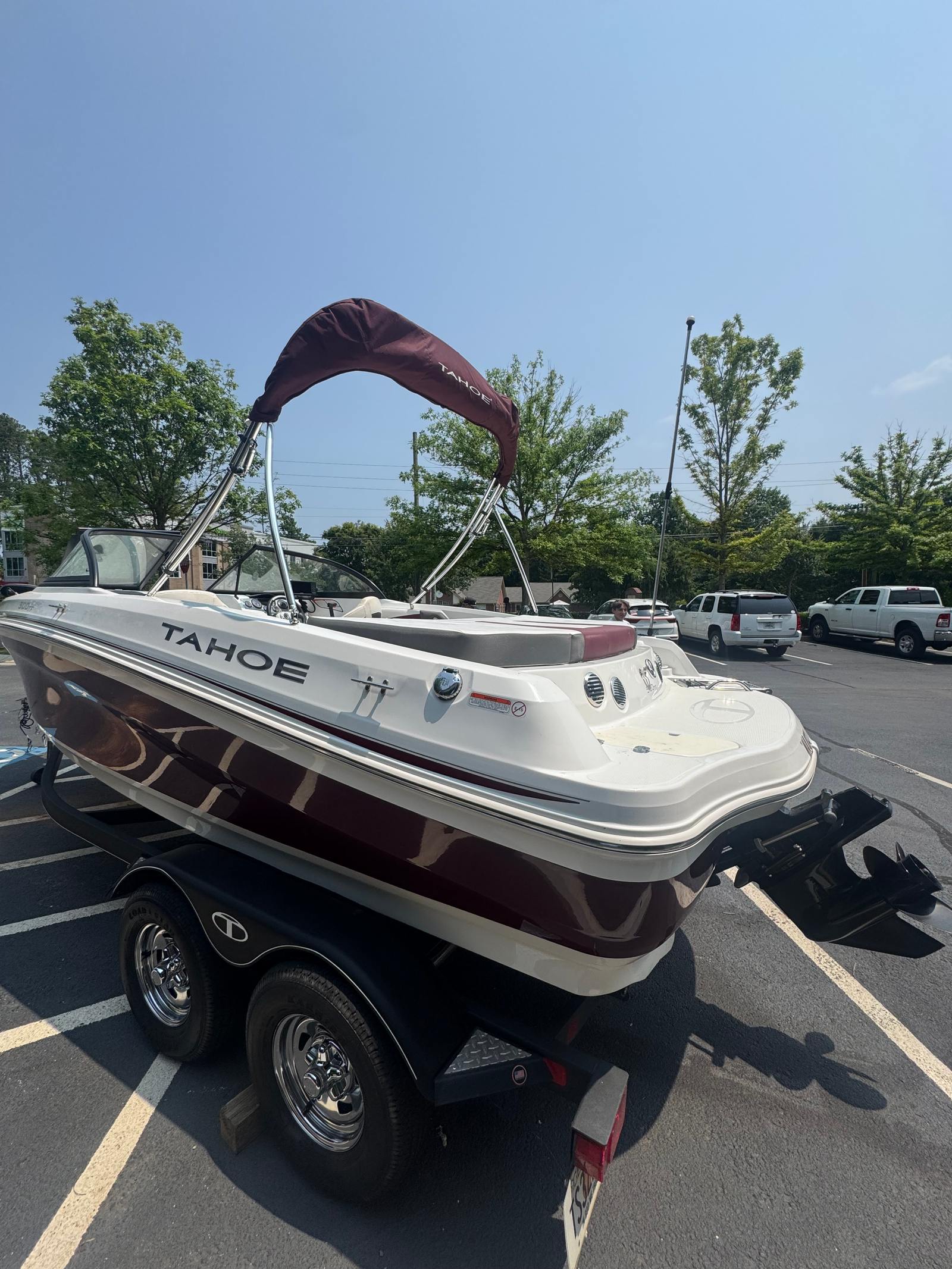 Well-maintained and water-ready 2018 Tahoe 500 TF powered by a Mercury 4.5L 200HP sterndrive. Excellent condition inside and out – great for fishing, cruising, and family fun. Features include bow and aft fishing seats, trolling motor, livewell, swim platform with ladder, and comfortable seating throughout.