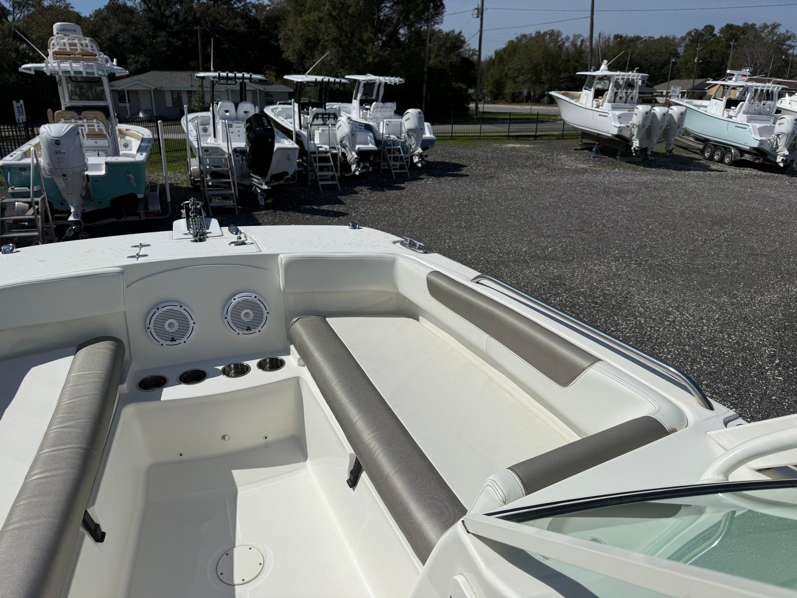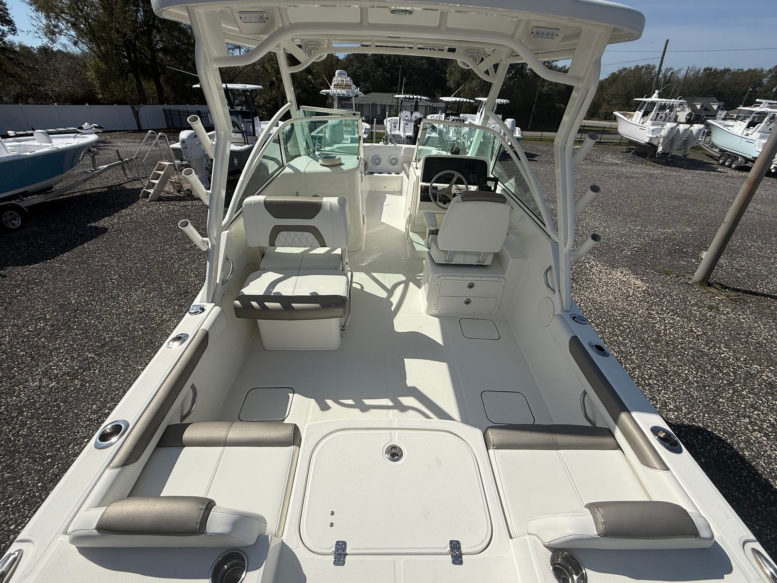 This 2023 World Cat 230 DC comes loaded with features that enhance both comfort and functionality. The dual console layout provides ample seating and protection from the elements, making it perfect for all-day excursions. The spacious cockpit is designed for socializing, with comfortable seating arrangements that invite relaxation and conversation. The helm is equipped with intuitive controls, ensuring that captains of all experience levels can navigate with confidence.The World Cat 230 DC’s 23-foot length provides generous deck space, allowing for easy movement and plenty of room for gear. The innovative catamaran hull not only improves ride quality but also increases usable space on board, making this World Cat boat for sale a practical choice for families and groups. Storage compartments are thoughtfully integrated throughout the boat, keeping your essentials organized and out of the way.