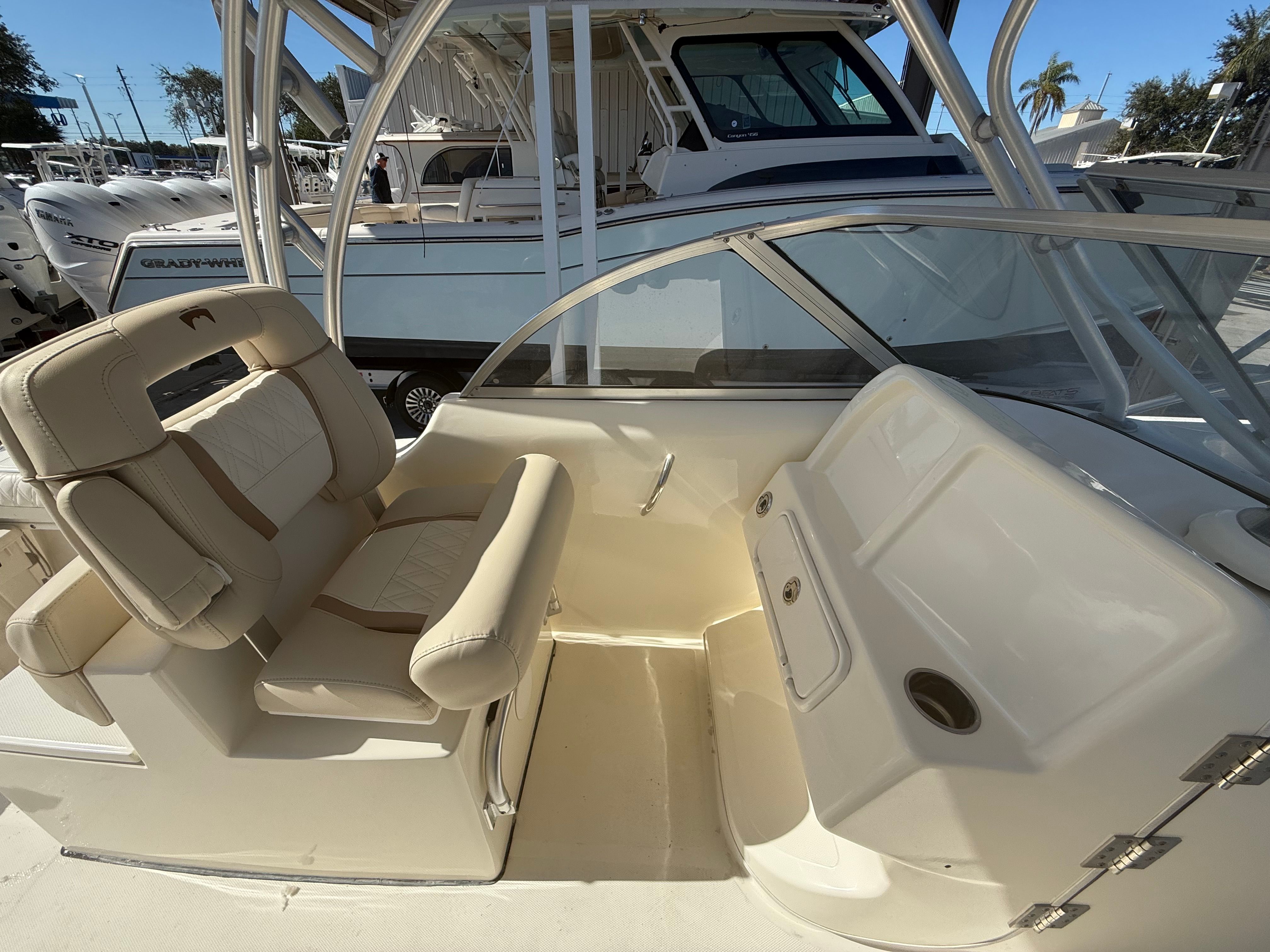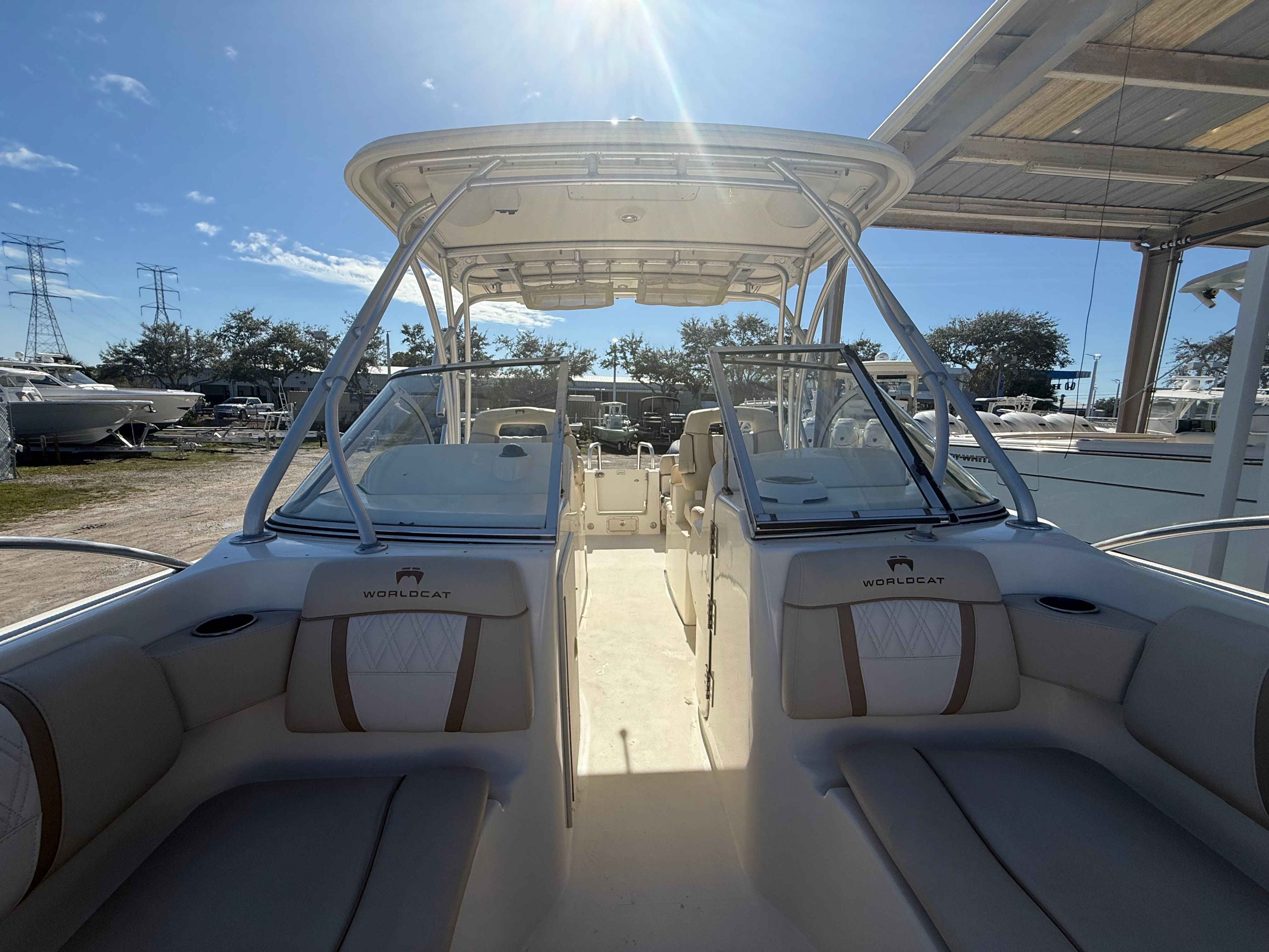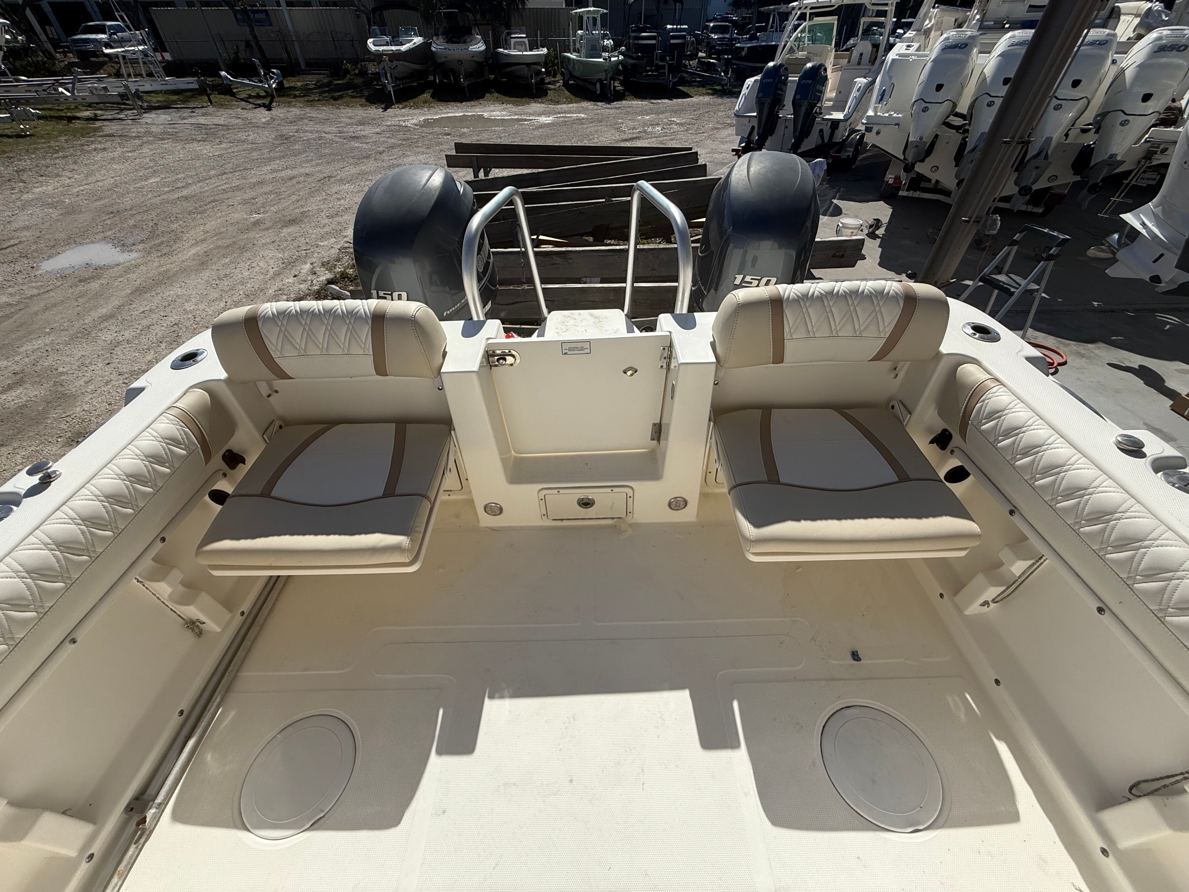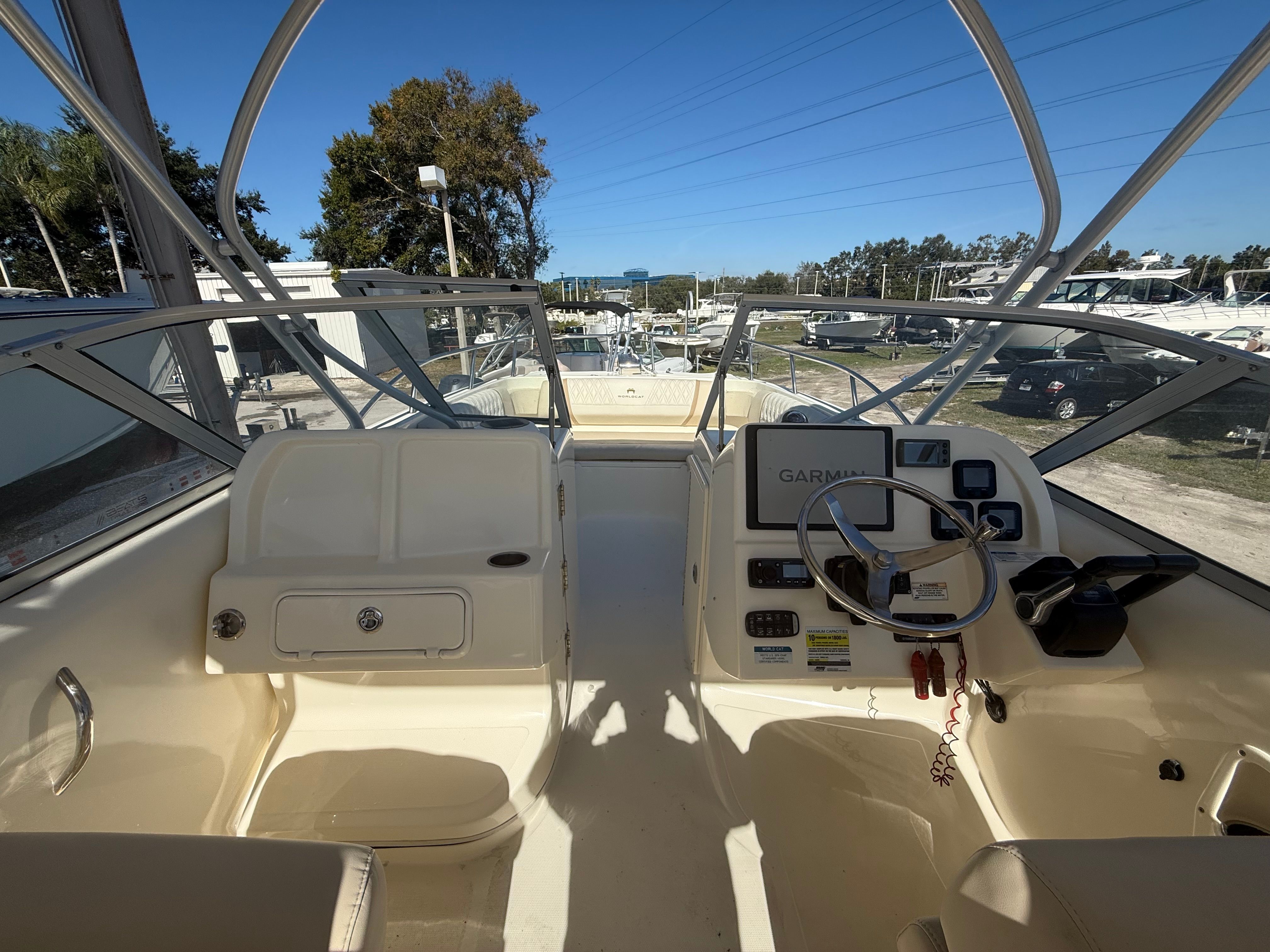 This World Cat boat for sale is as practical as it is enjoyable. The ample storage options make it easy to stow fishing gear, water toys, and personal belongings, keeping the deck clutter-free and organized. The Dual Console configuration simplifies docking and boarding, while the efficient twin engines contribute to fuel savings and reduced operating costs. Whether you are navigating busy marinas or anchoring in secluded coves, the 255 DC is designed to make every aspect of boat ownership more convenient and enjoyable.