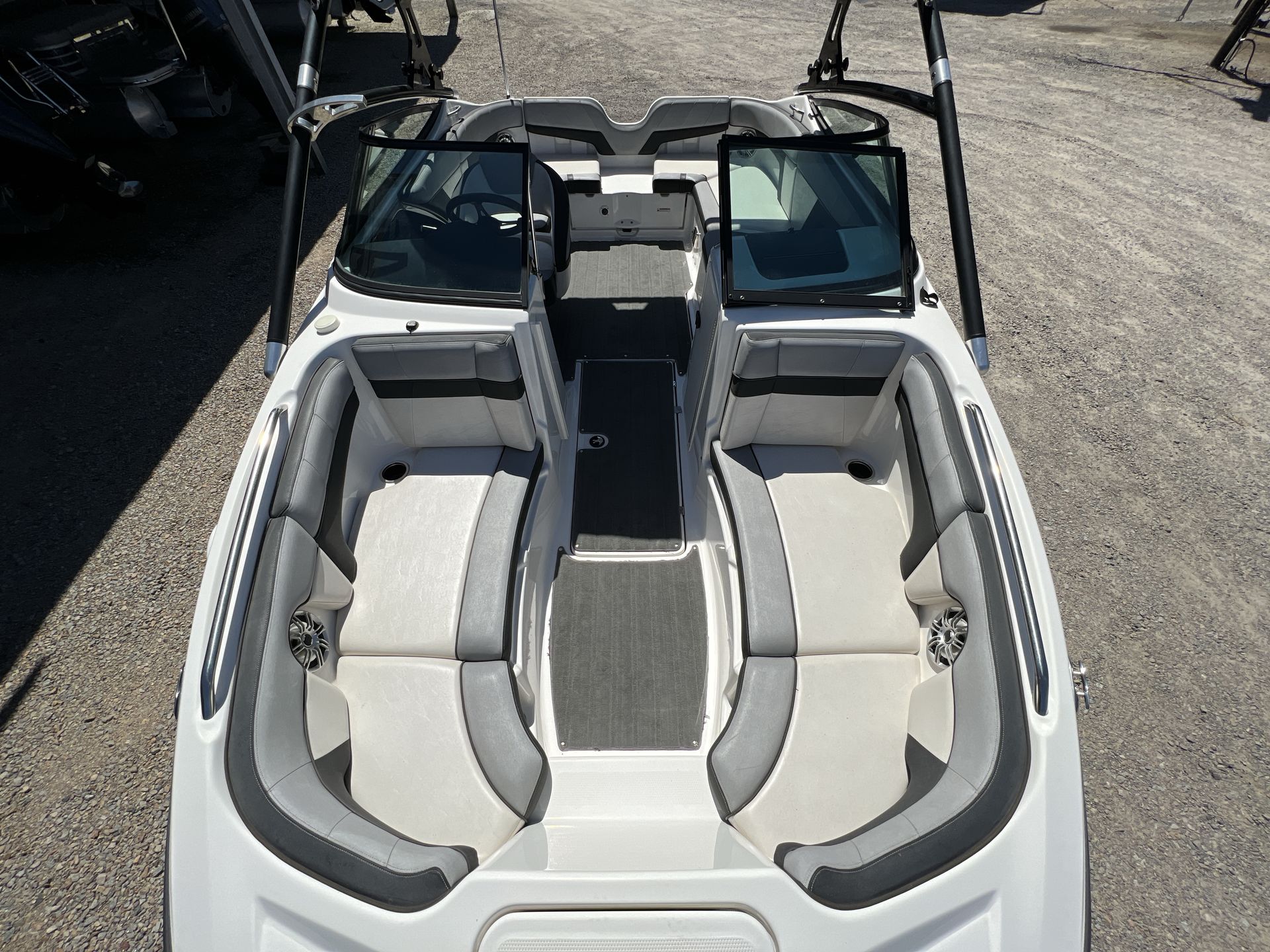 The Yamaha 212 XE is designed with practicality in mind, making ownership as enjoyable as time spent on the water. Its manageable length of 21.25 feet ensures easy docking and storage, whether you’re keeping it at a marina or trailering it to your favorite launch site. The jet propulsion system allows for quick, precise movements, simplifying the process of docking and navigating tight spaces. Fuel efficiency is another advantage, helping you make the most of every trip without breaking the bank. The boat’s thoughtful design includes plenty of storage for water sports equipment, fishing gear, and personal items, so you can bring everything you need for a full day of fun.